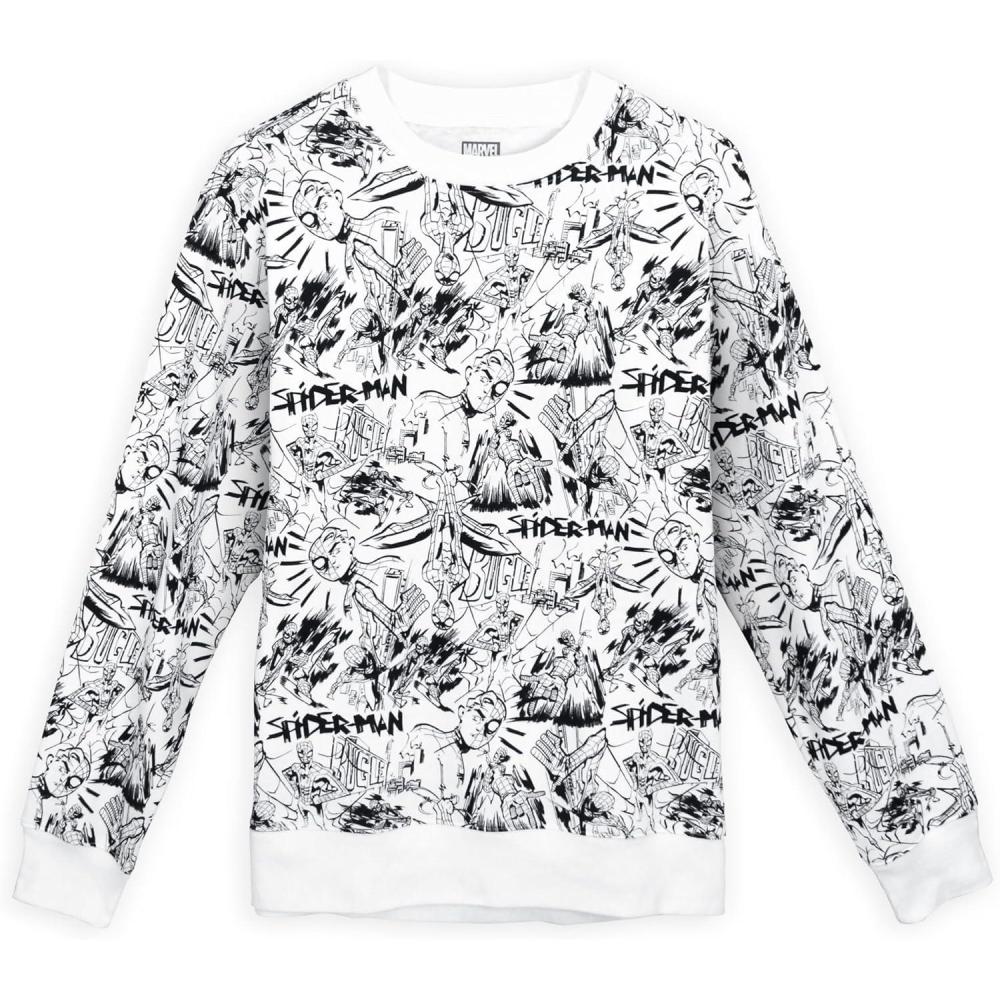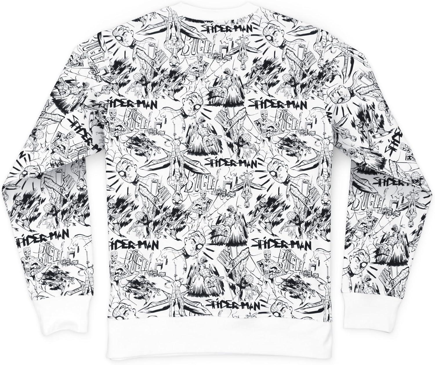 Marvel Men's Spiderman Classic Ink Spider Comic Pullover Crew Fleece(White)