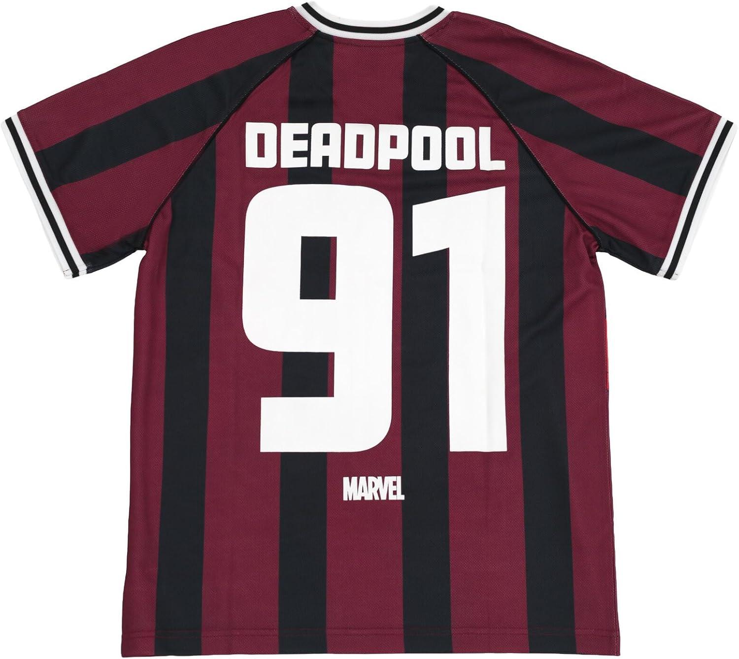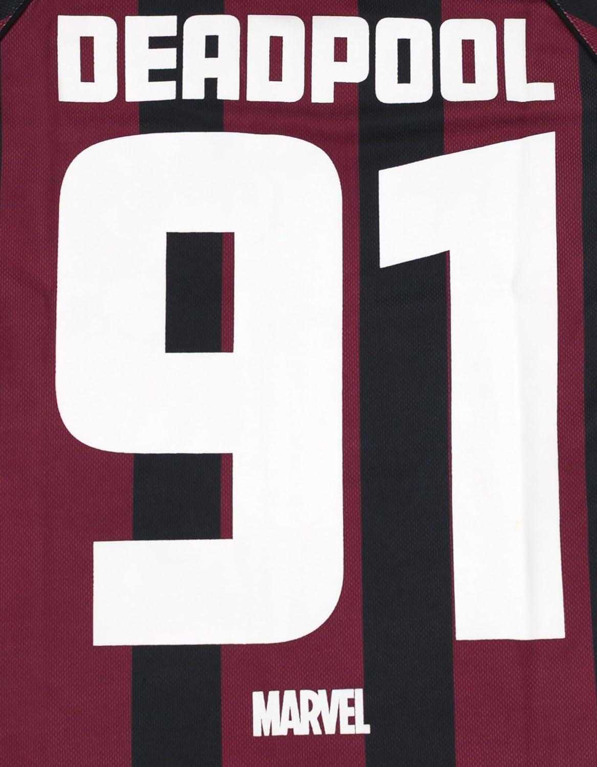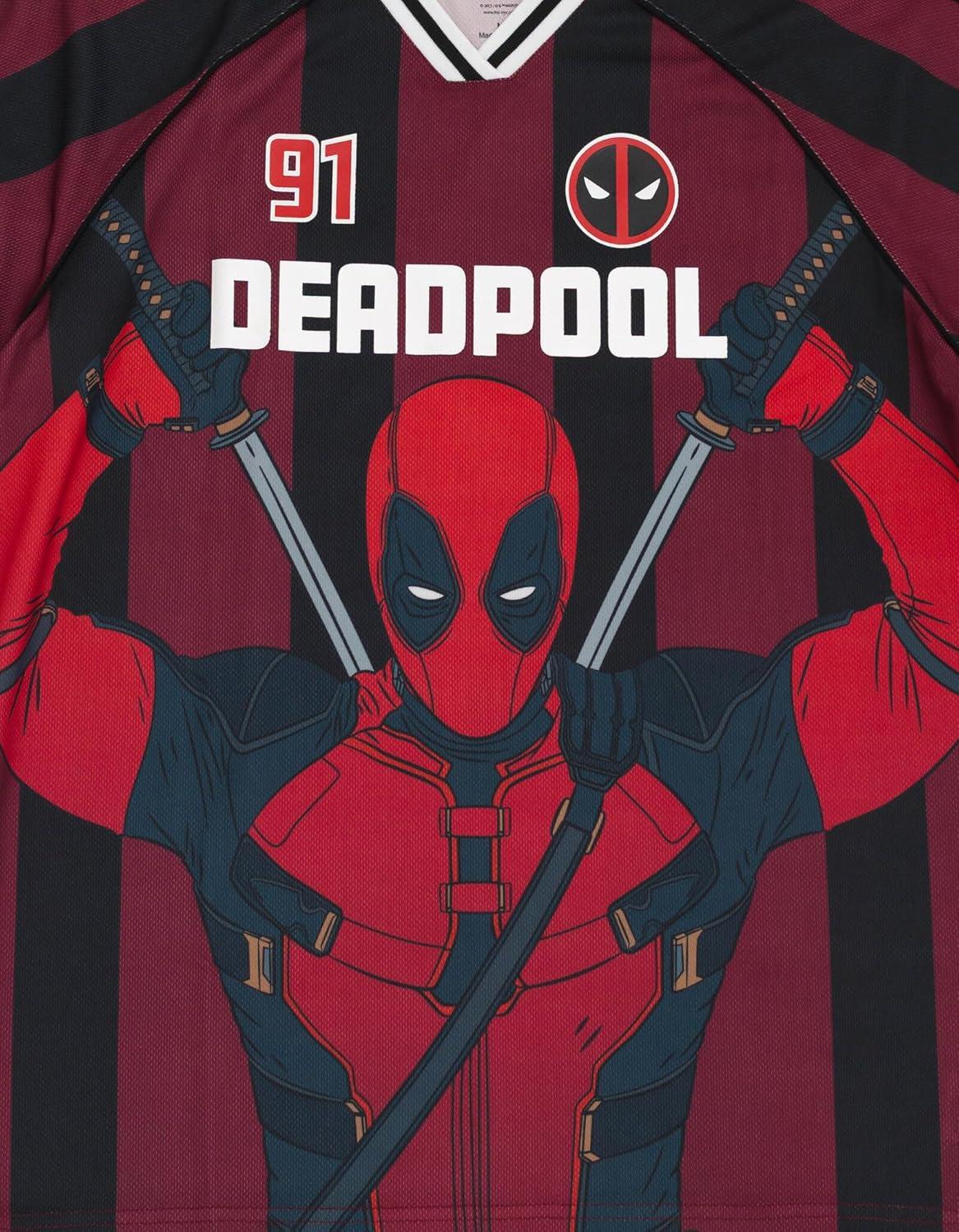 Show off your love for two of Marvel's most iconic characters with this Spider-Man and Deadpool Mesh Soccer Jersey. Made with a comfortable V-neck design, this athletic shirt is perfect for any fan. The eye-catching mesh material adds a unique touch to the classic jersey design. Whether you're playing a game of soccer or just hanging out with friends, this jersey is sure to make a statement. Don't miss out on the chance to add this must-have piece to your collection. Available in adult sizes, this jersey is a must-have for any true fan of Spider-Man and Deadpool.