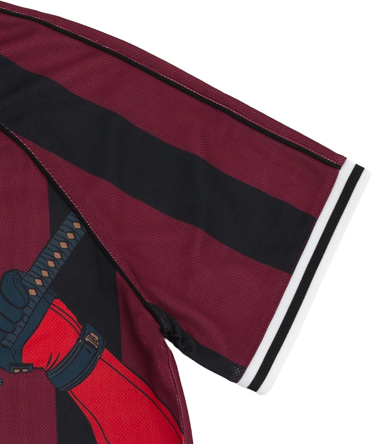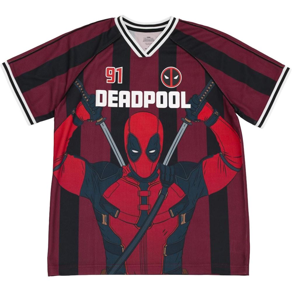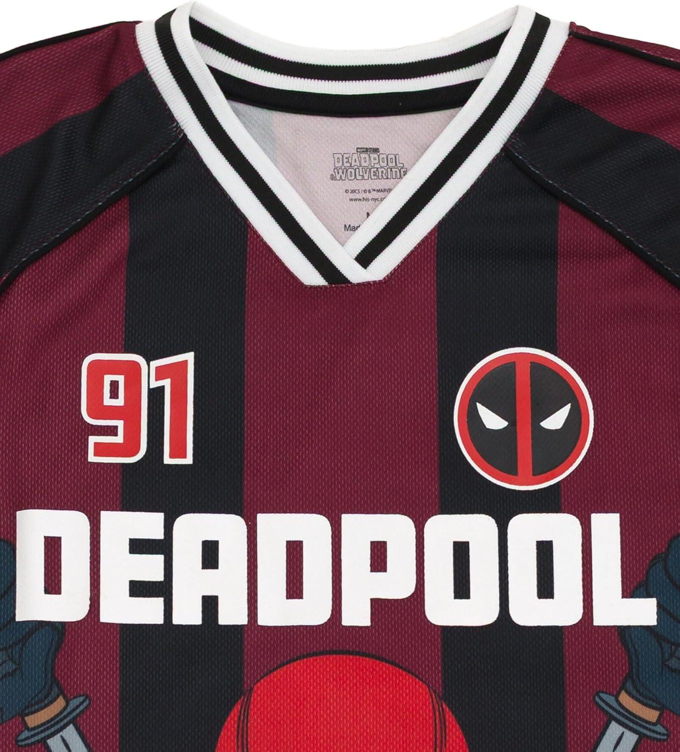 Show off your love for two of Marvel's most iconic characters with this Spider-Man and Deadpool Mesh Soccer Jersey. Made with a comfortable V-neck design, this athletic shirt is perfect for any fan. The eye-catching mesh material adds a unique touch to the classic jersey design. Whether you're playing a game of soccer or just hanging out with friends, this jersey is sure to make a statement. Don't miss out on the chance to add this must-have piece to your collection. Available in adult sizes, this jersey is a must-have for any true fan of Spider-Man and Deadpool.