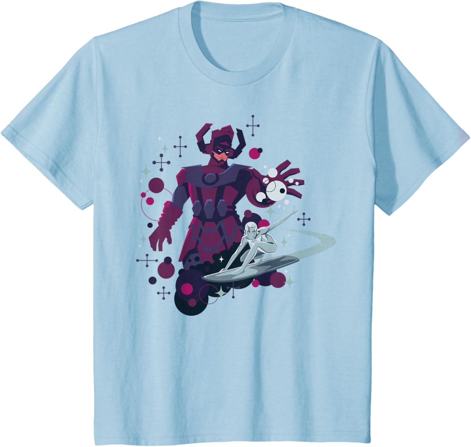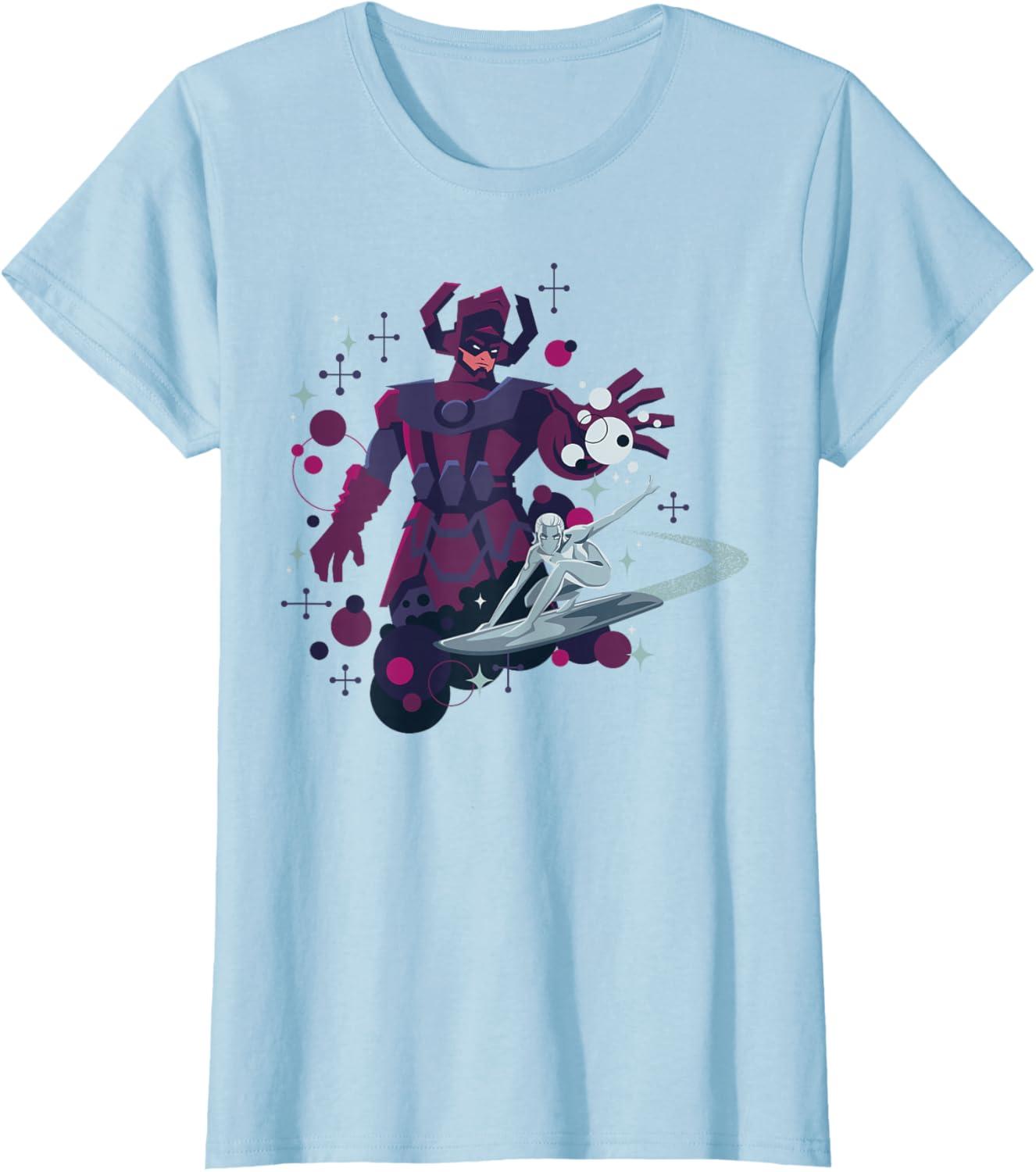 Marvel Silver Surfer and Galactus Retro Sixties Stylized T-Shirt(Baby Blue)