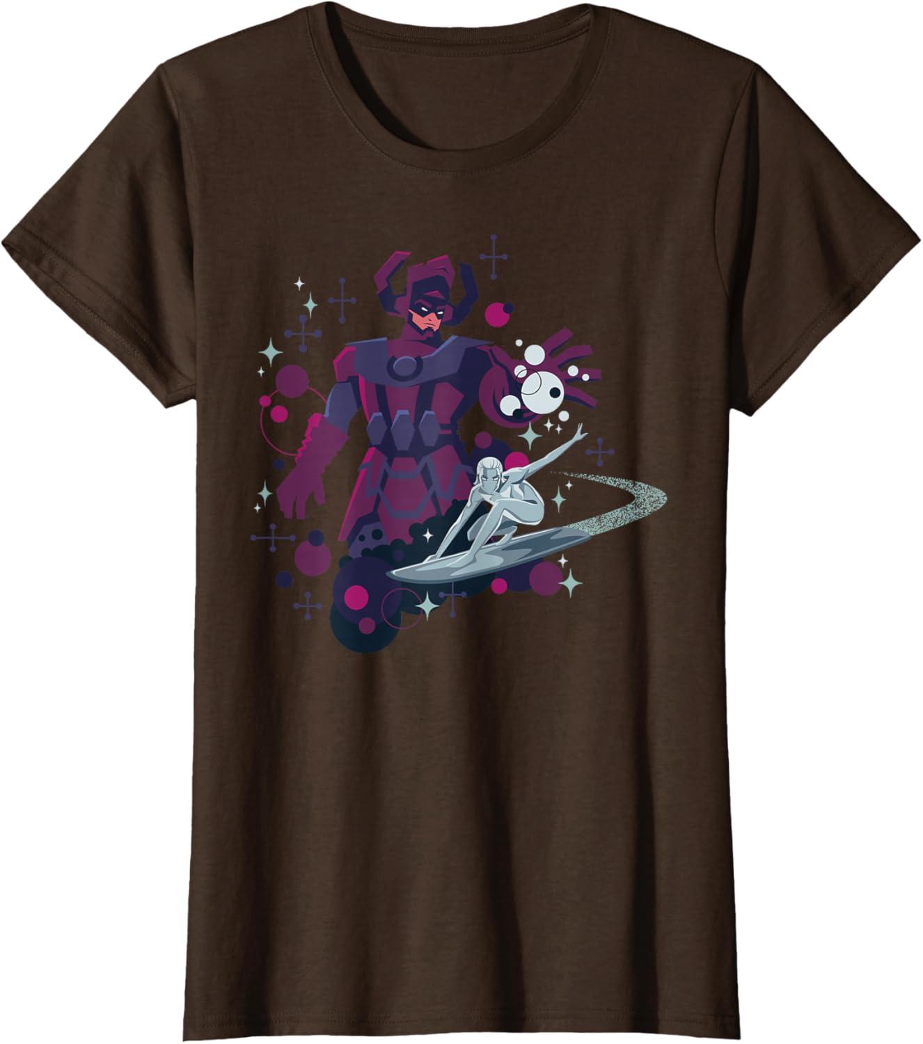 Marvel Silver Surfer and Galactus Retro Sixties Stylized T-Shirt(Brown)