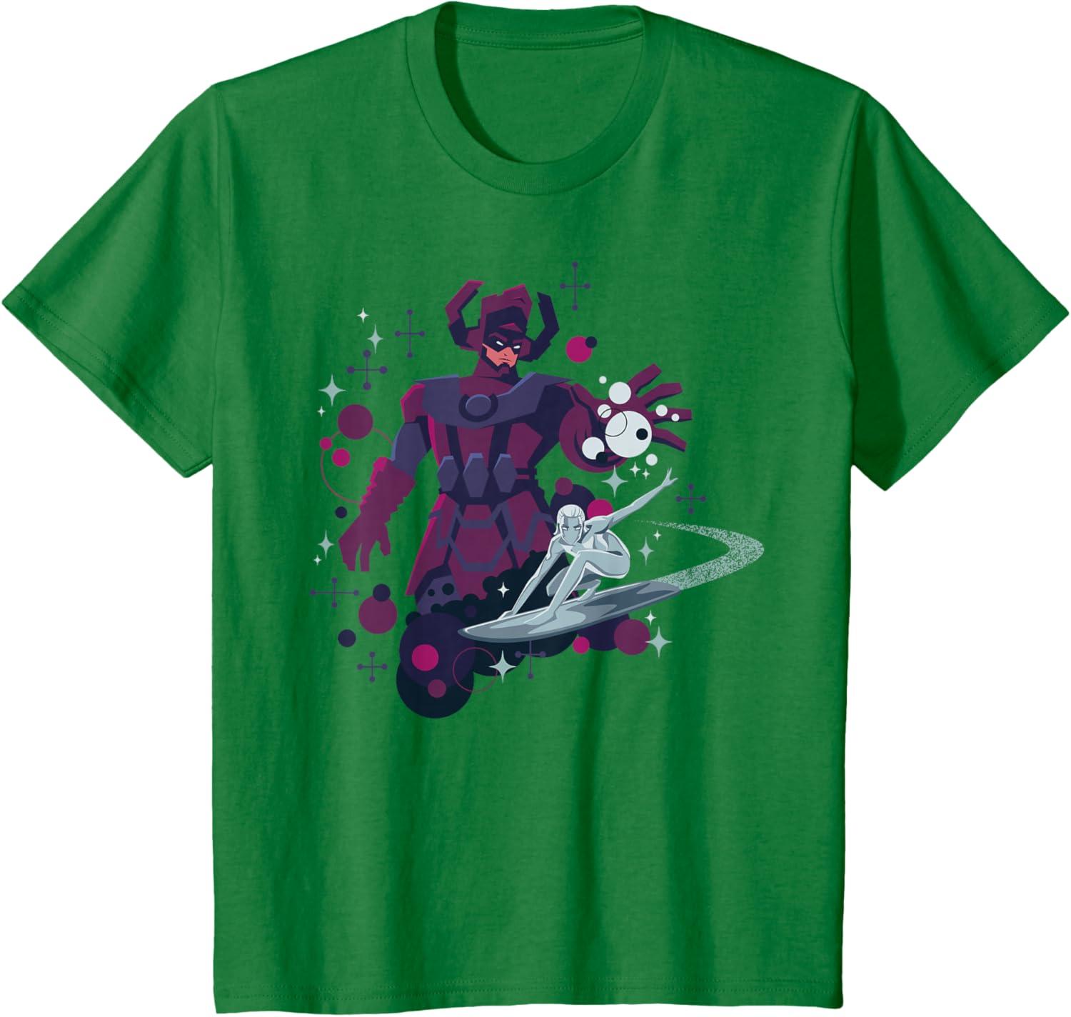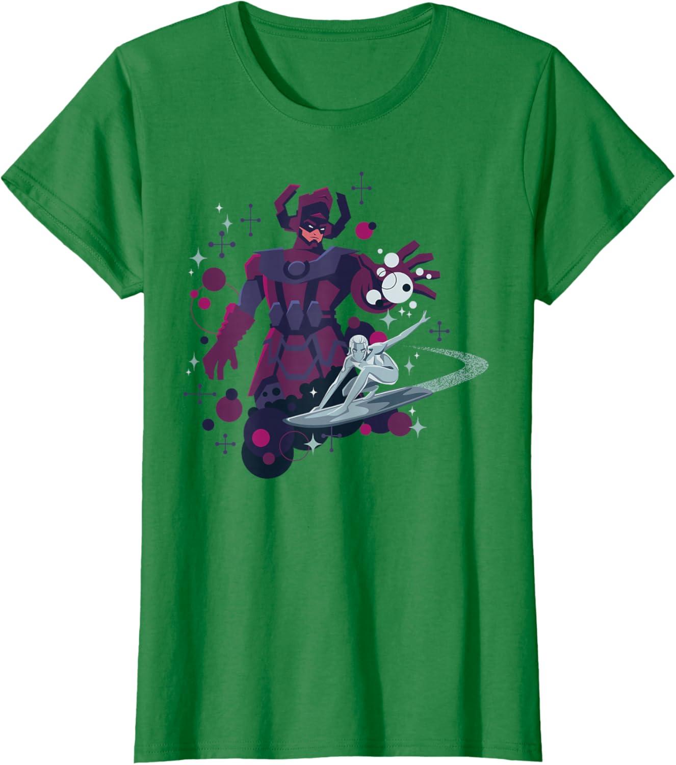 Marvel Silver Surfer and Galactus Retro Sixties Stylized T-Shirt(Dark Green)