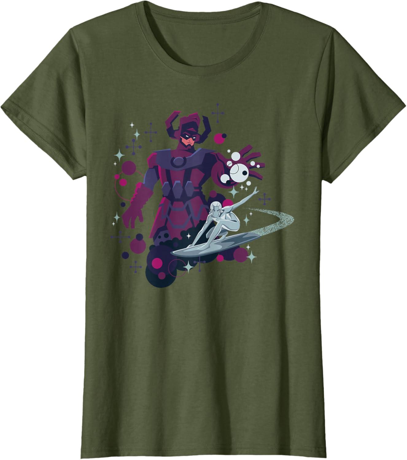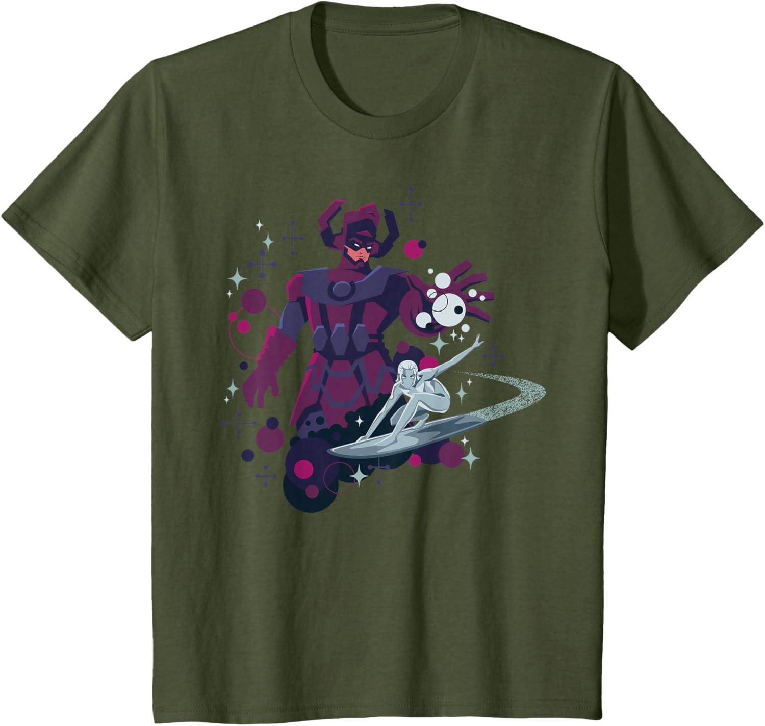 Be the first to review “Marvel Silver Surfer and Galactus Retro Sixties Stylized T-Shirt(Olive Green)”