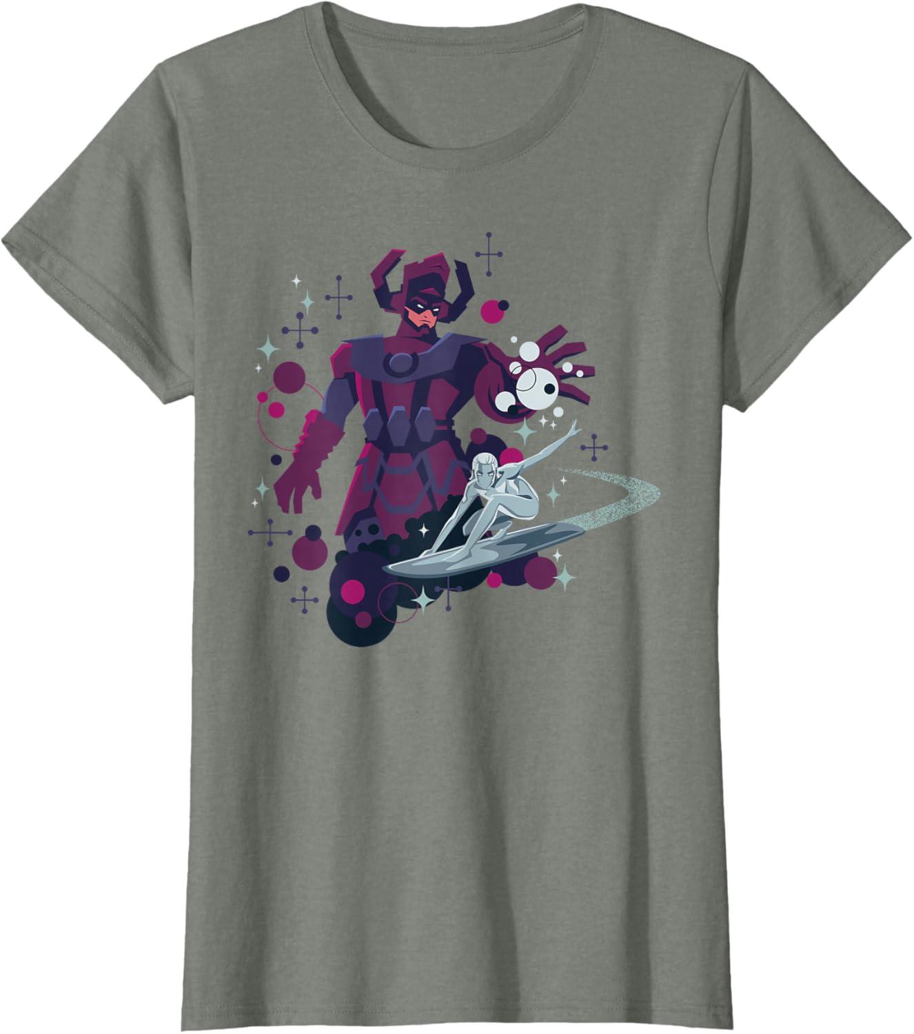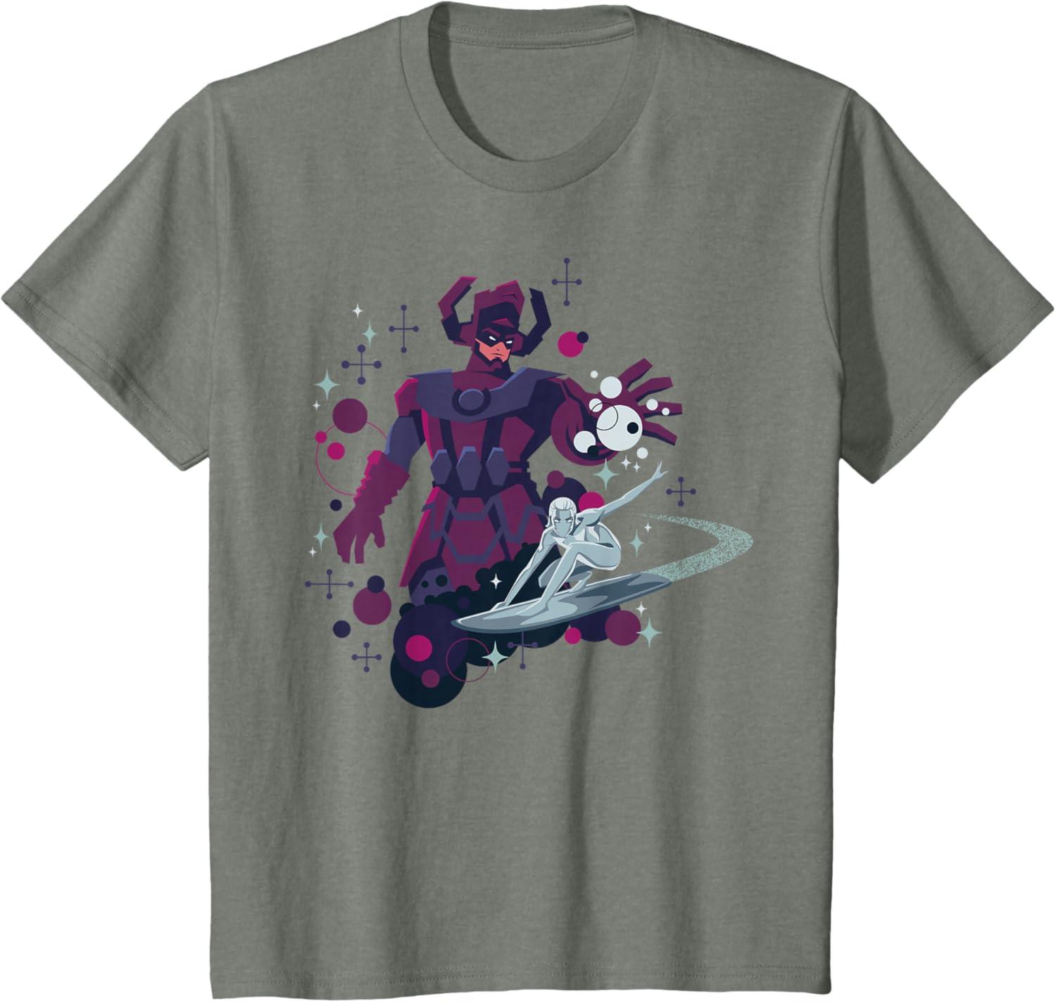 Be the first to review “Marvel Silver Surfer and Galactus Retro Sixties Stylized T-Shirt(Olive Heather)”