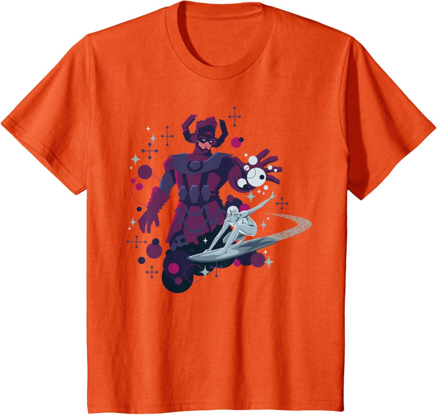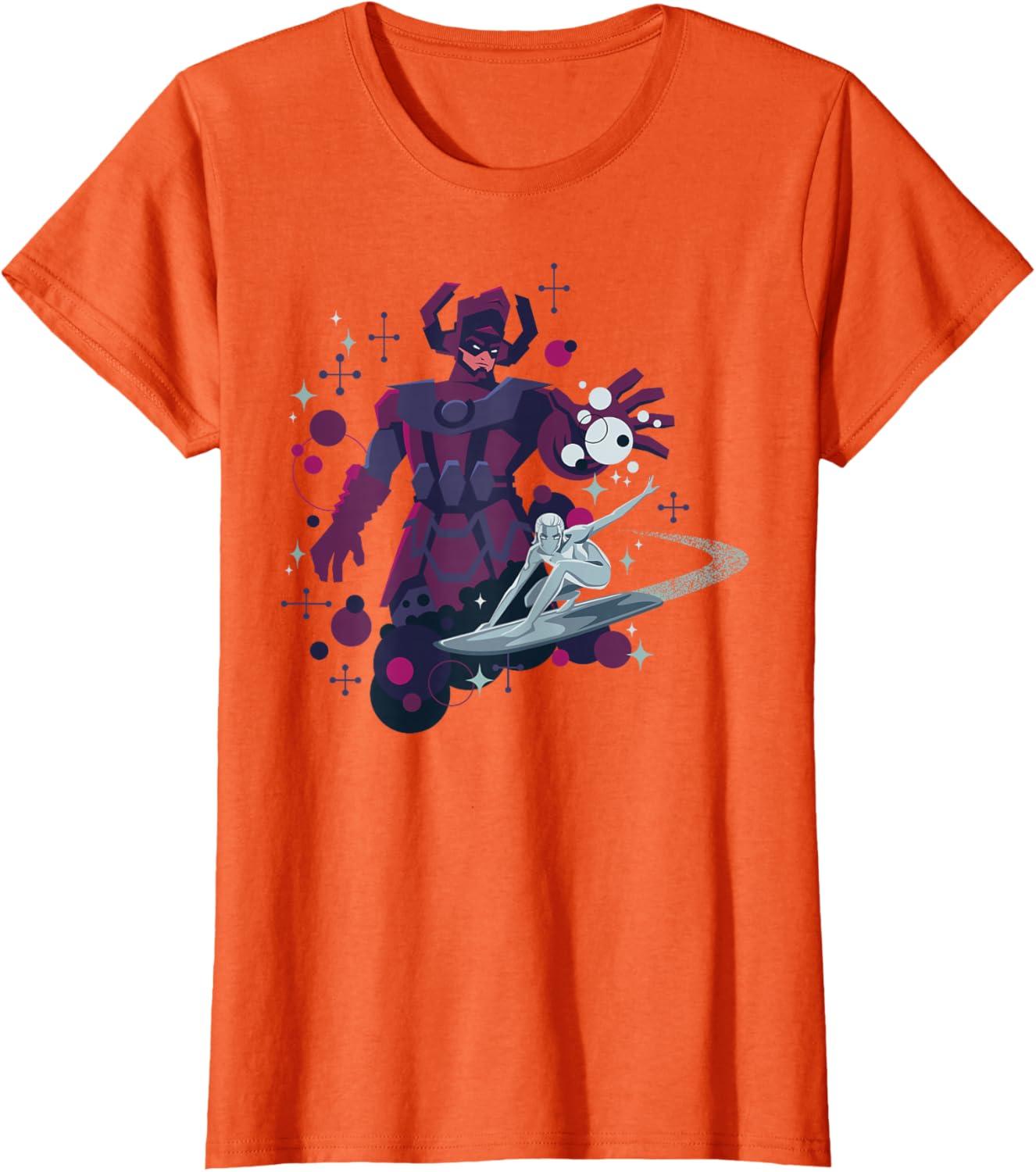 Marvel Silver Surfer and Galactus Retro Sixties Stylized T-Shirt(Orange)