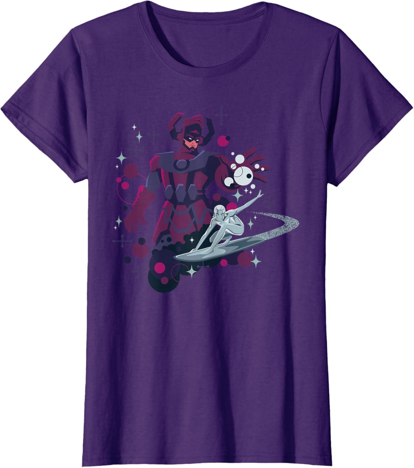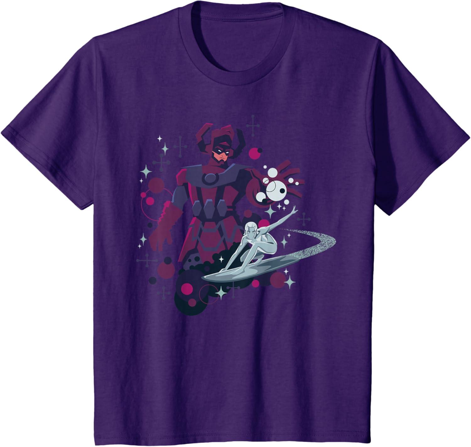 Marvel Silver Surfer and Galactus Retro Sixties Stylized T-Shirt(Purple)