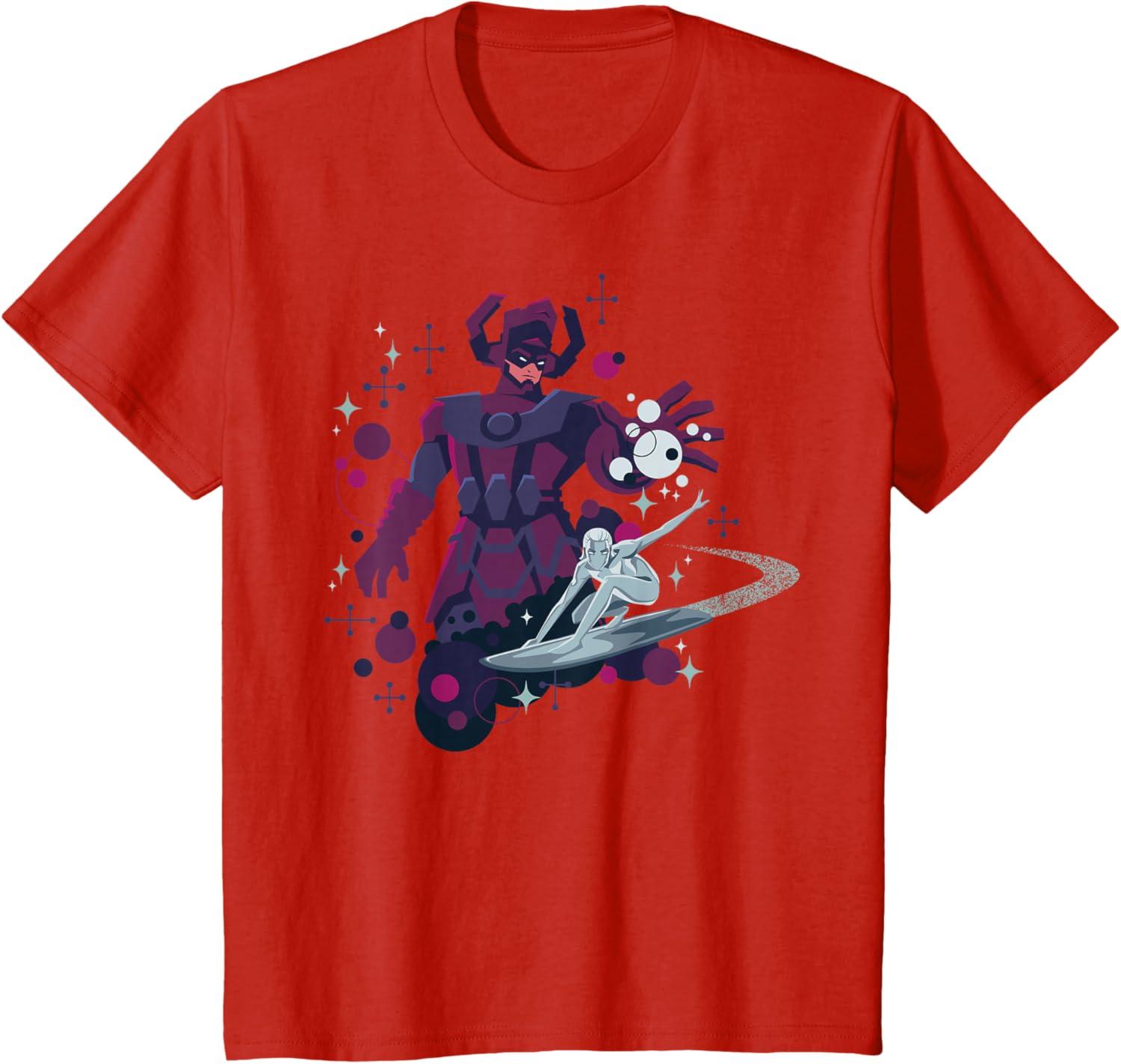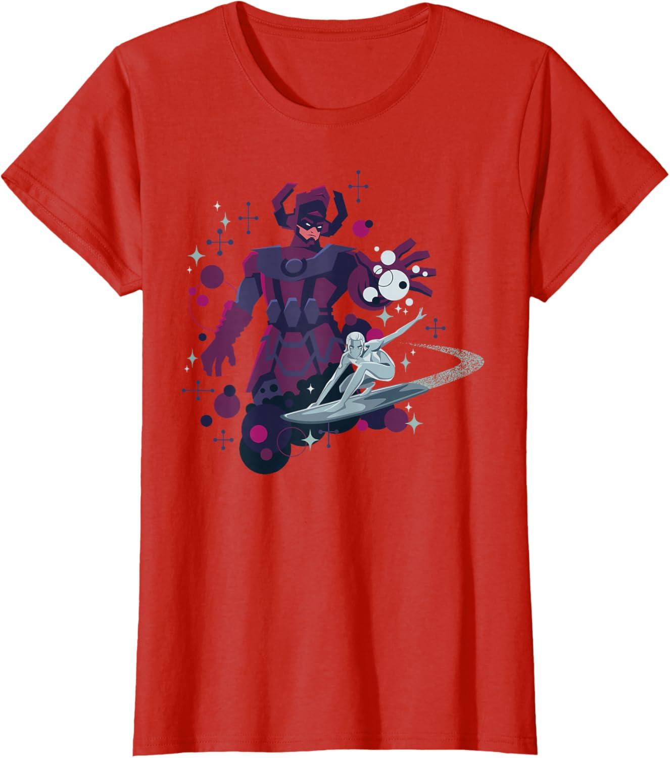 Marvel Silver Surfer and Galactus Retro Sixties Stylized T-Shirt(Red)