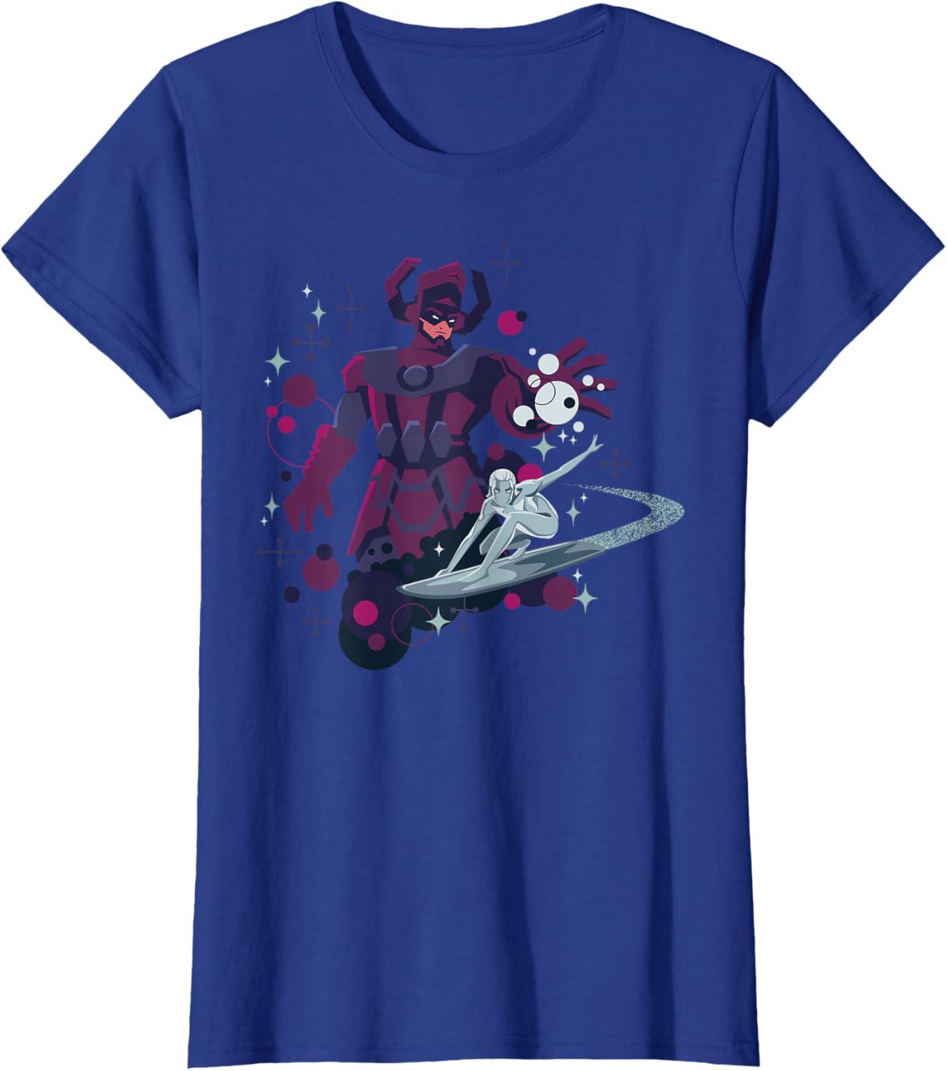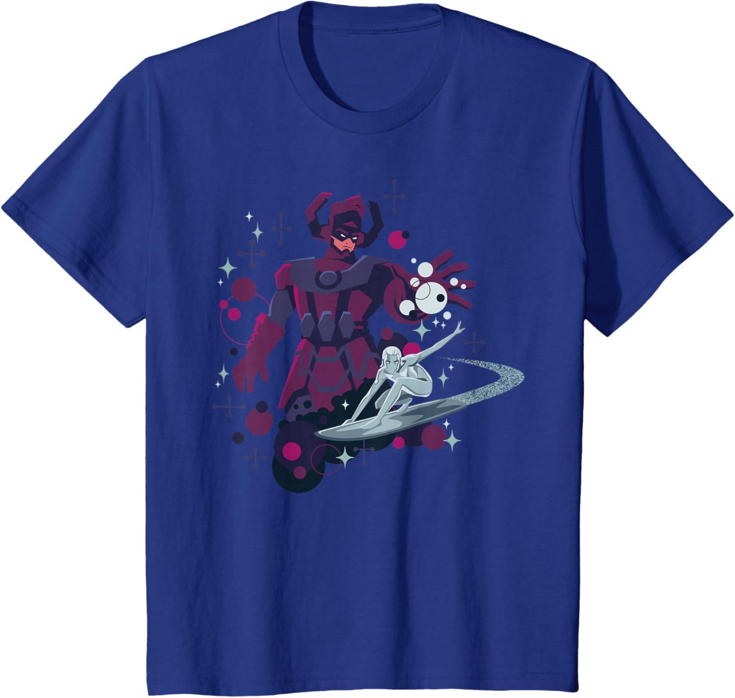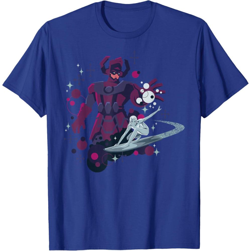 Marvel Silver Surfer and Galactus Retro Sixties Stylized T-Shirt(Royal Blue)