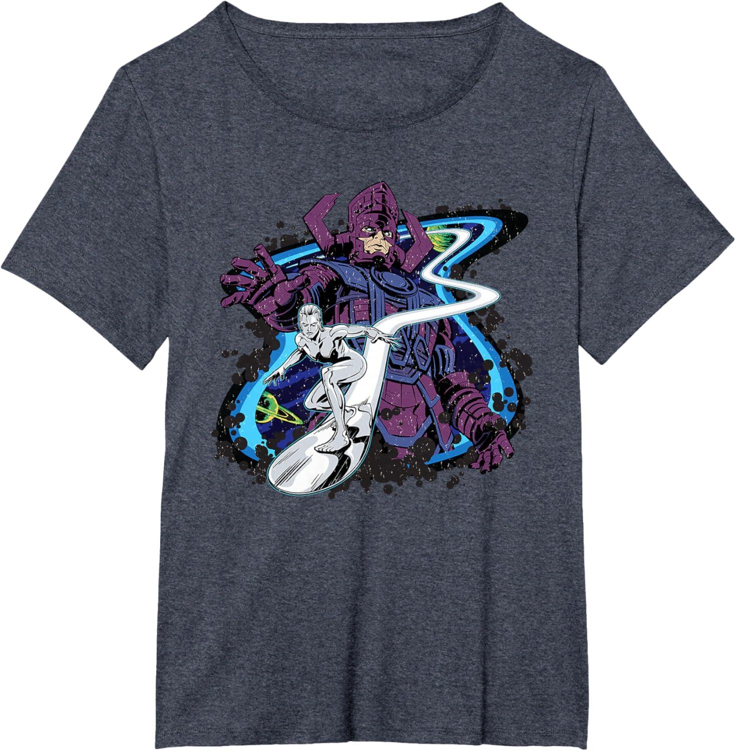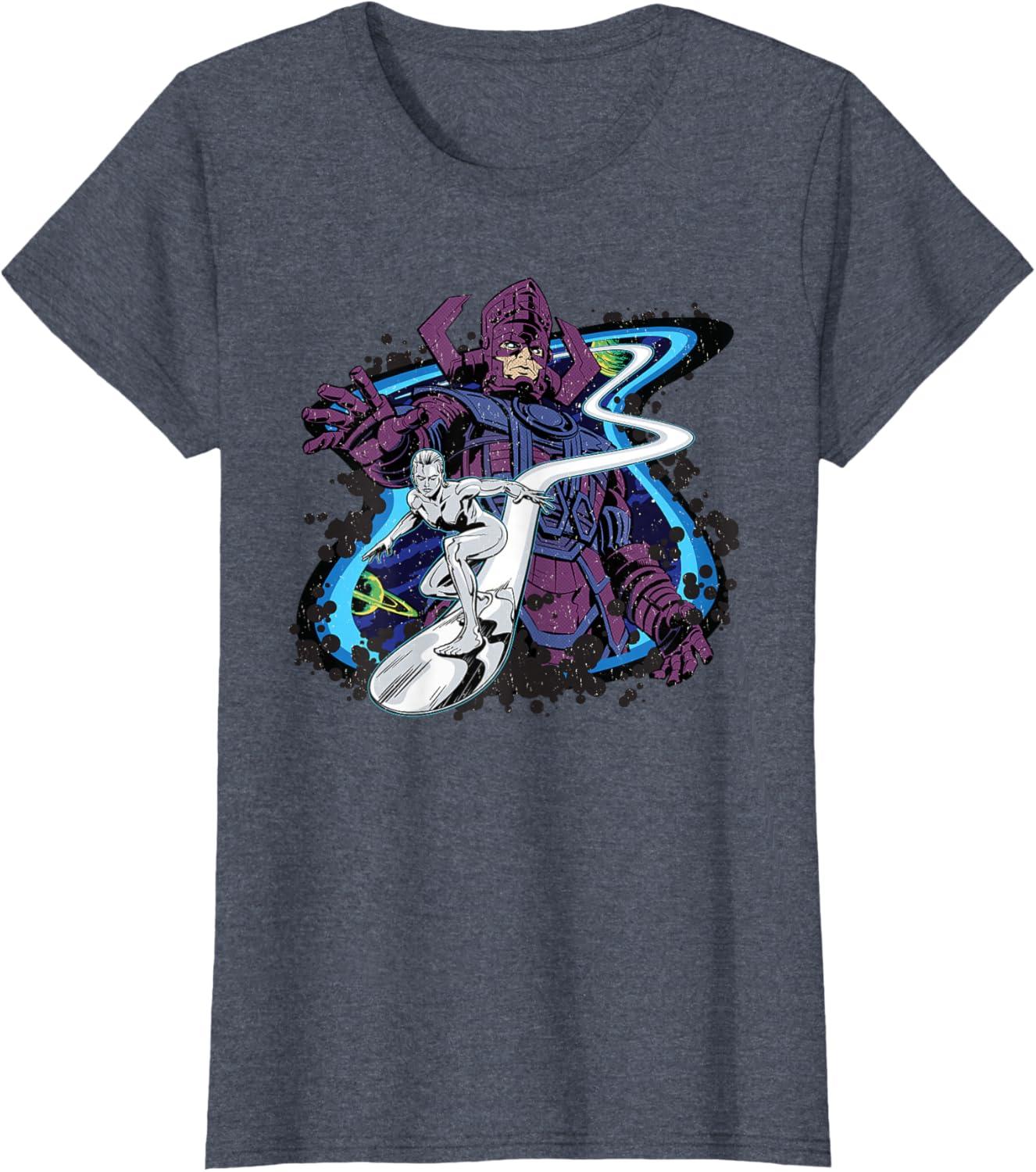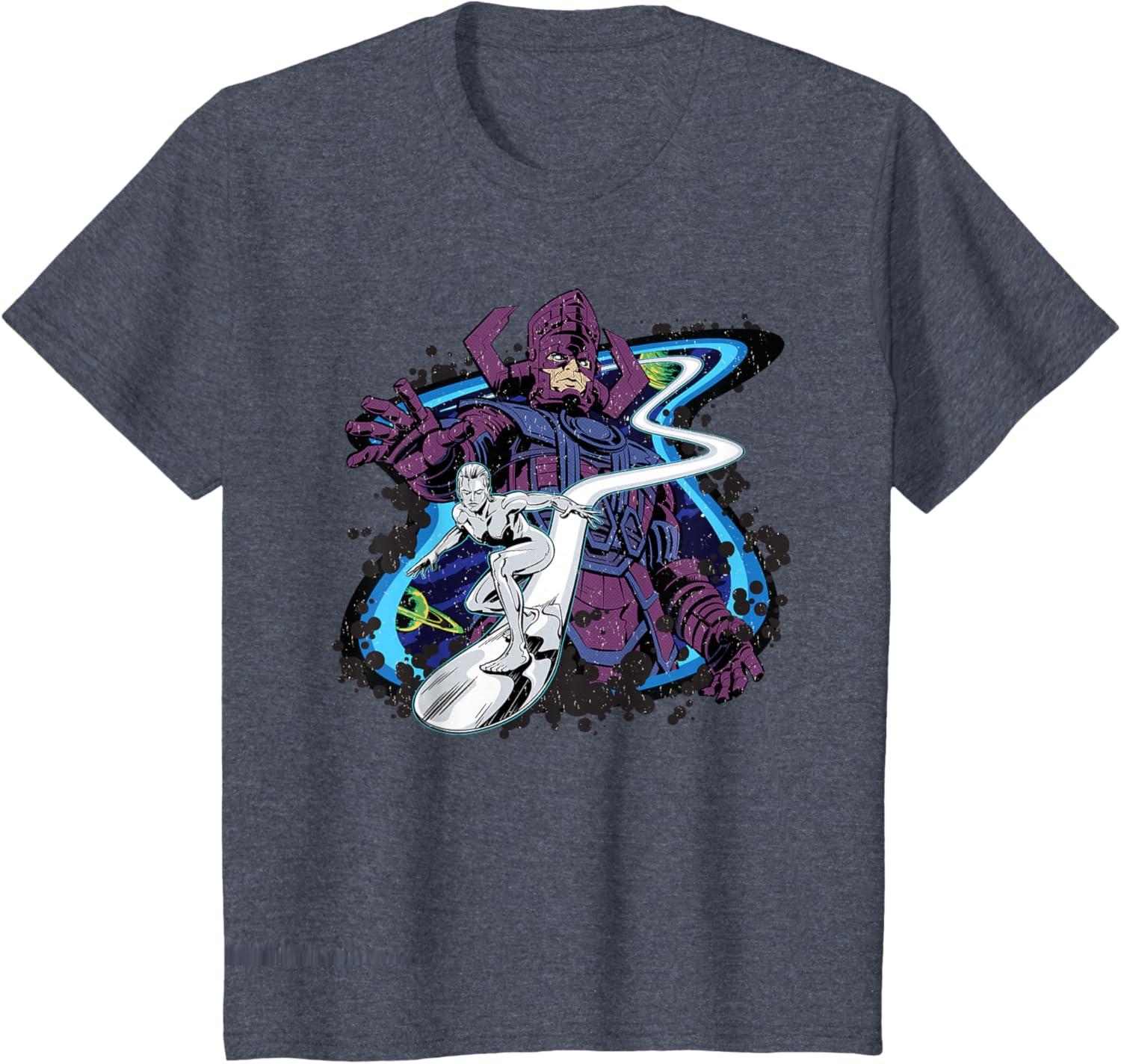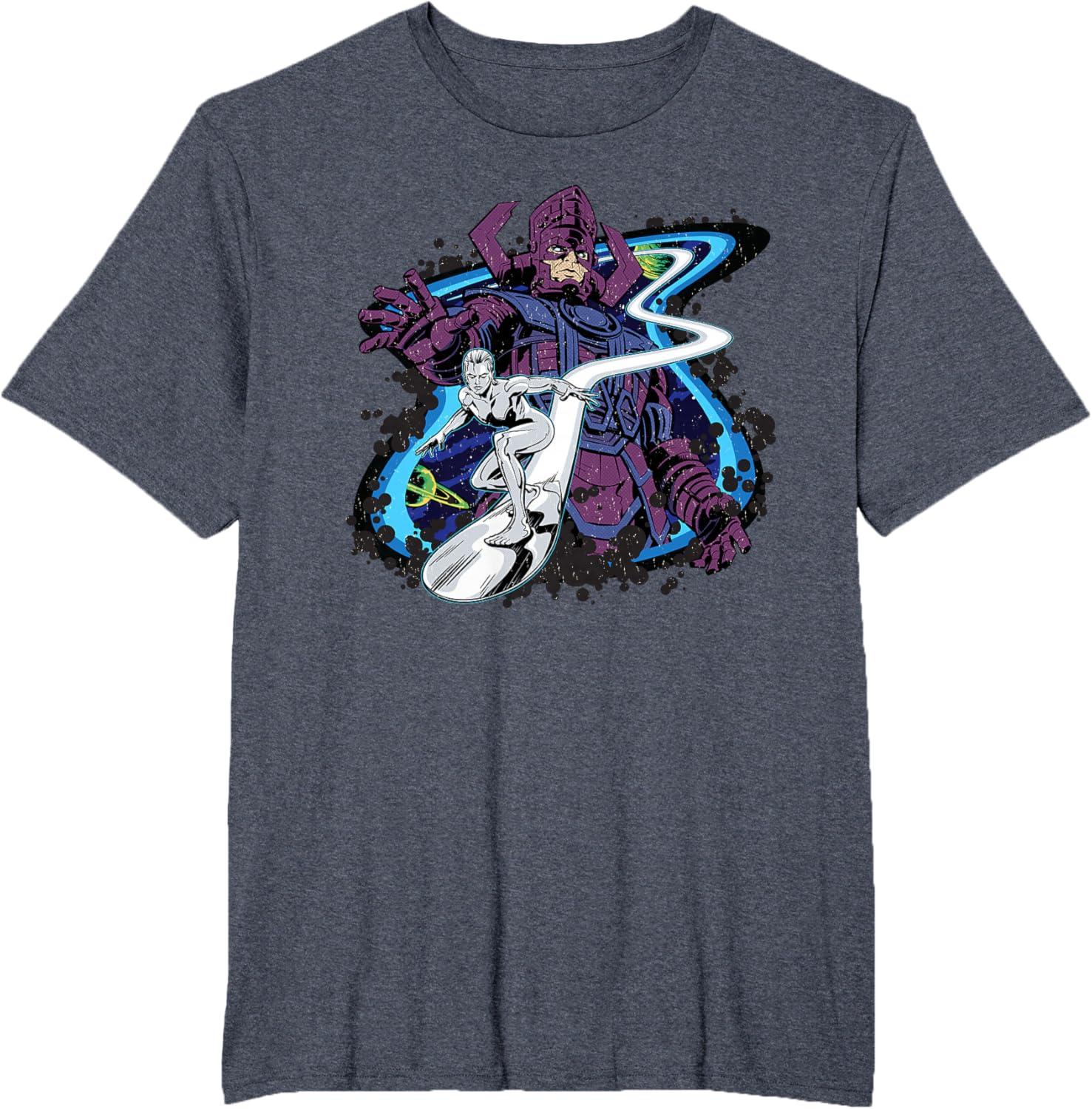 Be the first to review “Marvel Silver Surfer and Galactus Retro Vintage Comic Style T-Shirt(Heather Blue)”