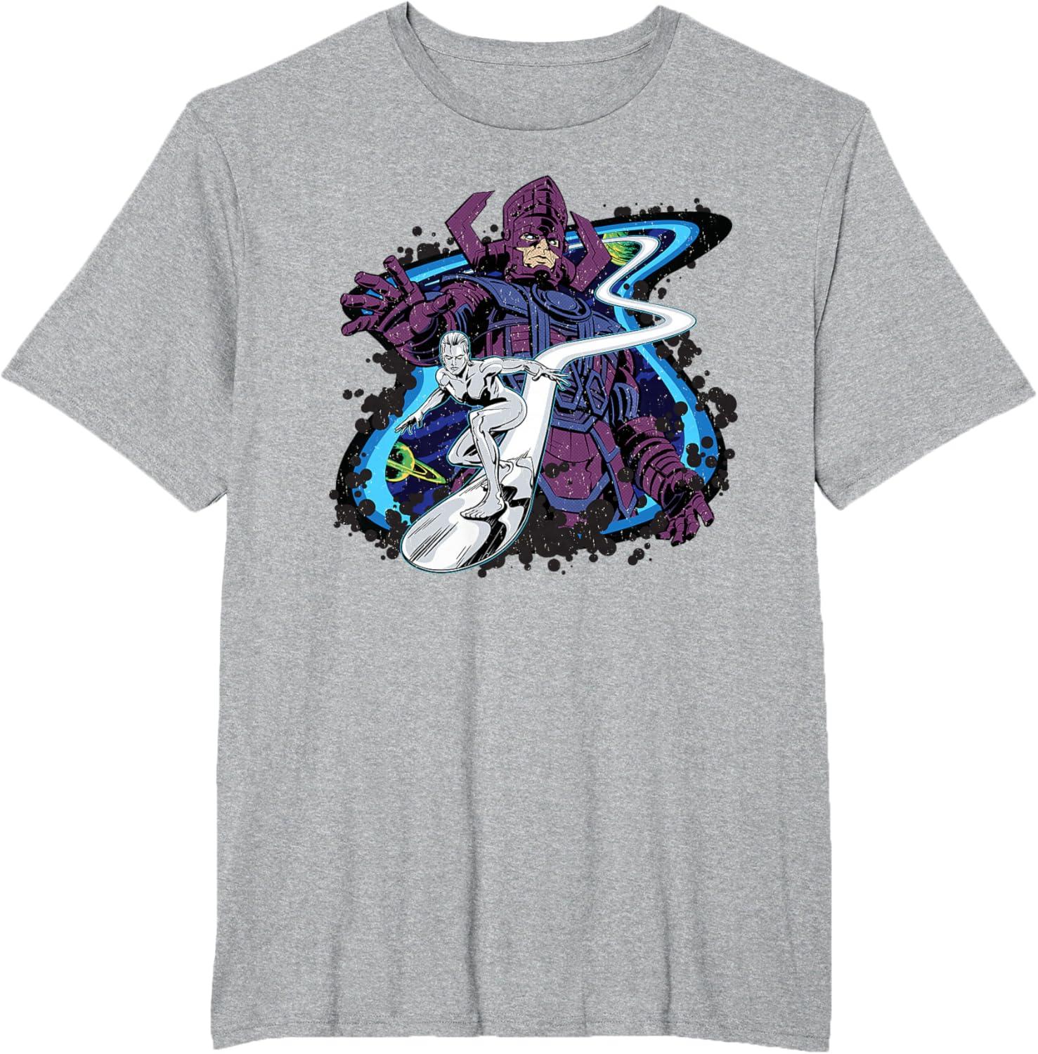 Marvel Silver Surfer and Galactus Retro Vintage Comic Style T-Shirt(Heather Grey)