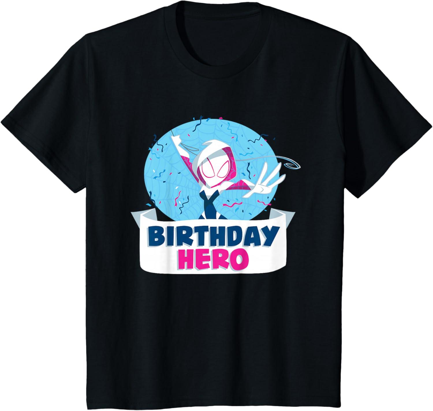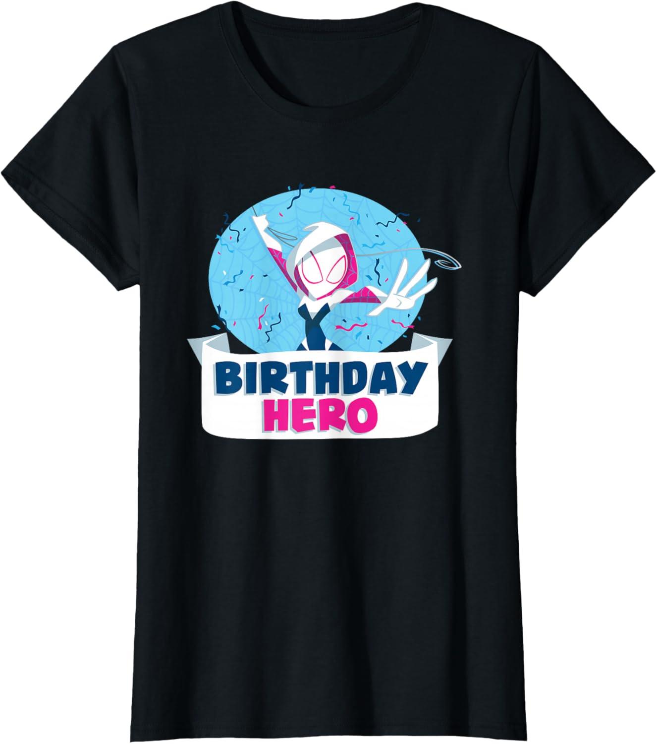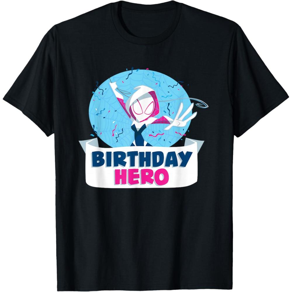 Celebrate a birthday with Spider-Gwen! This official Marvel tee or hoodie features colorful, toony art of web-spinning superhero Gwen Stacy, a.k.a. Ghost Spider, with a spider web, burst of festive confetti, and the message “Birthday Hero”. A marvelous birthday gift for a Marvel Super Heroes or Spider-Gwen fan, or great for all the birthday party guests to wear. Planning a birthday trip to Avengers Campus at Disney California Adventure Park or another super destination? Get multiples to coordinate and match with friends and family for even more hero-sized fun! Available in youth and adult sizes. Find it in a t-shirt, premium t-shirt, tank top, v-neck, long sleeve tee, hoodie, and sweatshirt.