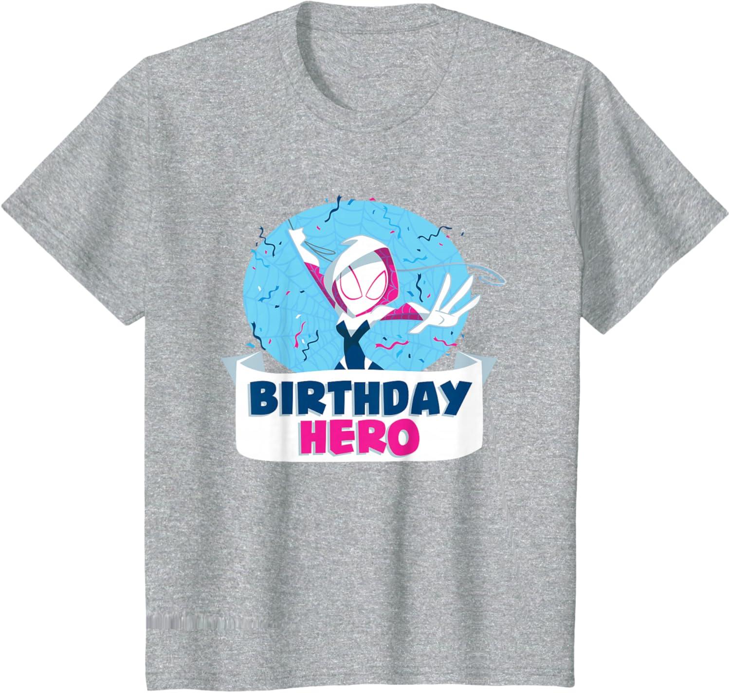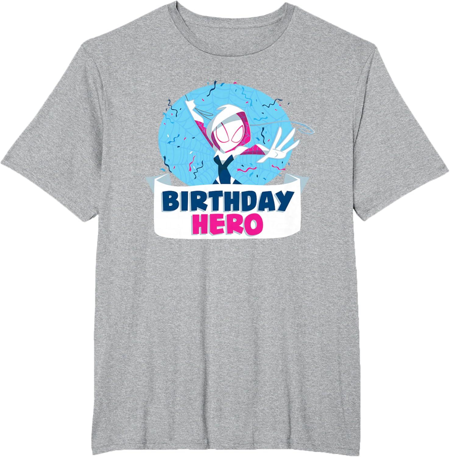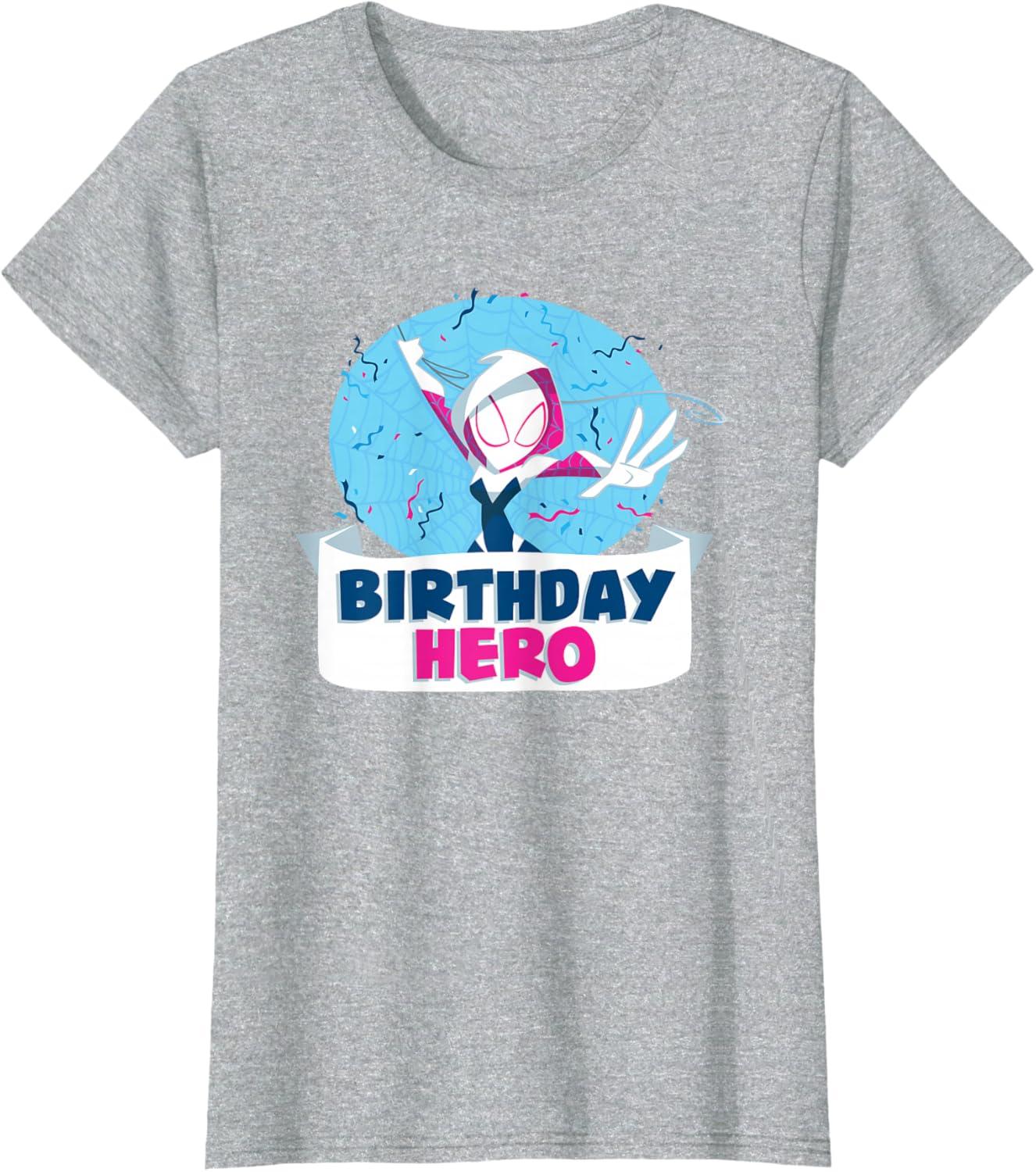 Celebrate a birthday with Spider-Gwen! This official Marvel tee or hoodie features colorful, toony art of web-spinning superhero Gwen Stacy, a.k.a. Ghost Spider, with a spider web, burst of festive confetti, and the message “Birthday Hero”. A marvelous birthday gift for a Marvel Super Heroes or Spider-Gwen fan, or great for all the birthday party guests to wear. Planning a birthday trip to Avengers Campus at Disney California Adventure Park or another super destination? Get multiples to coordinate and match with friends and family for even more hero-sized fun! Available in youth and adult sizes. Find it in a t-shirt, premium t-shirt, tank top, v-neck, long sleeve tee, hoodie, and sweatshirt.