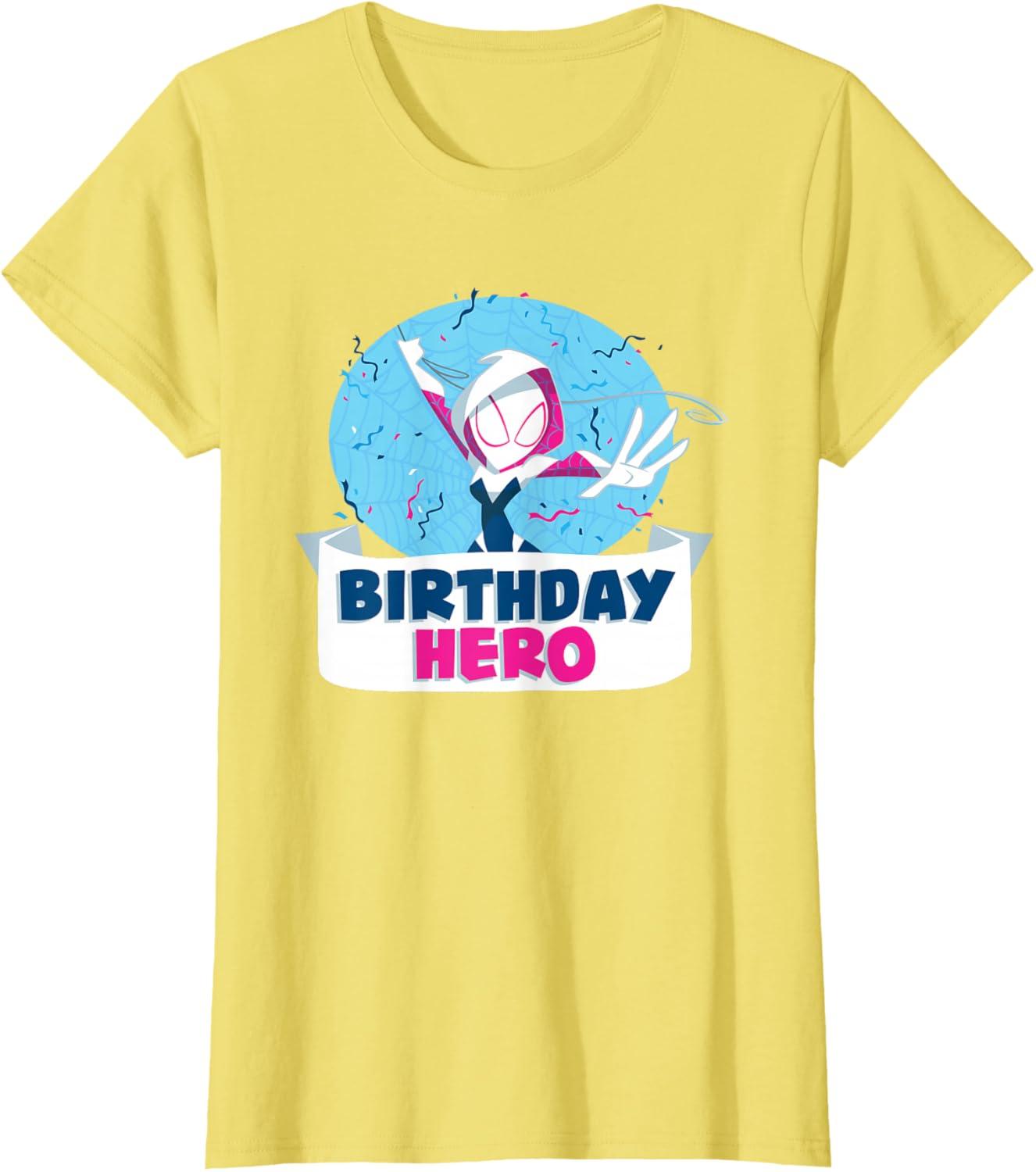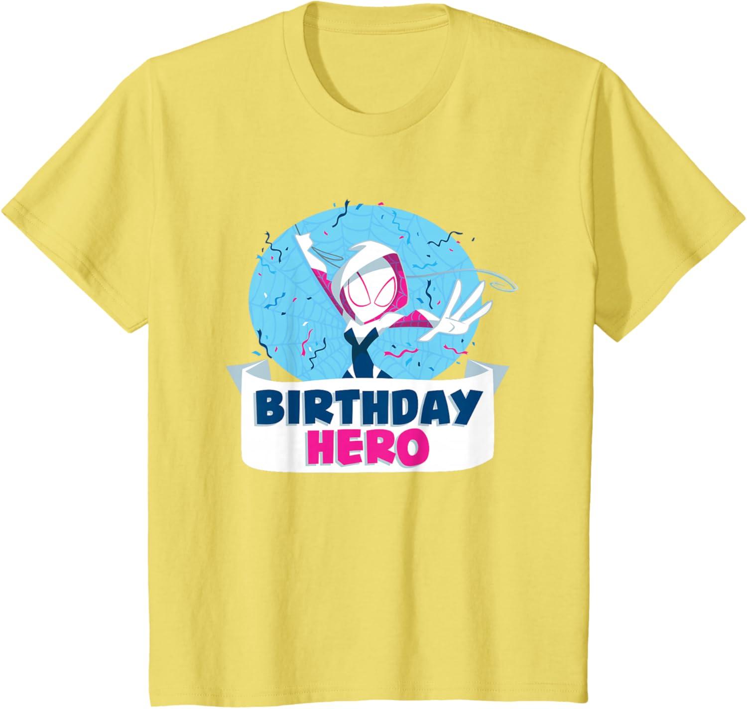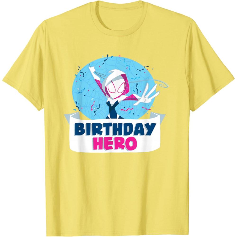 Celebrate a birthday with Spider-Gwen! This official Marvel tee or hoodie features colorful, toony art of web-spinning superhero Gwen Stacy, a.k.a. Ghost Spider, with a spider web, burst of festive confetti, and the message “Birthday Hero”. A marvelous birthday gift for a Marvel Super Heroes or Spider-Gwen fan, or great for all the birthday party guests to wear. Planning a birthday trip to Avengers Campus at Disney California Adventure Park or another super destination? Get multiples to coordinate and match with friends and family for even more hero-sized fun! Available in youth and adult sizes. Find it in a t-shirt, premium t-shirt, tank top, v-neck, long sleeve tee, hoodie, and sweatshirt.