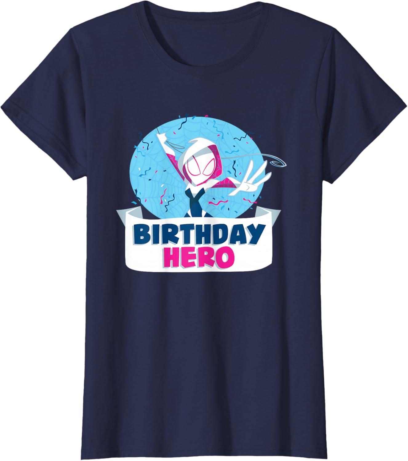 Celebrate a birthday with Spider-Gwen! This official Marvel tee or hoodie features colorful, toony art of web-spinning superhero Gwen Stacy, a.k.a. Ghost Spider, with a spider web, burst of festive confetti, and the message “Birthday Hero”. A marvelous birthday gift for a Marvel Super Heroes or Spider-Gwen fan, or great for all the birthday party guests to wear. Planning a birthday trip to Avengers Campus at Disney California Adventure Park or another super destination? Get multiples to coordinate and match with friends and family for even more hero-sized fun! Available in youth and adult sizes. Find it in a t-shirt, premium t-shirt, tank top, v-neck, long sleeve tee, hoodie, and sweatshirt.