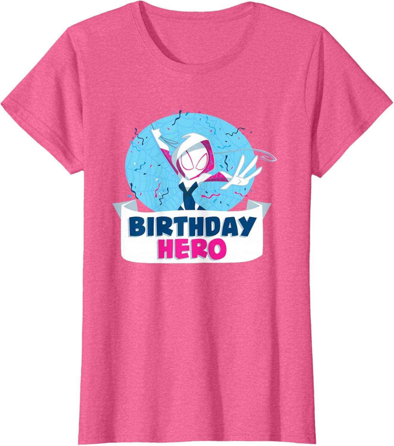 Celebrate a birthday with Spider-Gwen! This official Marvel tee or hoodie features colorful, toony art of web-spinning superhero Gwen Stacy, a.k.a. Ghost Spider, with a spider web, burst of festive confetti, and the message “Birthday Hero”. A marvelous birthday gift for a Marvel Super Heroes or Spider-Gwen fan, or great for all the birthday party guests to wear. Planning a birthday trip to Avengers Campus at Disney California Adventure Park or another super destination? Get multiples to coordinate and match with friends and family for even more hero-sized fun! Available in youth and adult sizes. Find it in a t-shirt, premium t-shirt, tank top, v-neck, long sleeve tee, hoodie, and sweatshirt.