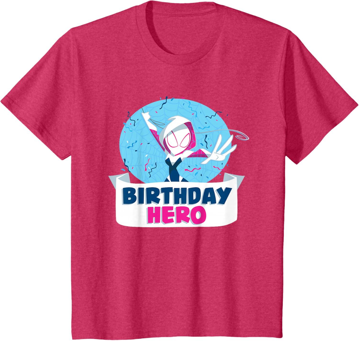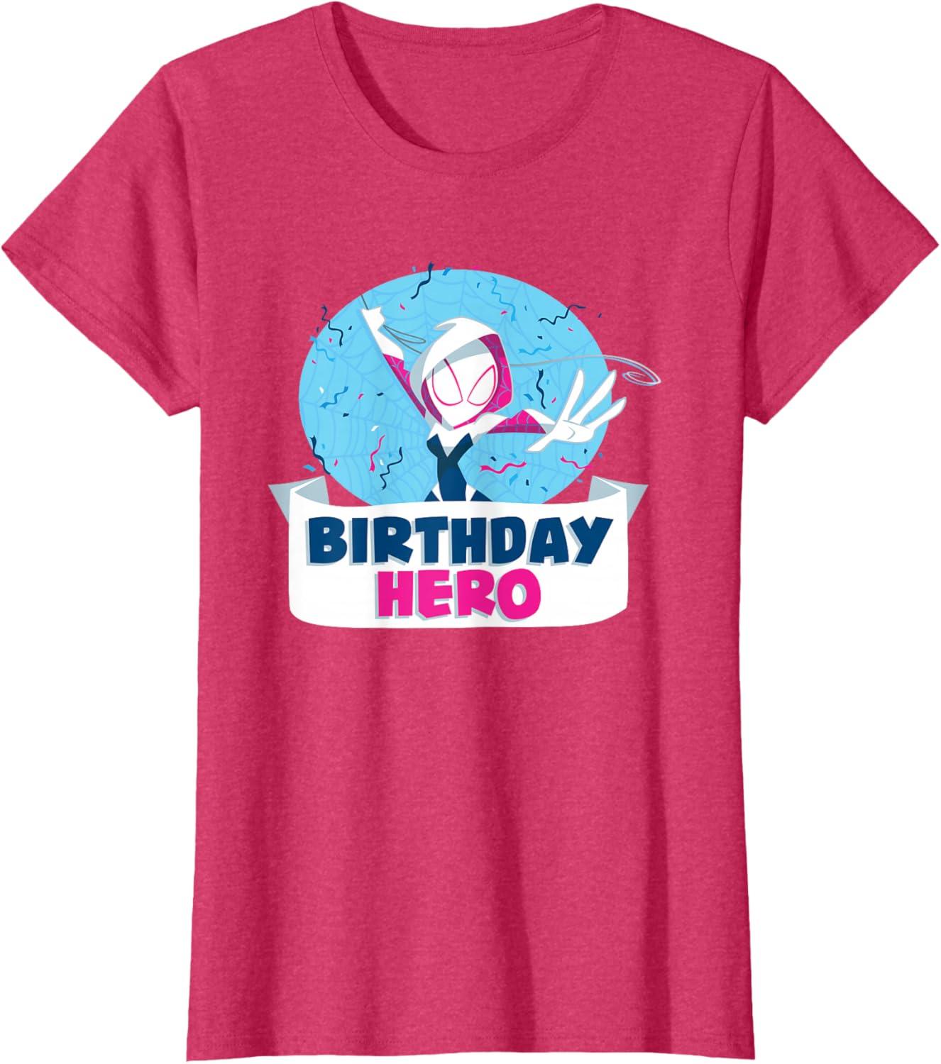 Celebrate a birthday with Spider-Gwen! This official Marvel tee or hoodie features colorful, toony art of web-spinning superhero Gwen Stacy, a.k.a. Ghost Spider, with a spider web, burst of festive confetti, and the message “Birthday Hero”. A marvelous birthday gift for a Marvel Super Heroes or Spider-Gwen fan, or great for all the birthday party guests to wear. Planning a birthday trip to Avengers Campus at Disney California Adventure Park or another super destination? Get multiples to coordinate and match with friends and family for even more hero-sized fun! Available in youth and adult sizes. Find it in a t-shirt, premium t-shirt, tank top, v-neck, long sleeve tee, hoodie, and sweatshirt.