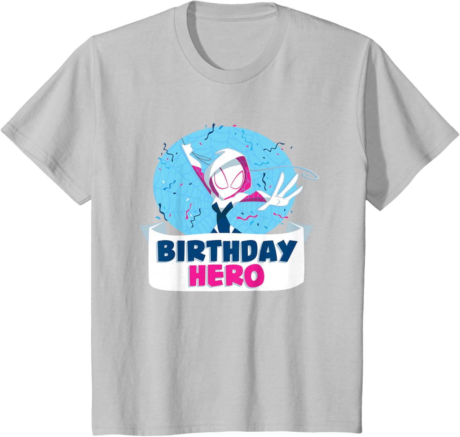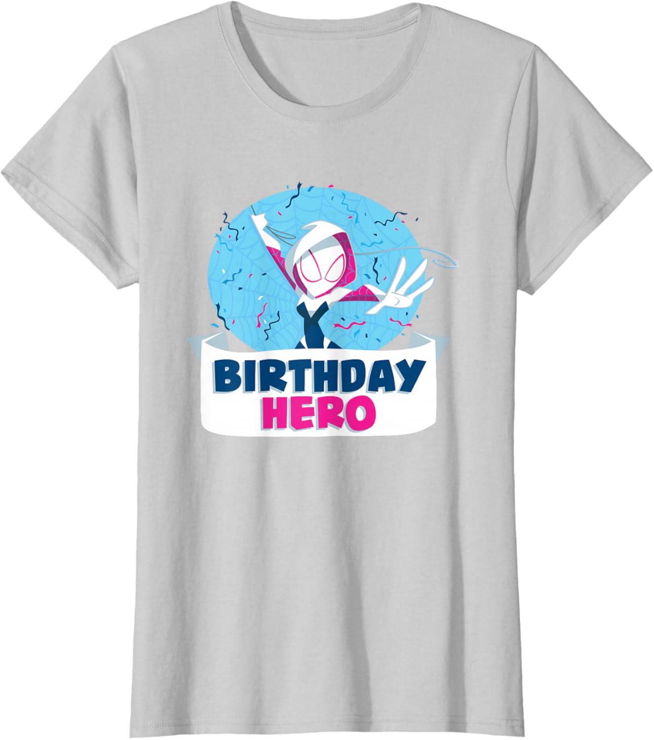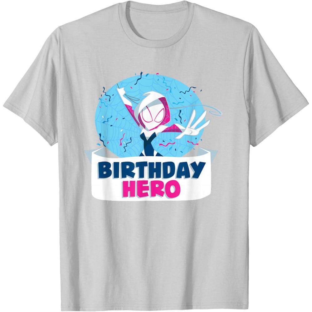 Celebrate a birthday with Spider-Gwen! This official Marvel tee or hoodie features colorful, toony art of web-spinning superhero Gwen Stacy, a.k.a. Ghost Spider, with a spider web, burst of festive confetti, and the message “Birthday Hero”. A marvelous birthday gift for a Marvel Super Heroes or Spider-Gwen fan, or great for all the birthday party guests to wear. Planning a birthday trip to Avengers Campus at Disney California Adventure Park or another super destination? Get multiples to coordinate and match with friends and family for even more hero-sized fun! Available in youth and adult sizes. Find it in a t-shirt, premium t-shirt, tank top, v-neck, long sleeve tee, hoodie, and sweatshirt.