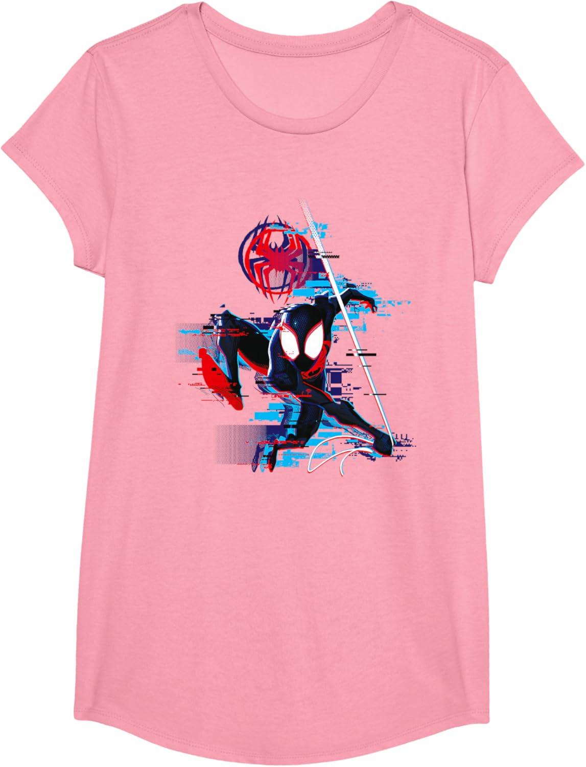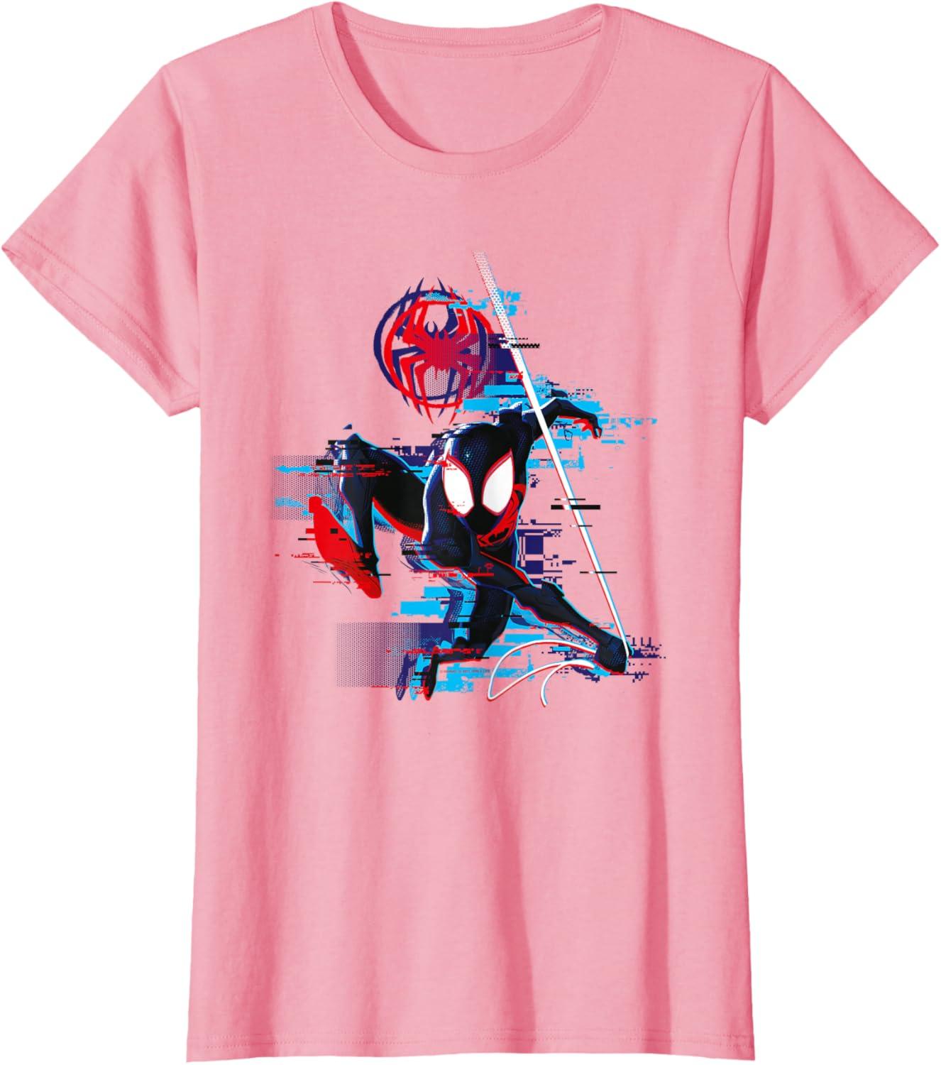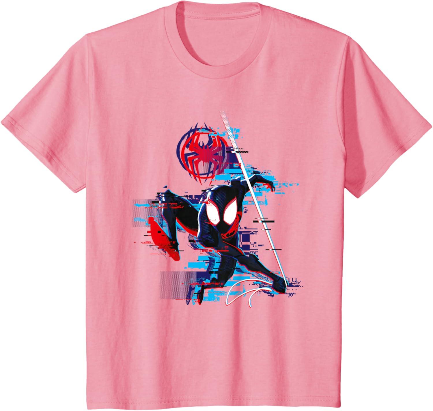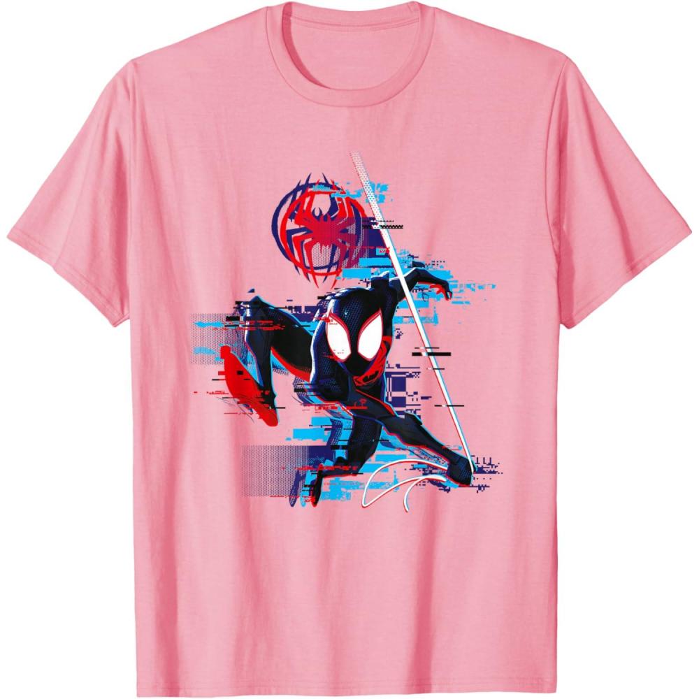 Marvel Spider-Man: Across the Spider-Verse Miles Glitch T-Shirt(Pink)