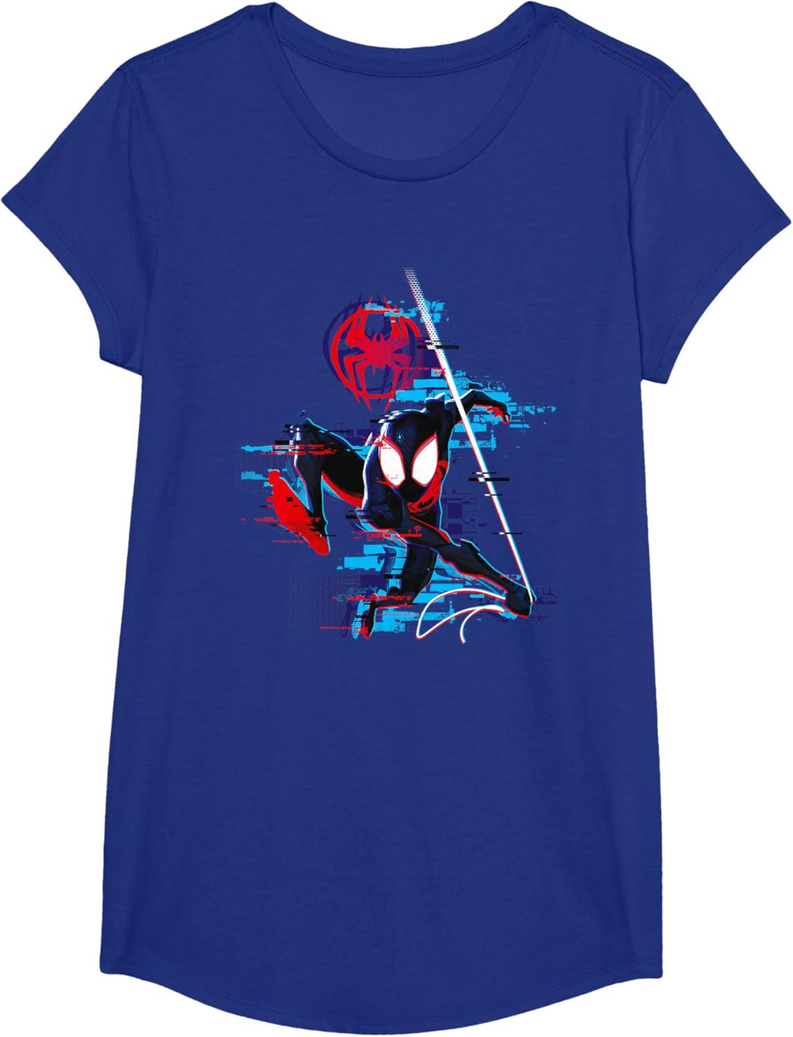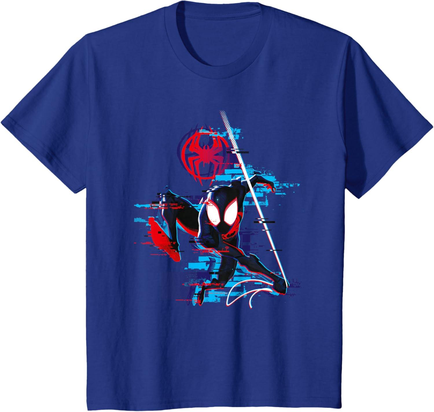Marvel Spider-Man: Across the Spider-Verse Miles Glitch T-Shirt(Royal Blue)