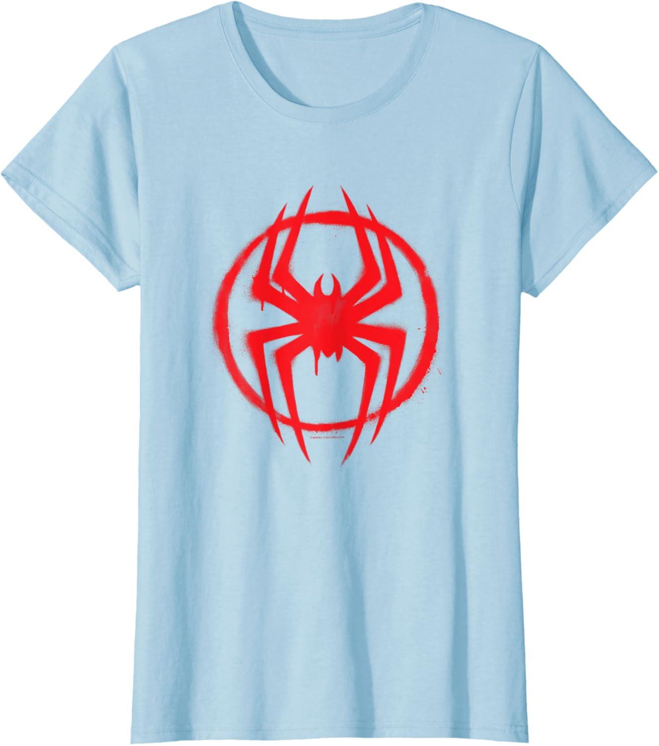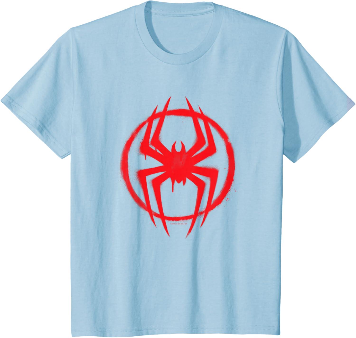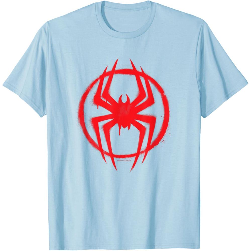 Wear the graffiti street art-inspired costume spider symbol icon of Miles Morales from “Spider-Man: Across the Spider-Verse” on this official Marvel graphic tee or hoodie! Miles Morales returns as the all-new Spidey in an even newer multiverse-spanning adventure with some familiar spider-faces and a whole lot of new ones in the exciting and action-packed movie sequel to “Spider-Man: Into the Spider-Verse”. A great gift for a Miles Morales, Spider-Man, or Marvel fan. Available in youth and adult sizes. Find it in a t-shirt, premium t-shirt, tank top, v-neck, long sleeve tee, hoodie, and sweatshirt.