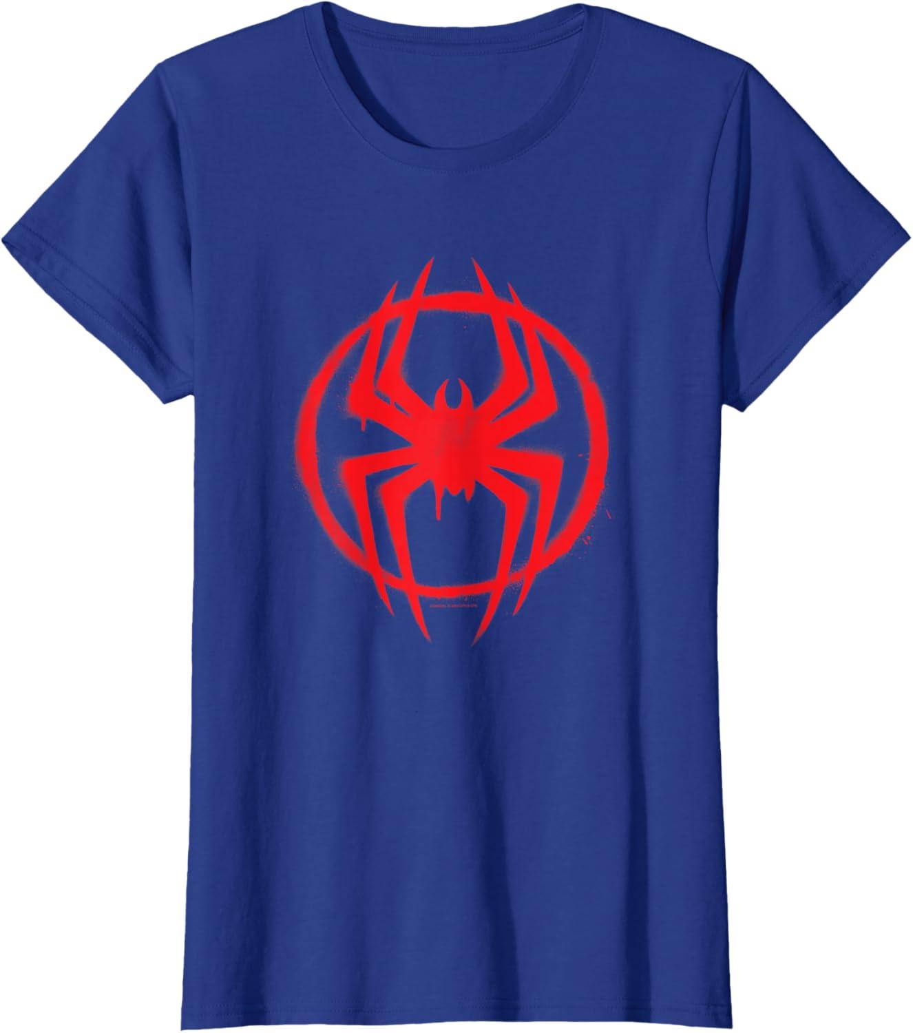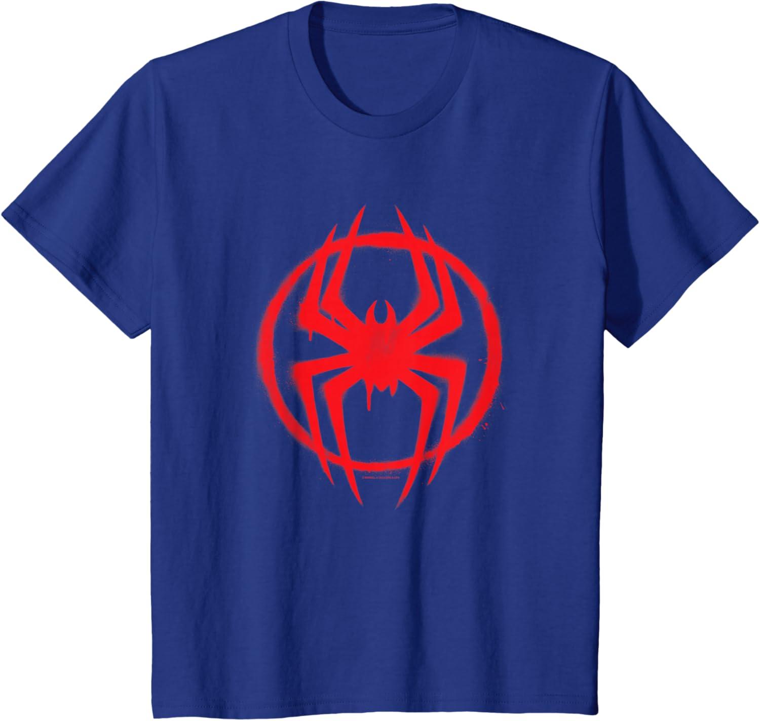 Wear the graffiti street art-inspired costume spider symbol icon of Miles Morales from “Spider-Man: Across the Spider-Verse” on this official Marvel graphic tee or hoodie! Miles Morales returns as the all-new Spidey in an even newer multiverse-spanning adventure with some familiar spider-faces and a whole lot of new ones in the exciting and action-packed movie sequel to “Spider-Man: Into the Spider-Verse”. A great gift for a Miles Morales, Spider-Man, or Marvel fan. Available in youth and adult sizes. Find it in a t-shirt, premium t-shirt, tank top, v-neck, long sleeve tee, hoodie, and sweatshirt.