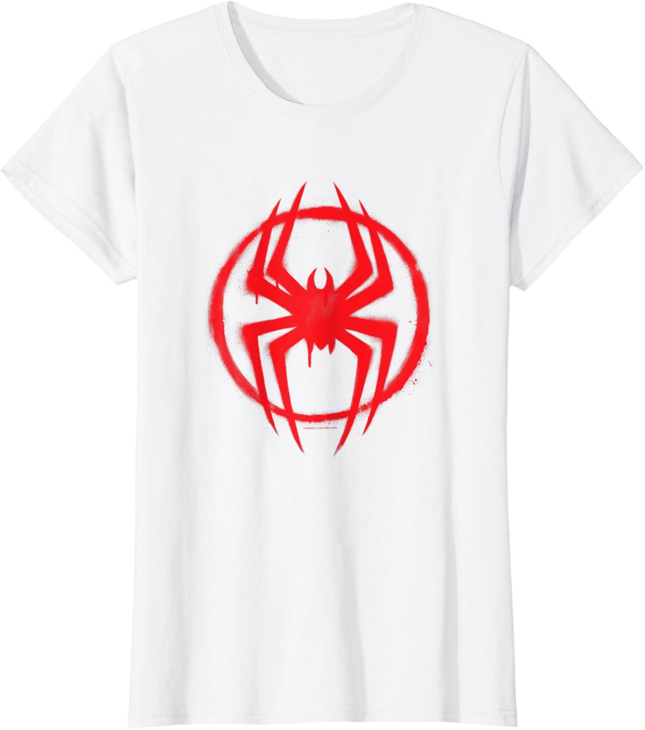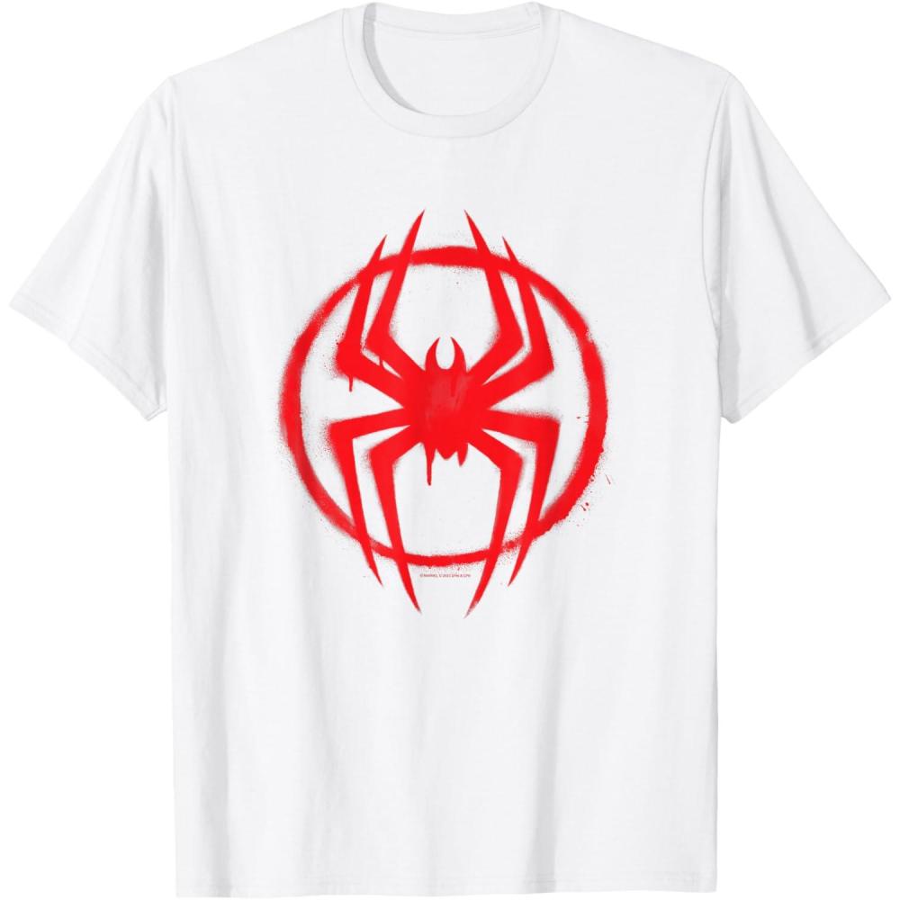 Wear the graffiti street art-inspired costume spider symbol icon of Miles Morales from “Spider-Man: Across the Spider-Verse” on this official Marvel graphic tee or hoodie! Miles Morales returns as the all-new Spidey in an even newer multiverse-spanning adventure with some familiar spider-faces and a whole lot of new ones in the exciting and action-packed movie sequel to “Spider-Man: Into the Spider-Verse”. A great gift for a Miles Morales, Spider-Man, or Marvel fan. Available in youth and adult sizes. Find it in a t-shirt, premium t-shirt, tank top, v-neck, long sleeve tee, hoodie, and sweatshirt.