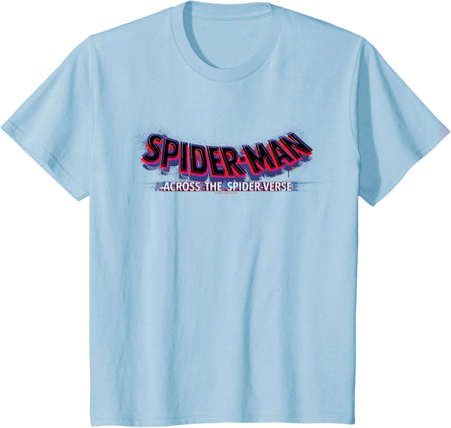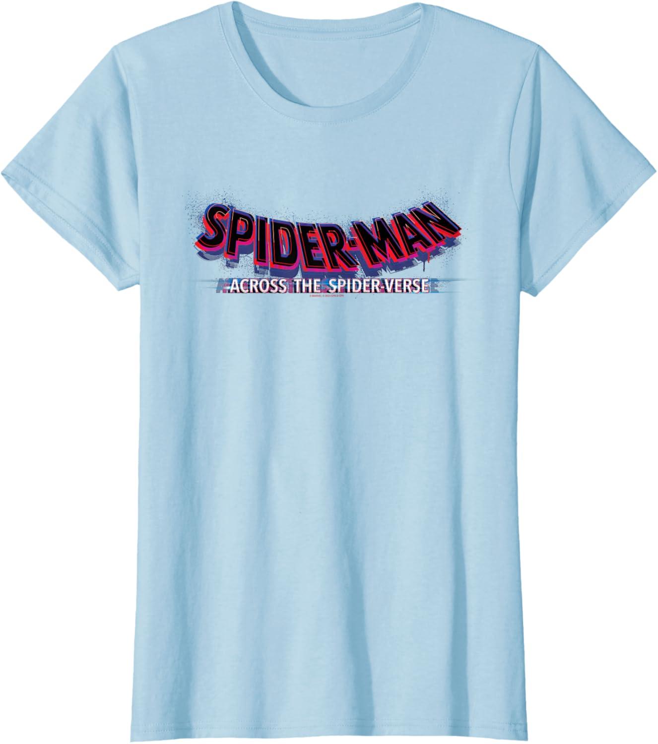 Marvel Spider-Man: Across the Spider-Verse Movie Logo T-Shirt(Baby Blue)