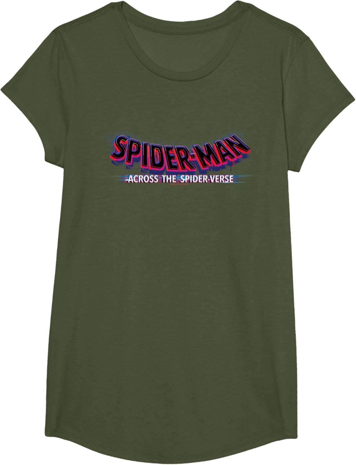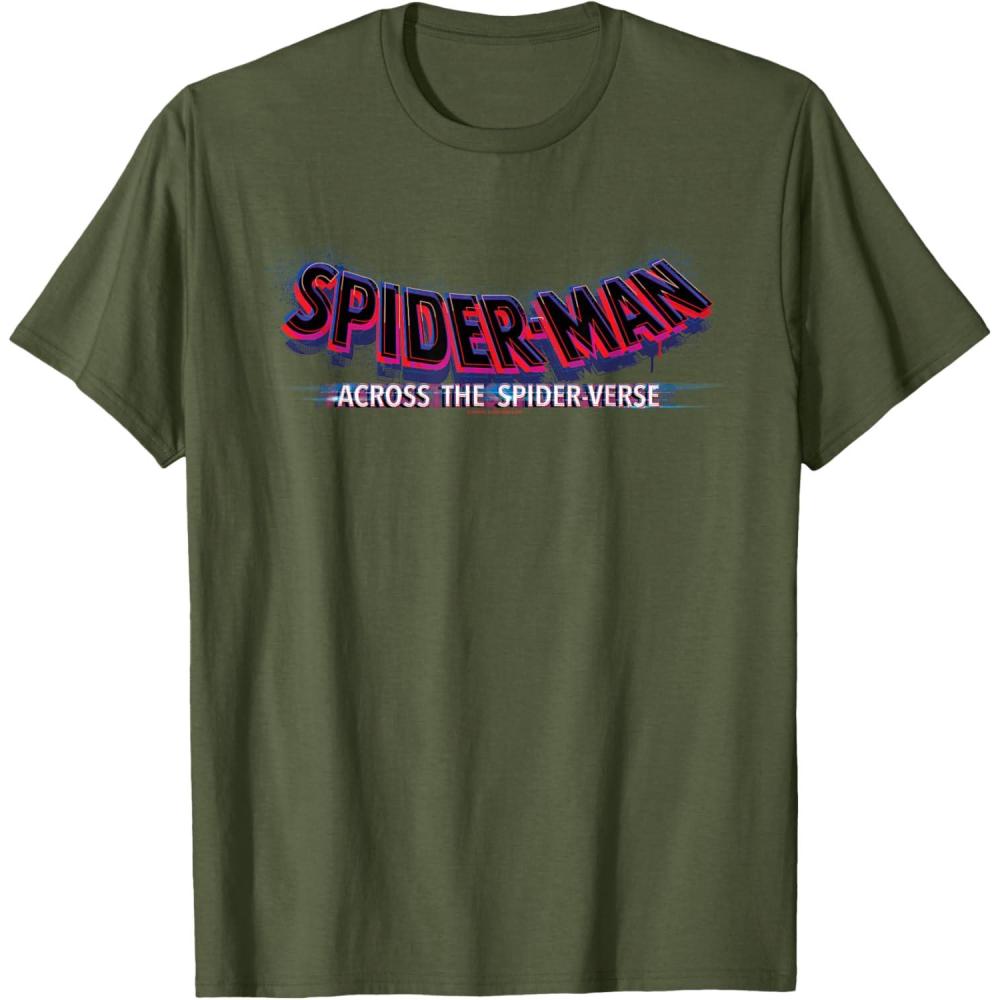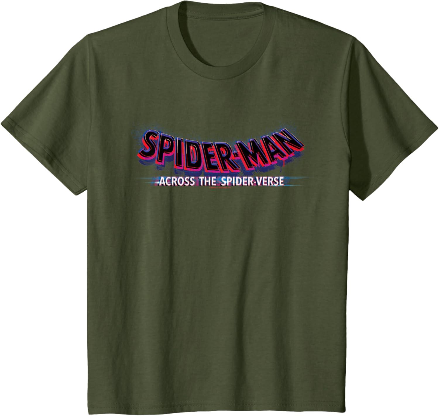 Marvel Spider-Man: Across the Spider-Verse Movie Logo T-Shirt(Olive Green)