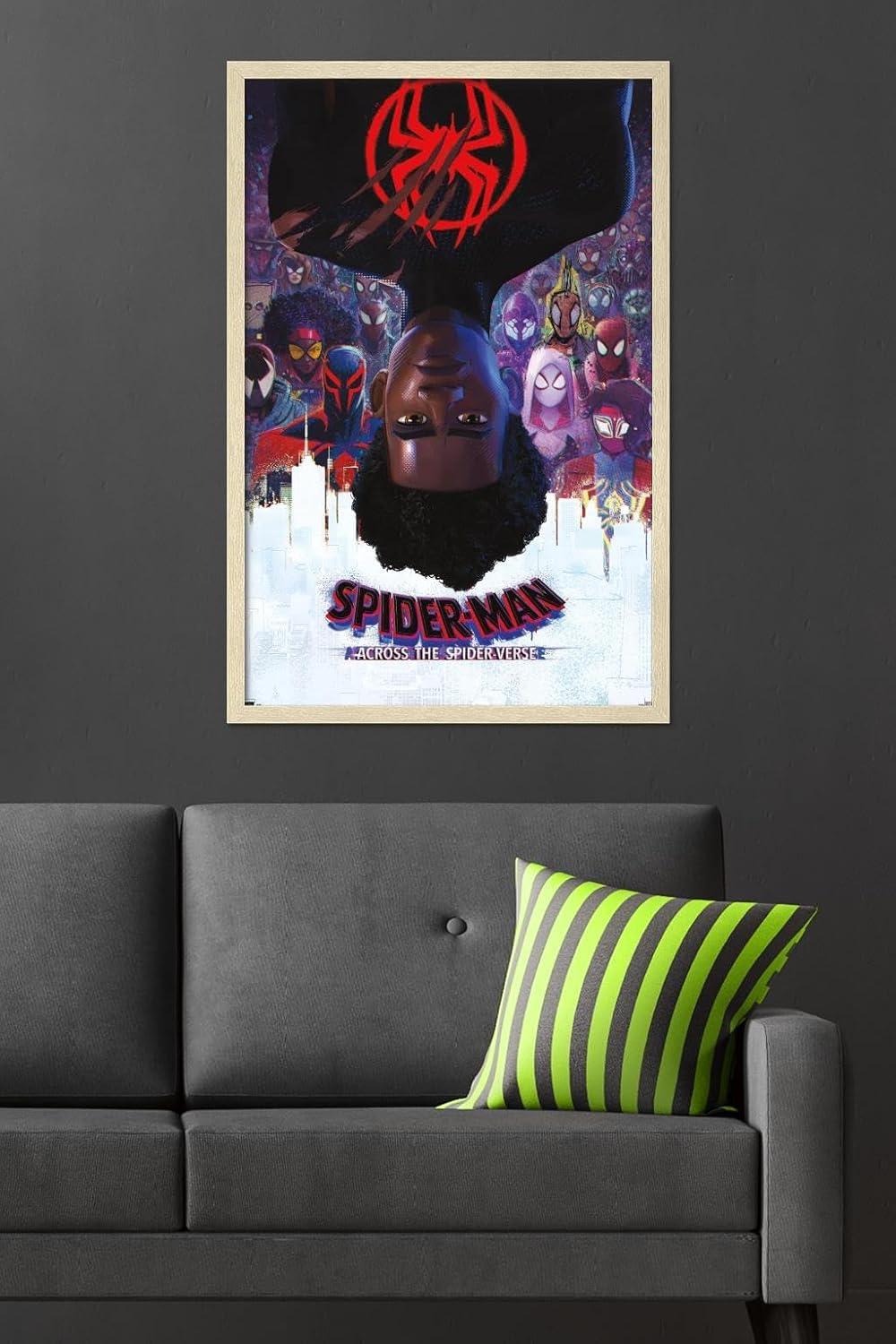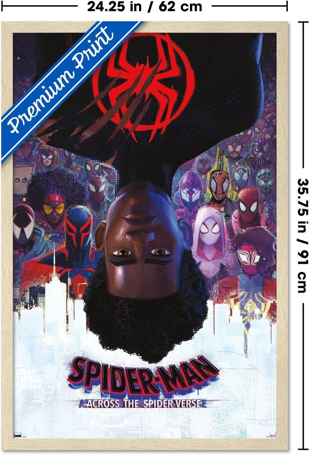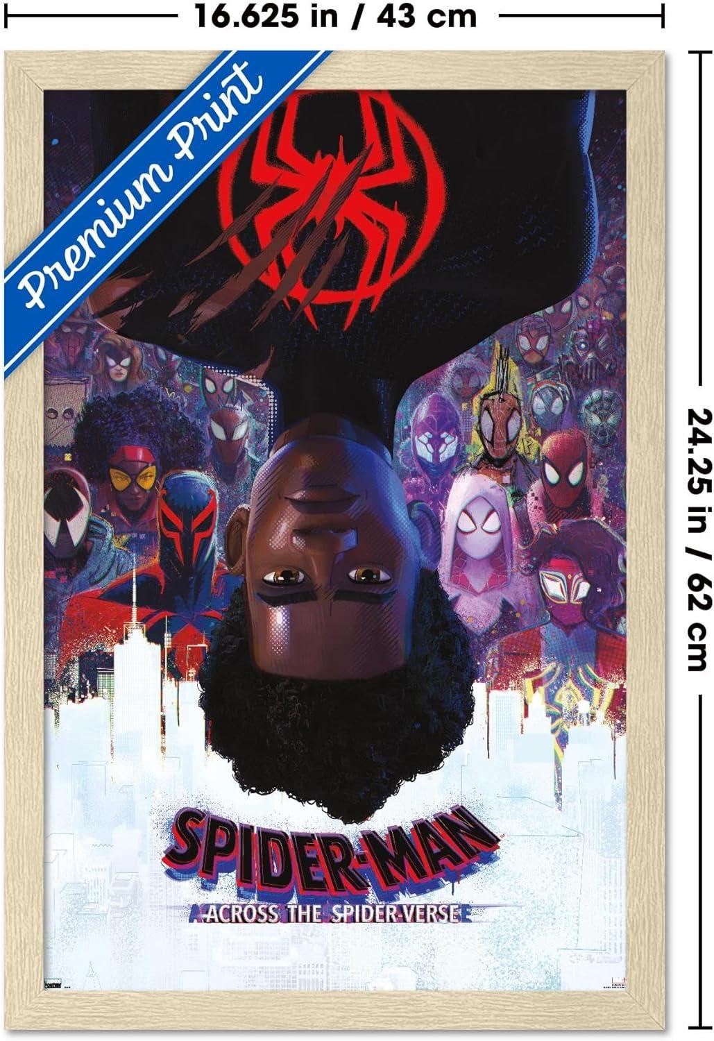 Marvel Spider-Man: Across the Spider-Verse - Official One Sheet Wall Poster, 34L" x 22.4W", Premium Unframed Version(Blonde Framed Version)