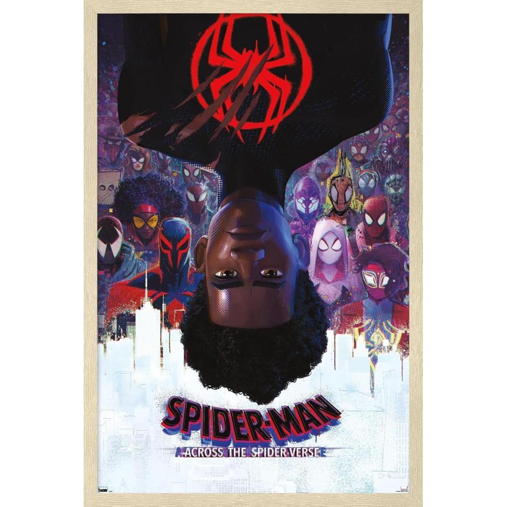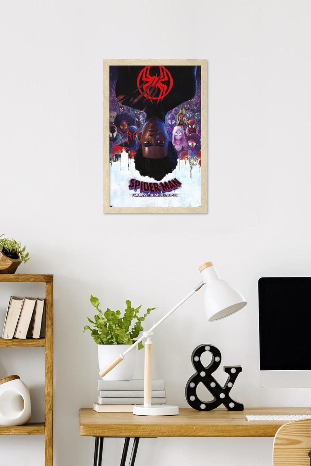 Marvel Spider-Man: Across the Spider-Verse – Official One Sheet Wall Poster, 34L” x 22.4W”, Premium Unframed Version(Blonde Framed Version)