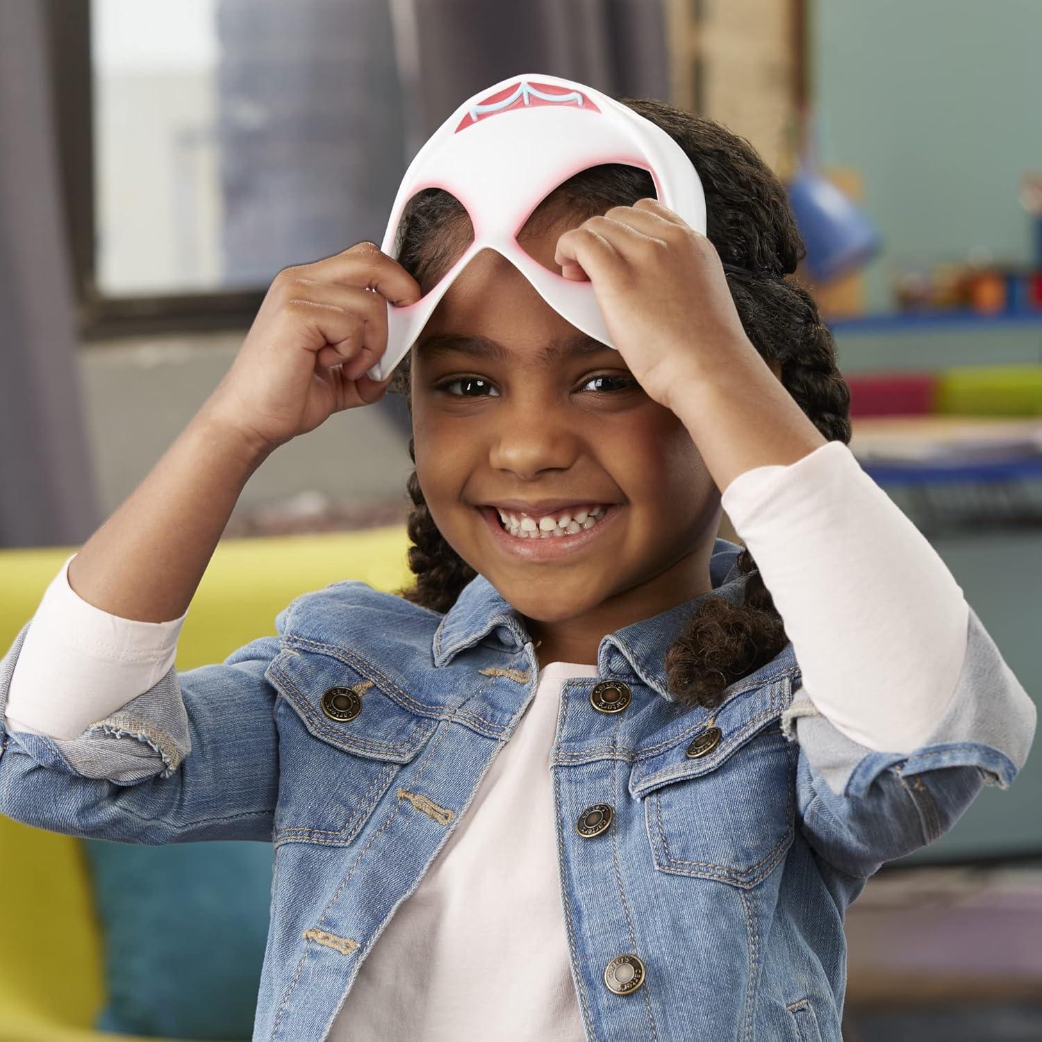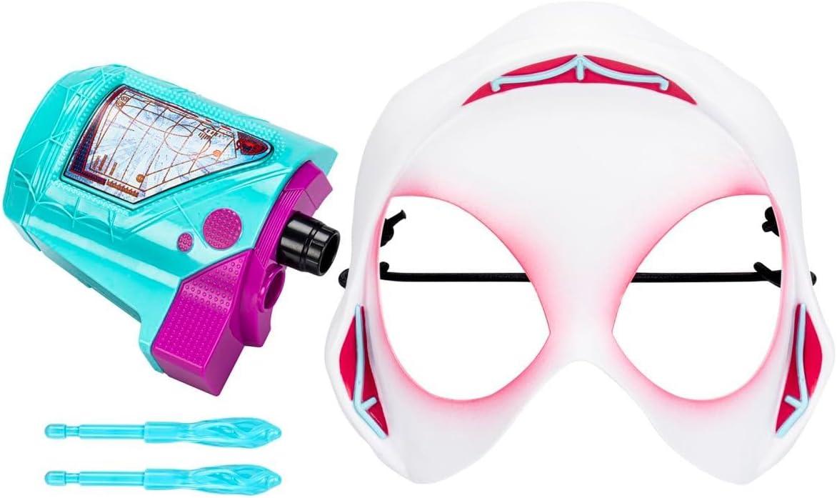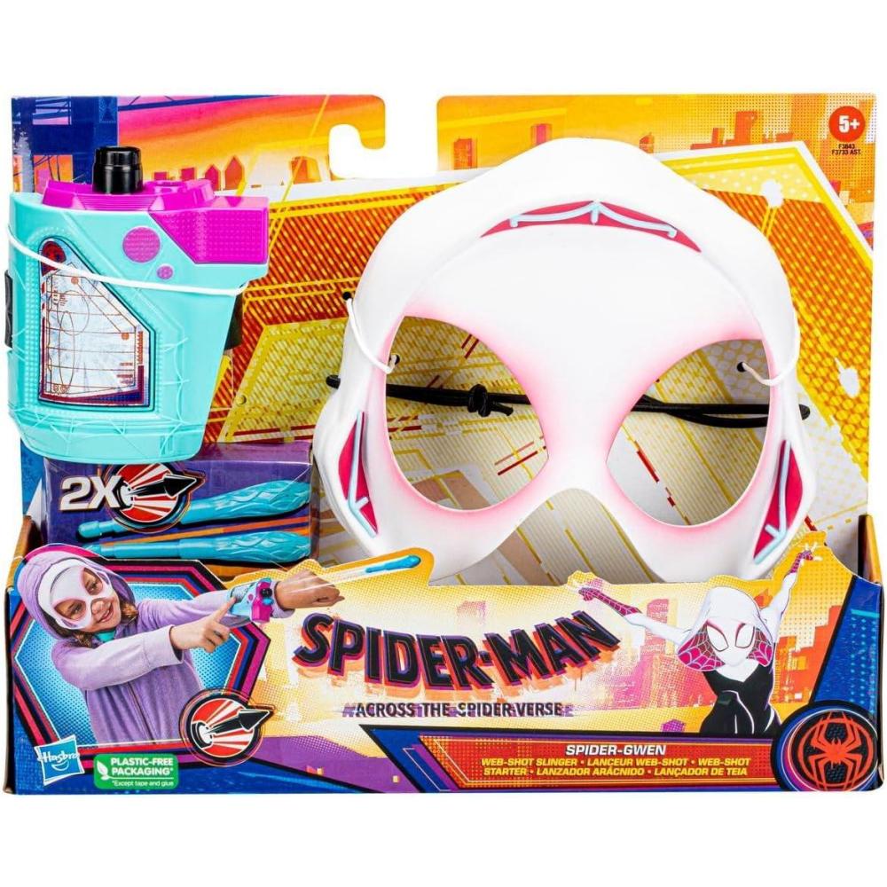 This Spider-Woman has grown up a lot over the past two years, keeping busy between band practice, protecting her city as Spider-Gwen, and keeping her spider-identity a secret. Imagine suiting up as Spider-Gwen to swing into web-blasting action in the Spider-Verse! Kids ages 5 and up can pretend to gear up and save the world as one of their favorite wall-crawlers with this Marvel Spider-Man roleplay mask and blaster set, inspired by the Spider-Man: Across the Spider-Verse movie. Load one of the 2 included projectiles into the Spider-Gwen Web-Shot Slinger and pretend to blast the bad guys with the press of a button! Kids can even store their extra projectile in the blaster for easy reload and launch. Boys and girls will love re-creating favorite moments from the Marvel entertainment, as well as imagining their own Super Hero adventures! Copyright 2022 MARVEL. Copyright 2022 SPA & CPII. Hasbro and all related terms are trademarks of Hasbro.