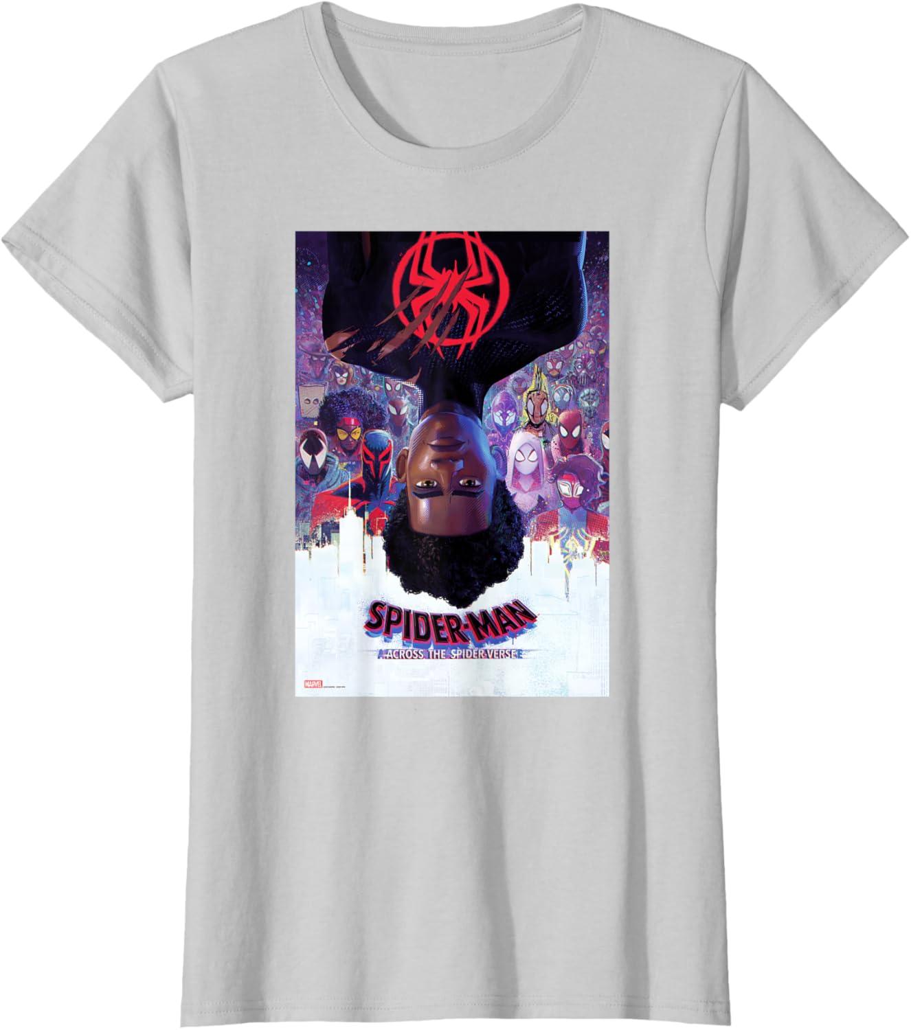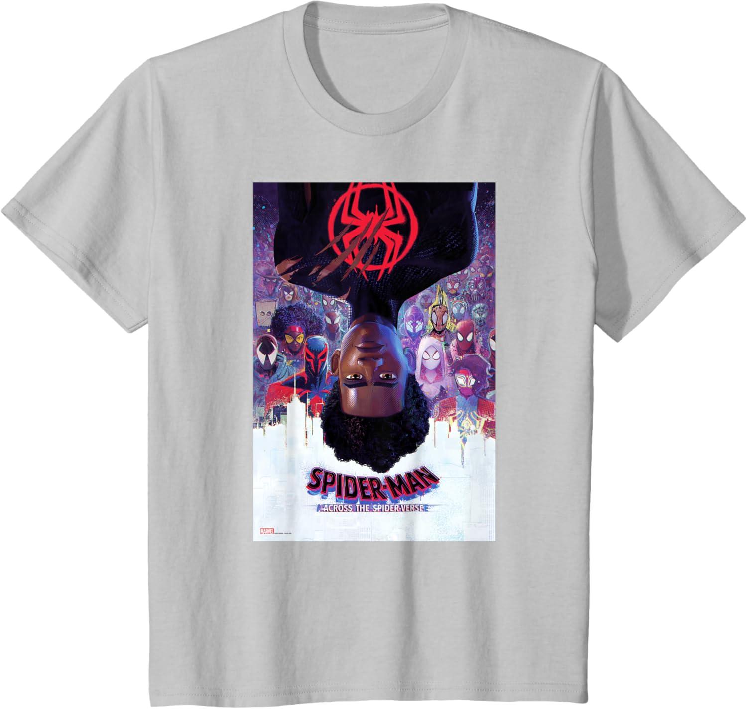 Marvel Spider-Man: Across the Spider-Verse Theatrical Poster T-Shirt(Silver Grey)