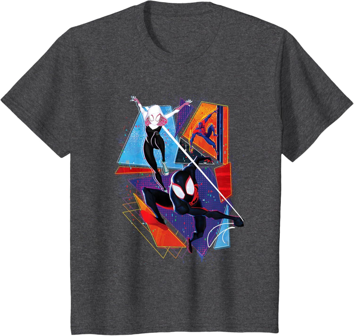 Swing, leap, and wall-crawl into action with this thrilling official Marvel graphic tee or hoodie from the new “Spider-Man: Across the Spider-Verse” movie sequel, featuring an action-packed scene of Miles Morales as Spider-Man, Gwen Stacy as Spider-Woman (a.k.a. Spider-Gwen and Ghost Spider), and the multiverse-hopping Miguel O’Hara as the mysterious Spider-Man 2099. A great gift for a Miles Morales, Spider-Gwen, Spider-Man, or Marvel fan. Available in youth and adult sizes. Find it in a t-shirt, premium t-shirt, tank top, v-neck, long sleeve tee, hoodie, and sweatshirt.
