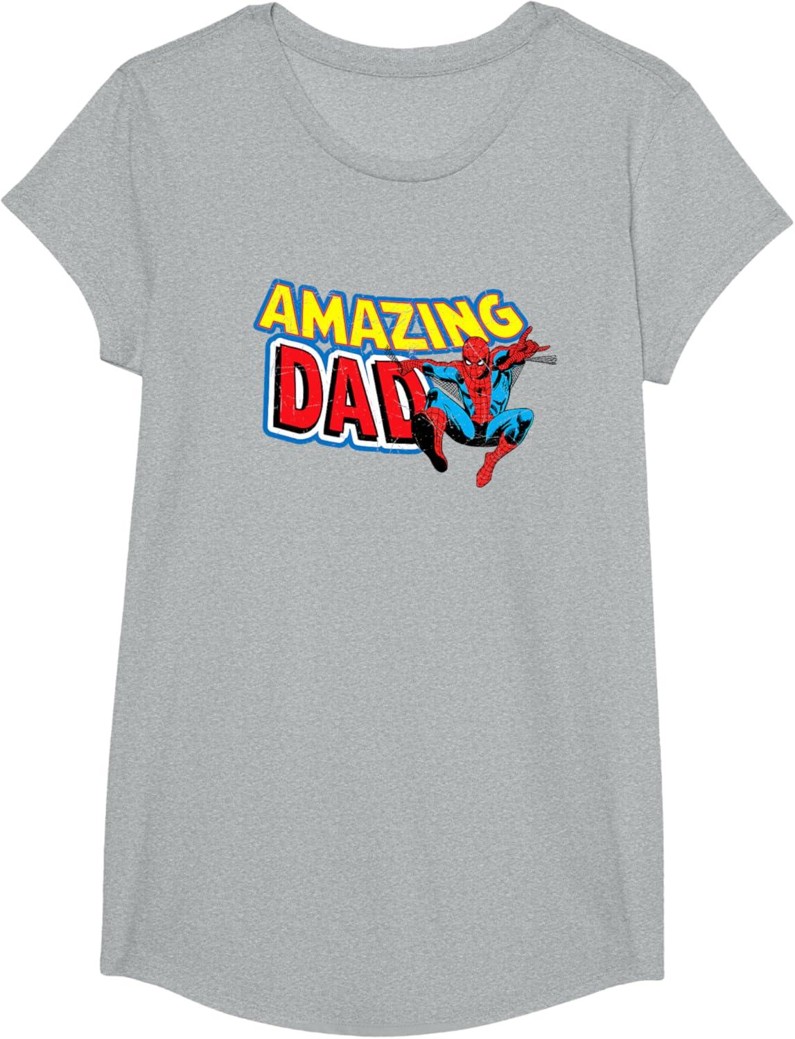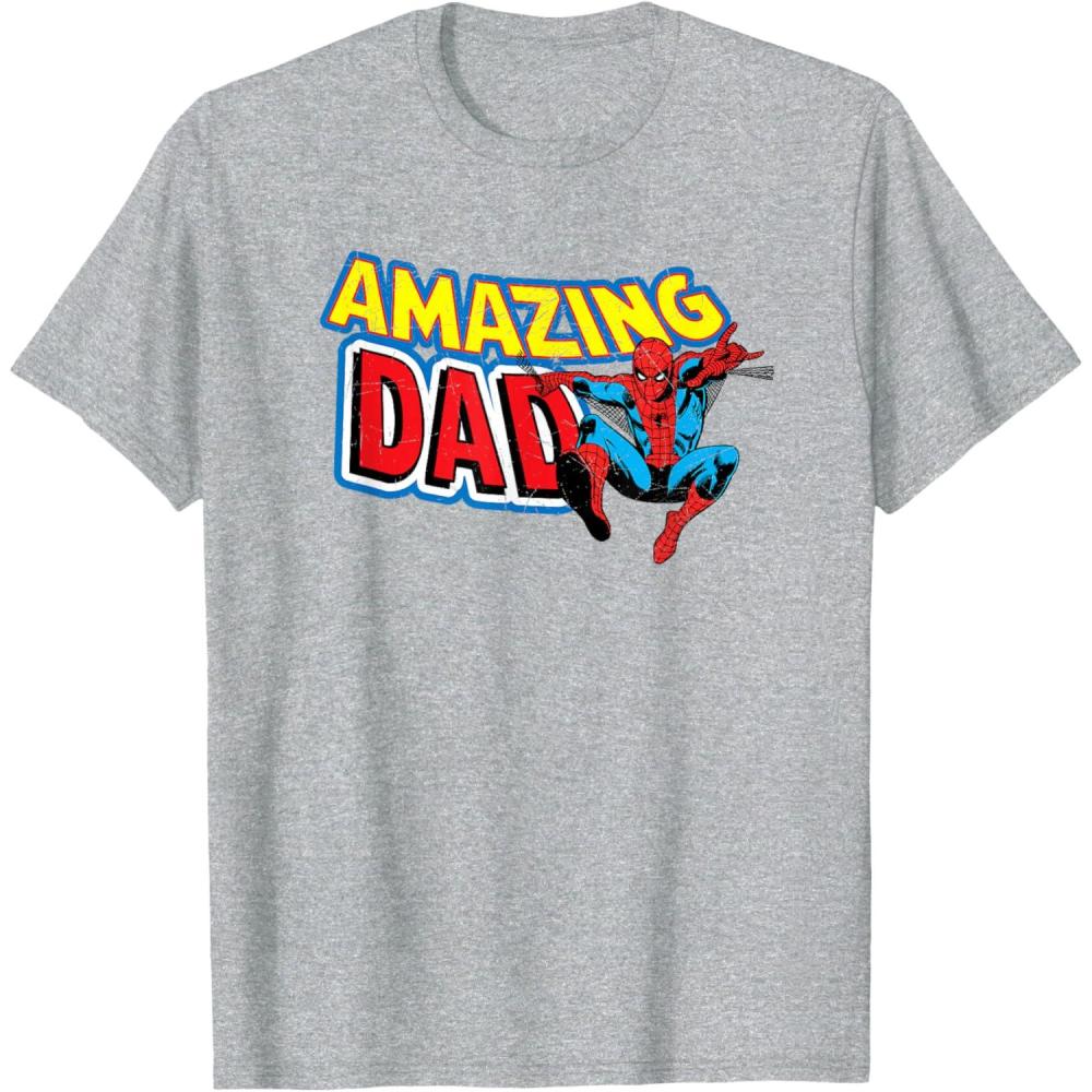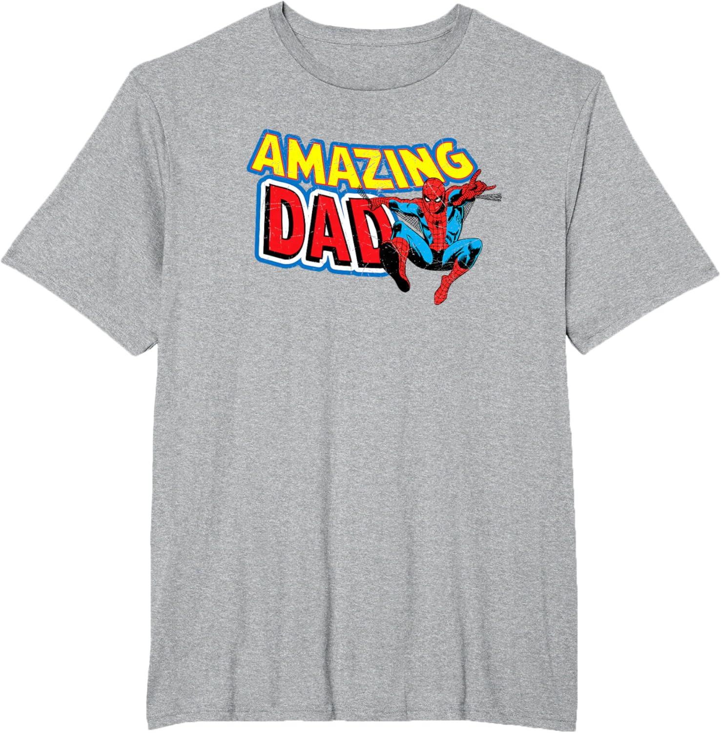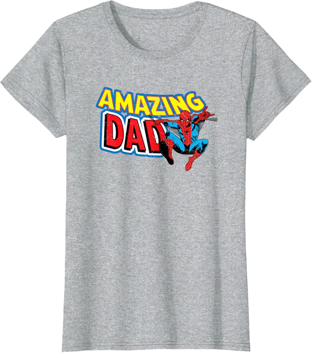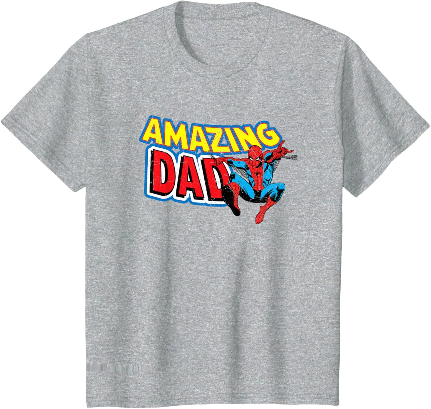 Marvel Spider-Man Amazing Dad Comic Book Father’s Day T-Shirt(Dark Heather Grey)