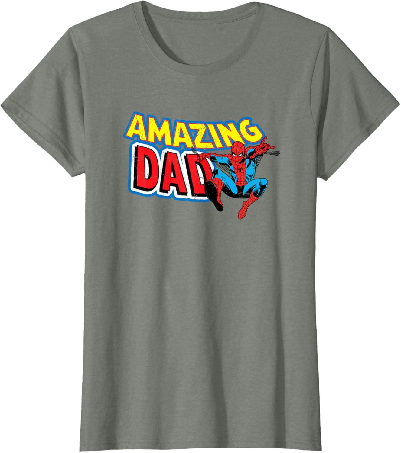 Marvel Spider-Man Amazing Dad Comic Book Father’s Day T-Shirt(Olive Heather)