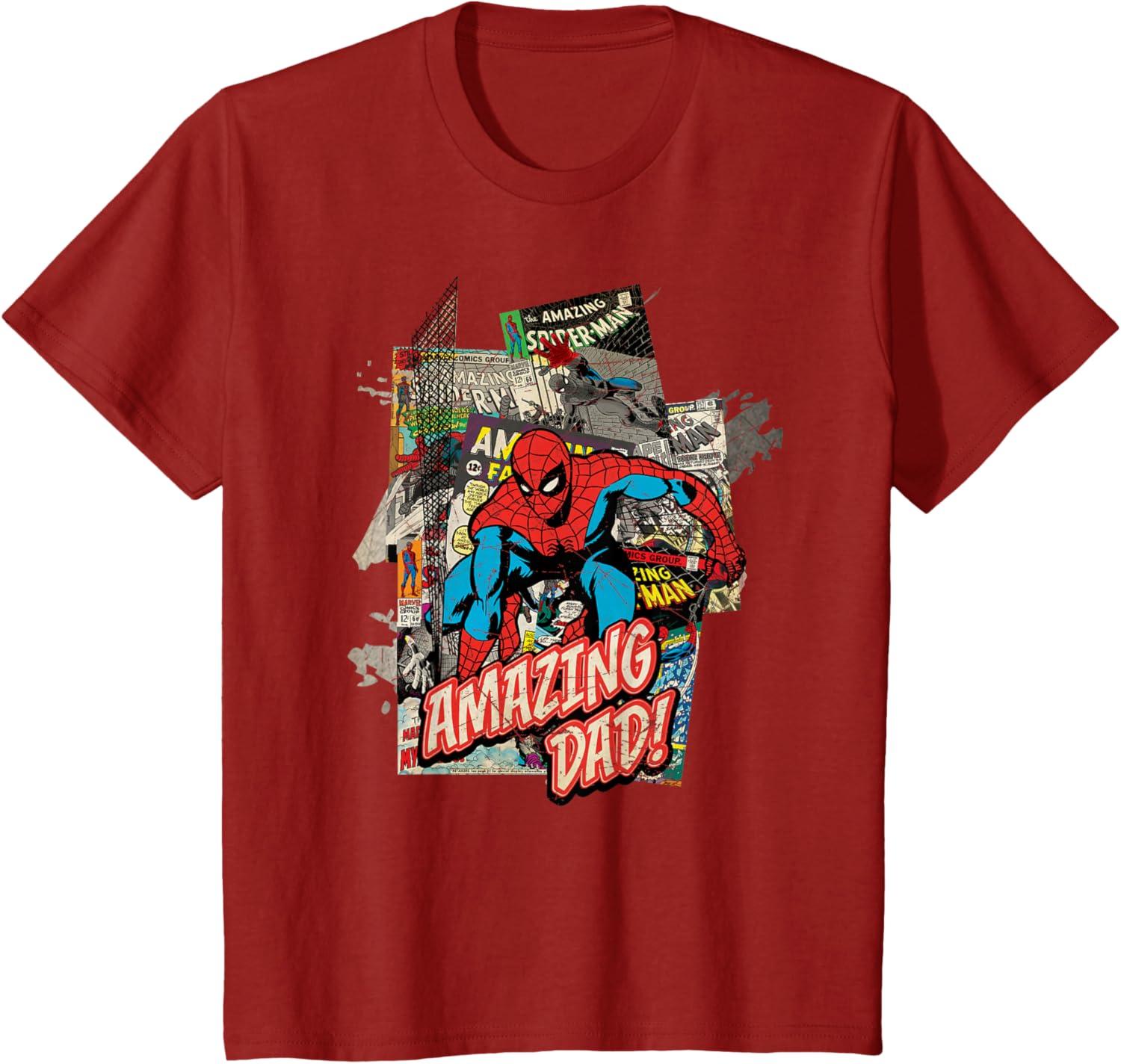 Marvel Spider-Man Amazing Dad Father’s Day T-Shirt(Cranberry Red)
