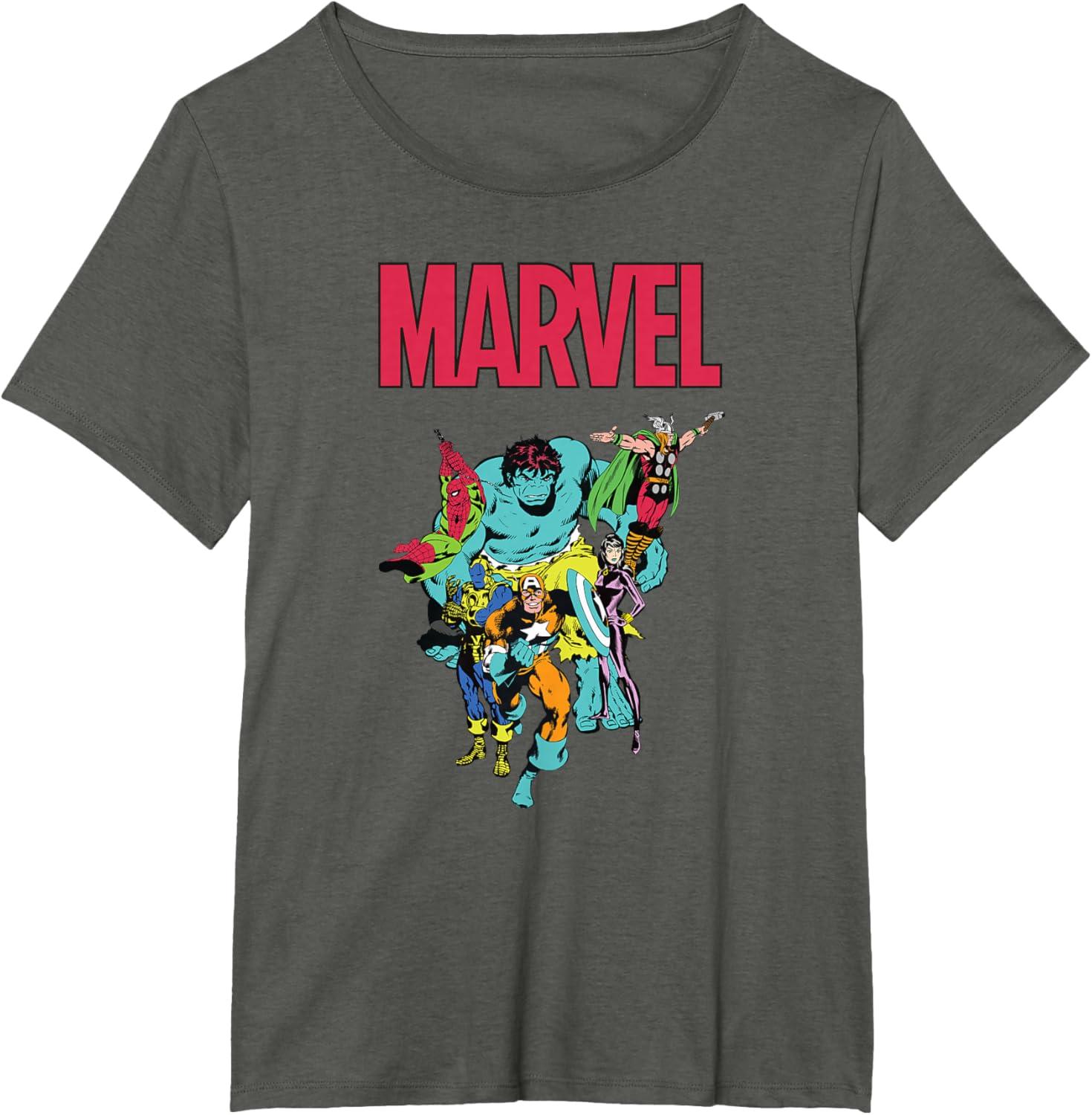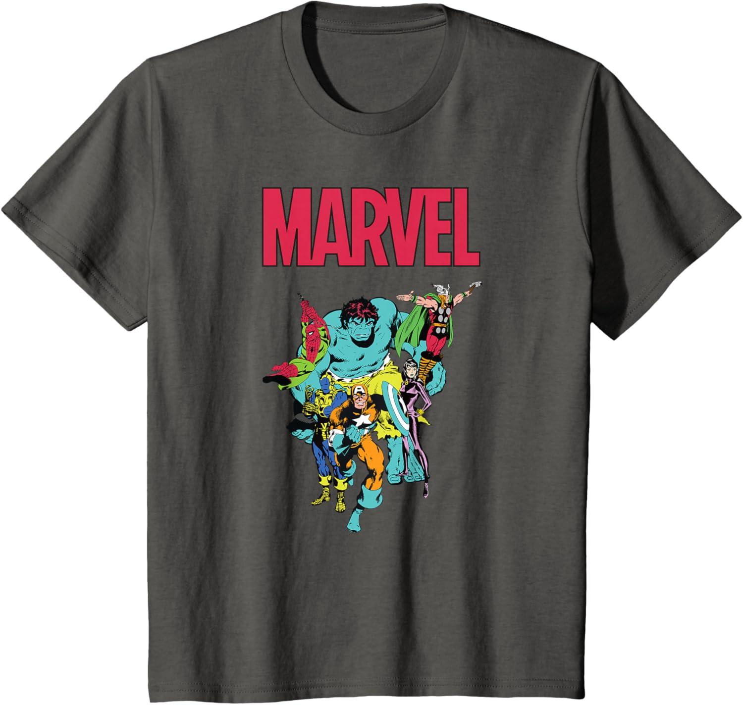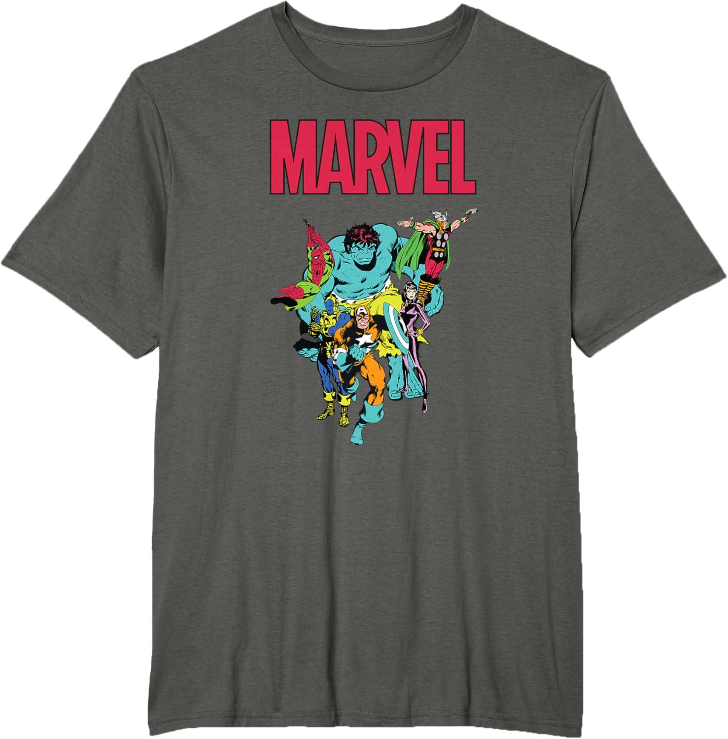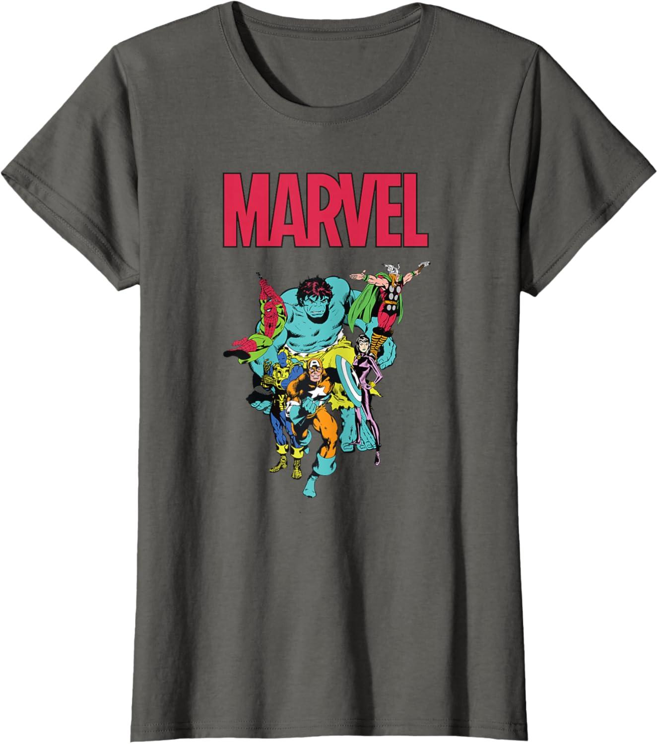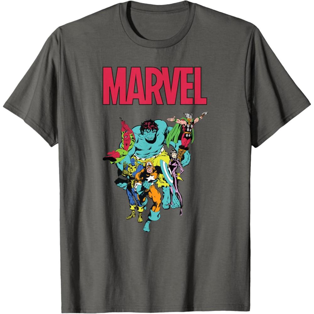 Marvel Spider-Man and Avengers Retro Silver Age Super Heroes T-Shirt(Asphalt Grey)