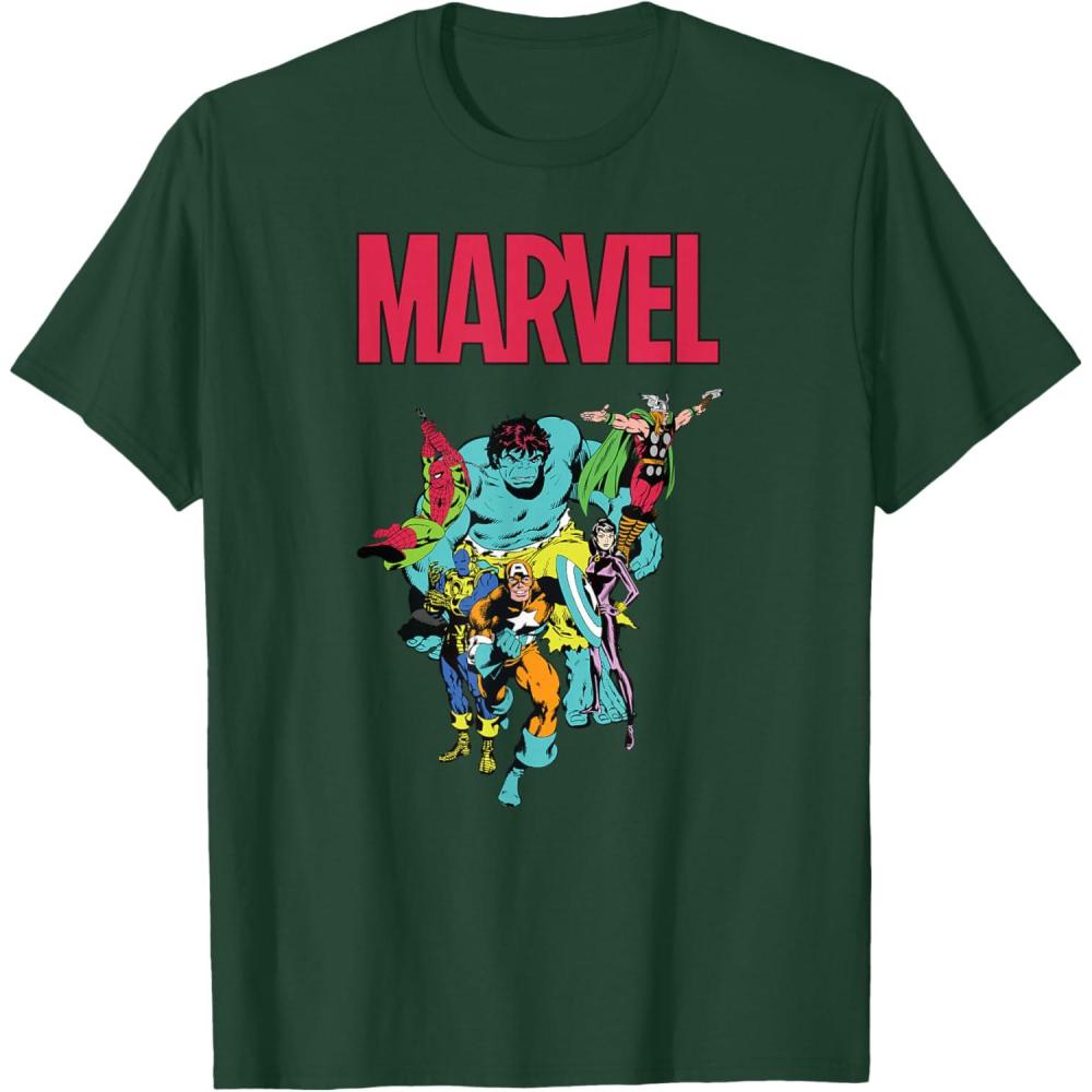 Marvel Spider-Man and Avengers Retro Silver Age Super Heroes T-Shirt(Dark Green)
