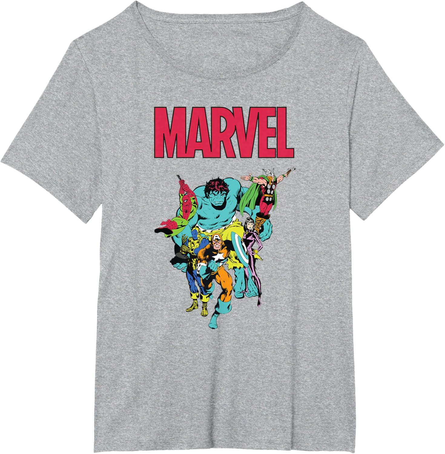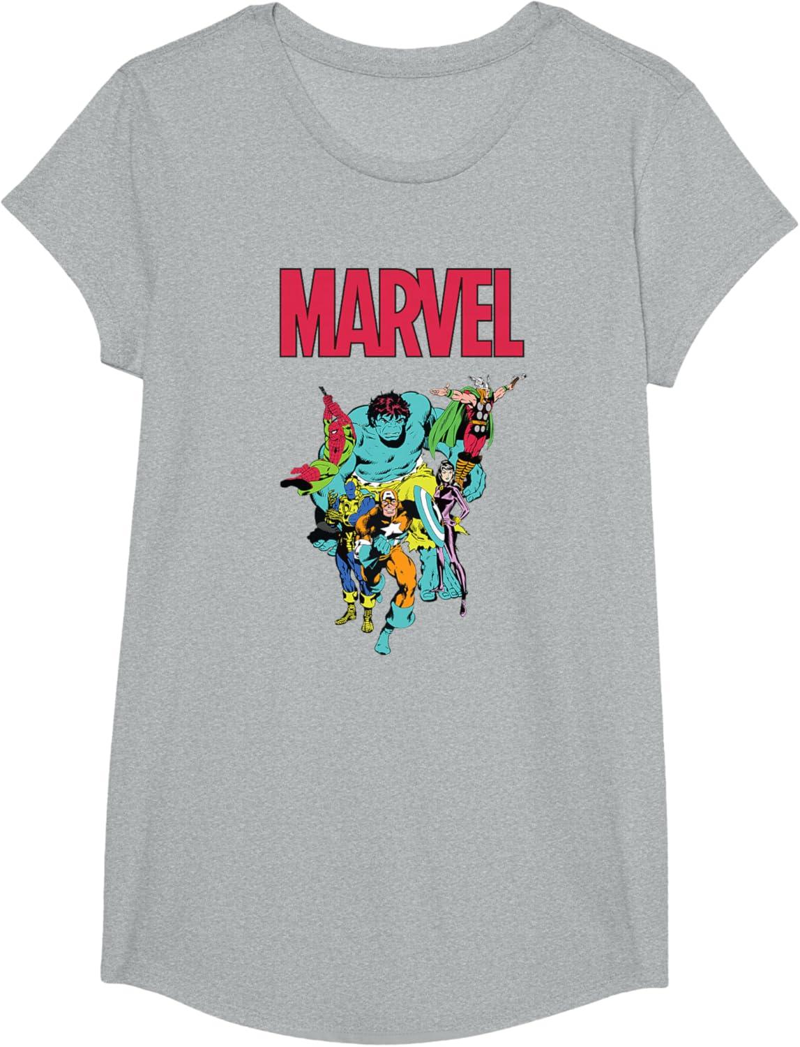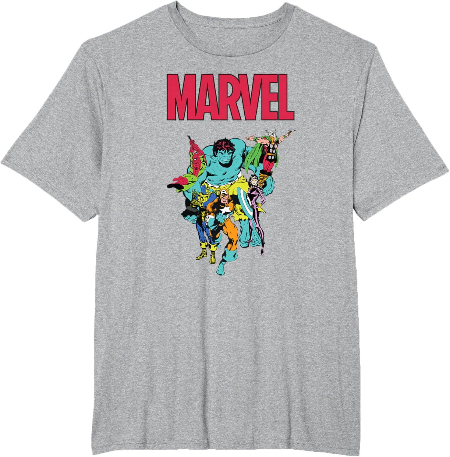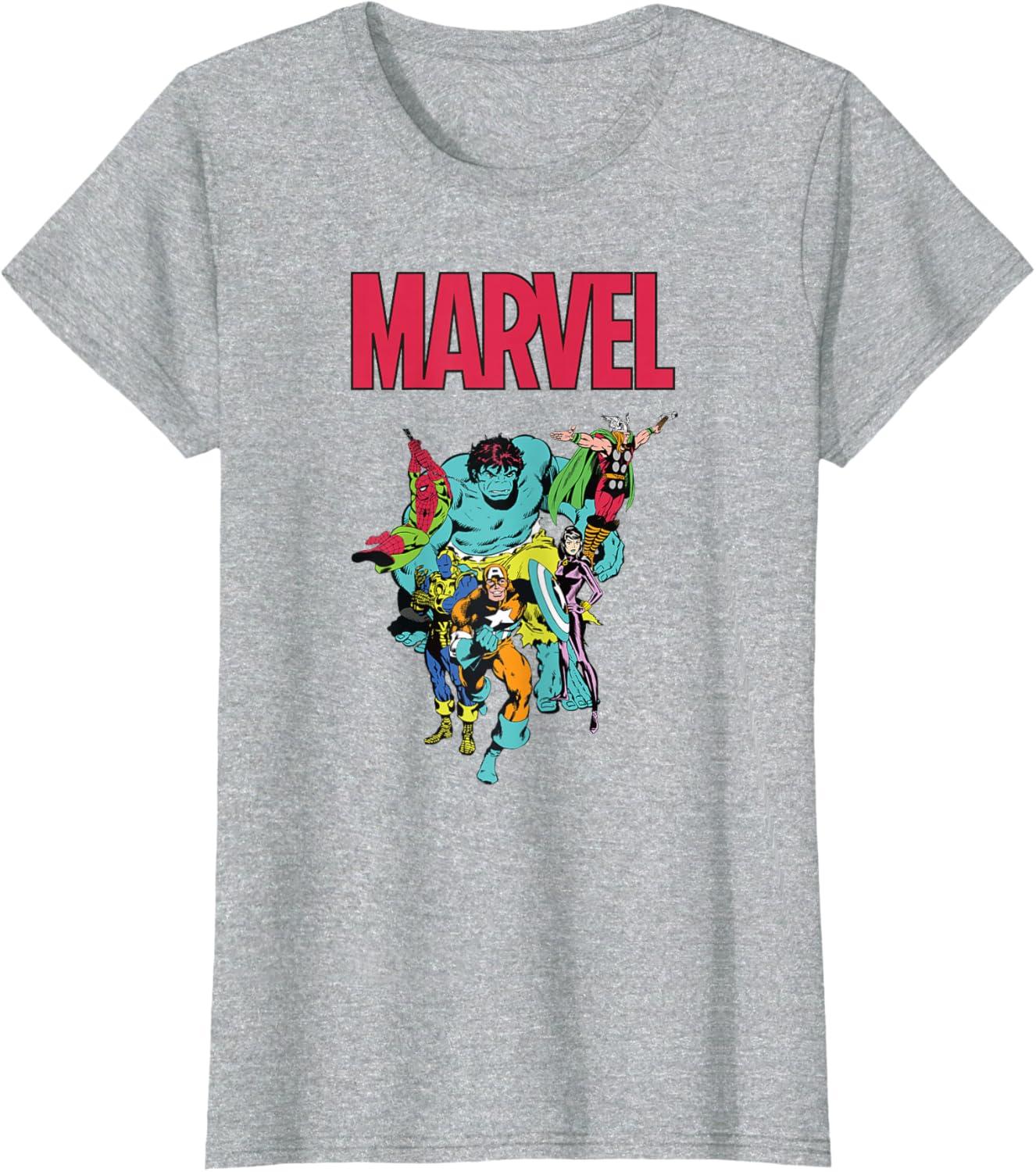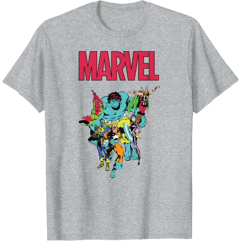 Marvel Spider-Man and Avengers Retro Silver Age Super Heroes T-Shirt(Heather Grey)