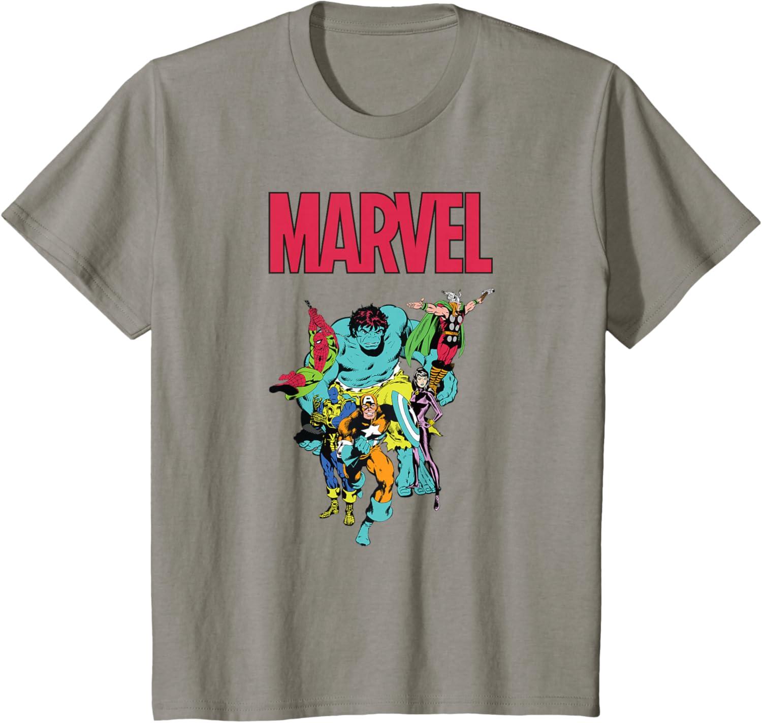 Make your love of Marvel Super Heroes a little bit retro with this official Marvel tee and hoodie, featuring eye-catchingly colored Silver Age comic art of Captain America, Iron Man, the Hulk, Thor, Black Widow, and Spider-Man, with the iconic Marvel logo above. A great gift for a Marvel, Avengers, or Spider-Man fan! Planning a trip to Avengers Campus at Disney California Adventure Park or another super destination? Get multiples to coordinate and match with friends and family for even more superhero-sized fun! Available in youth and adult sizes. Find it in a t-shirt, premium t-shirt, tank top, v-neck, long sleeve tee, hoodie, and sweatshirt.