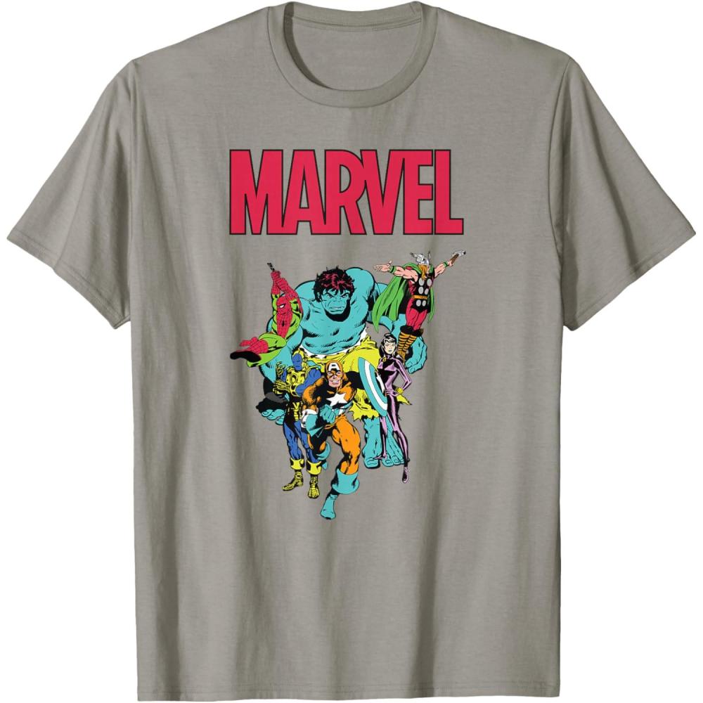 Marvel Spider-Man and Avengers Retro Silver Age Super Heroes T-Shirt(Asphalt Grey)