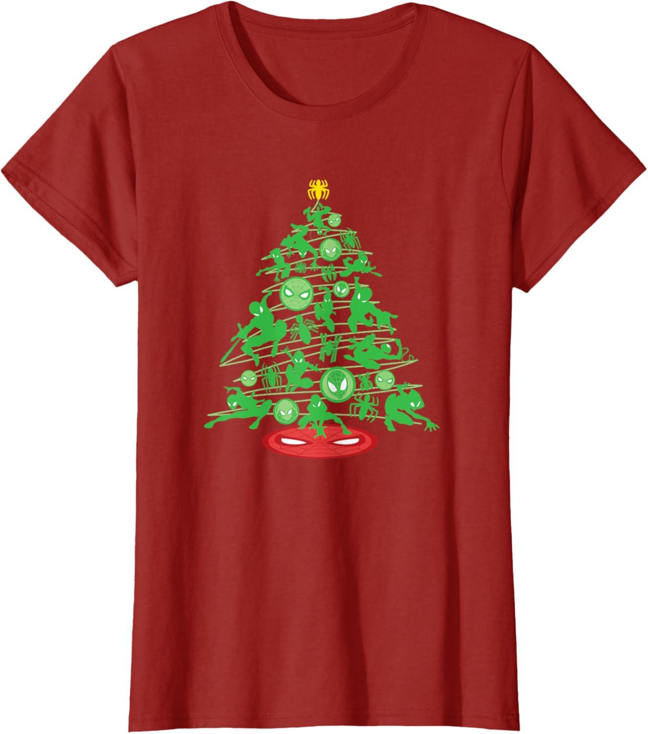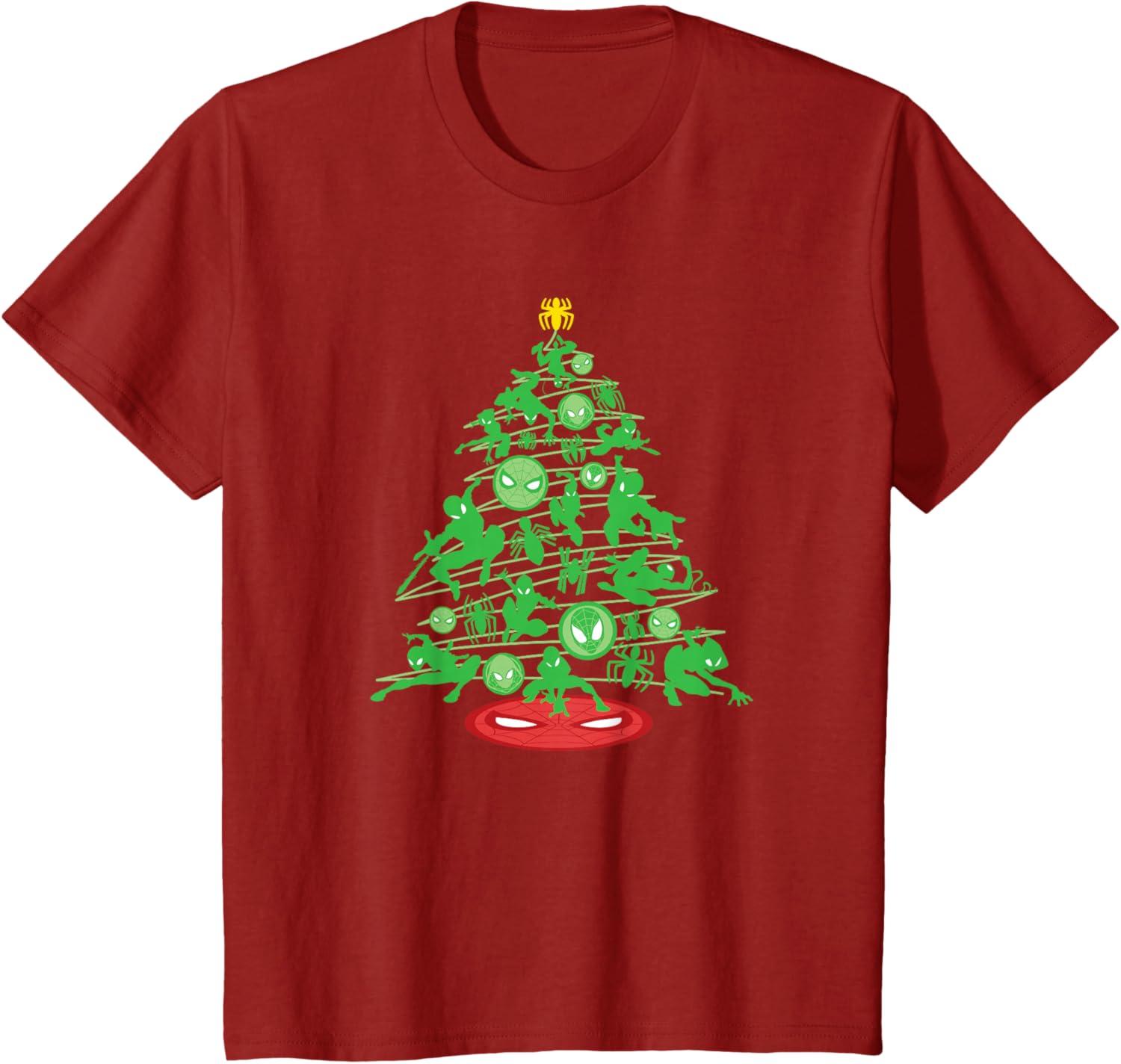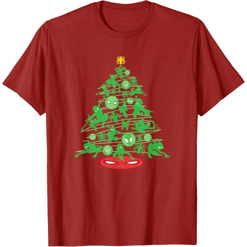 Marvel Spider-Man Christmas Tree Holiday T-Shirt(Cranberry Red)