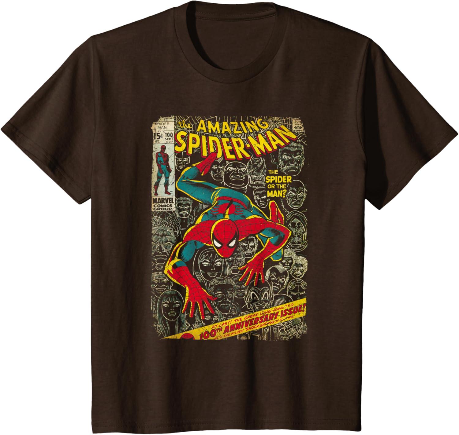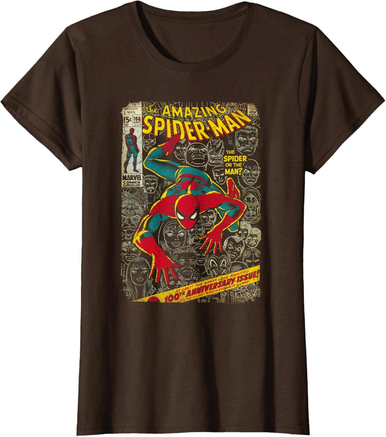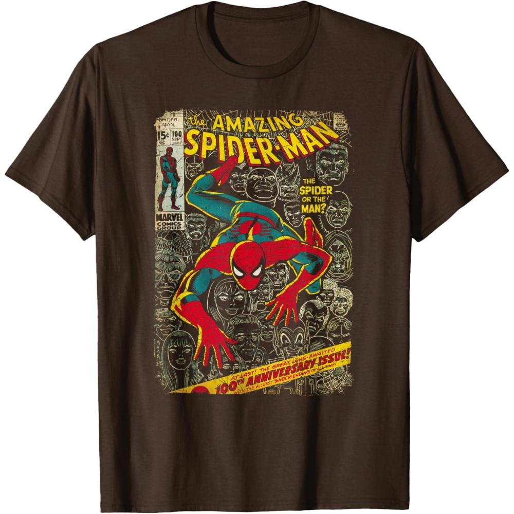 Marvel Spider-Man Comic Book Anniversary Short Sleeve T-Shirt(Brown)