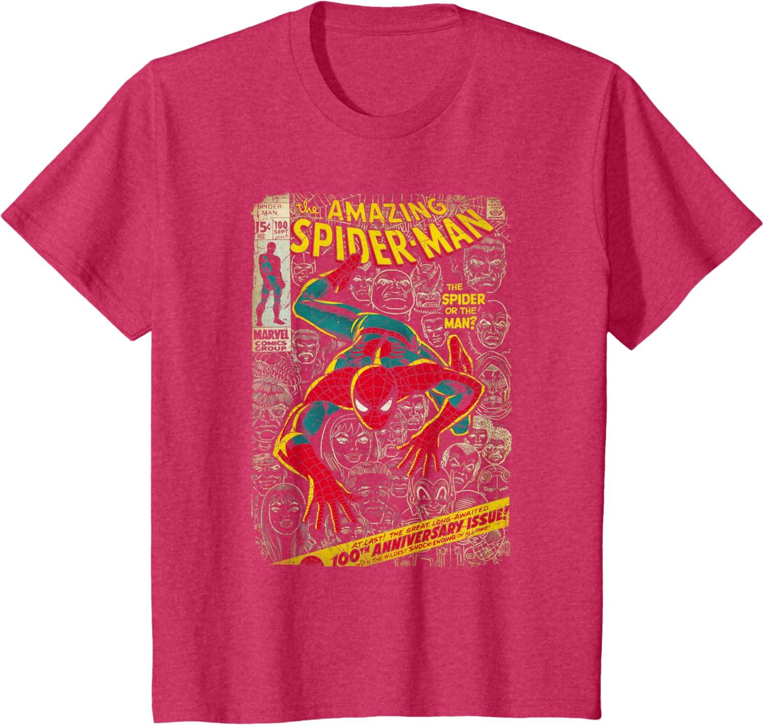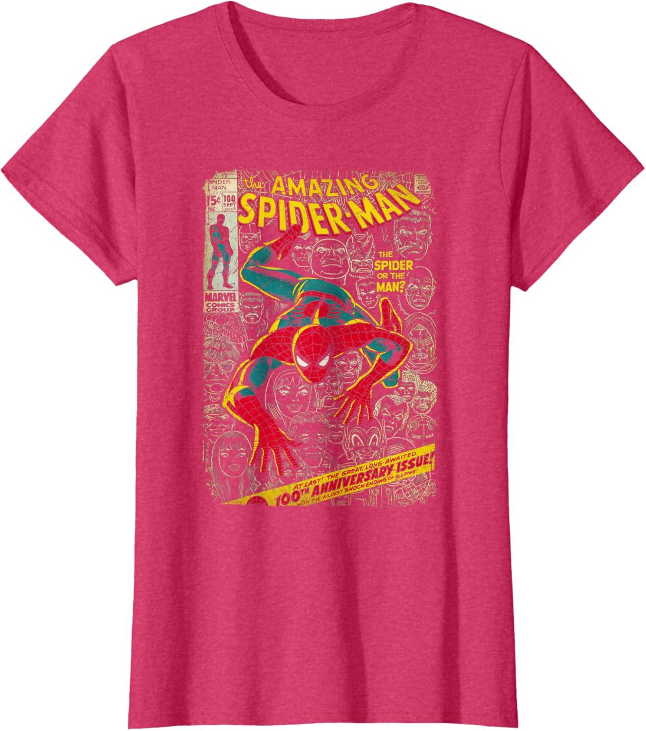 Marvel Spider-Man Comic Book Anniversary Short Sleeve T-Shirt(Red Heather)