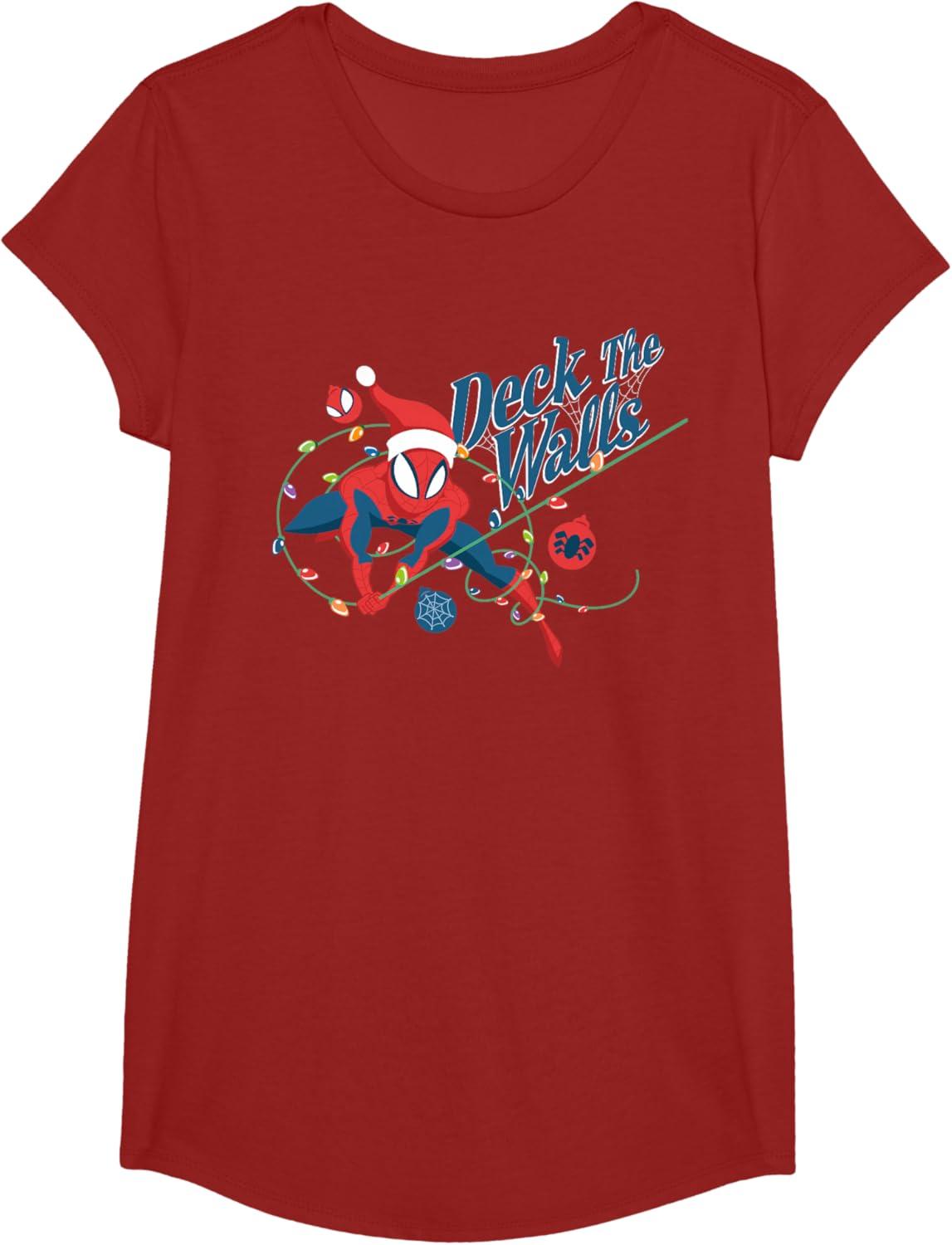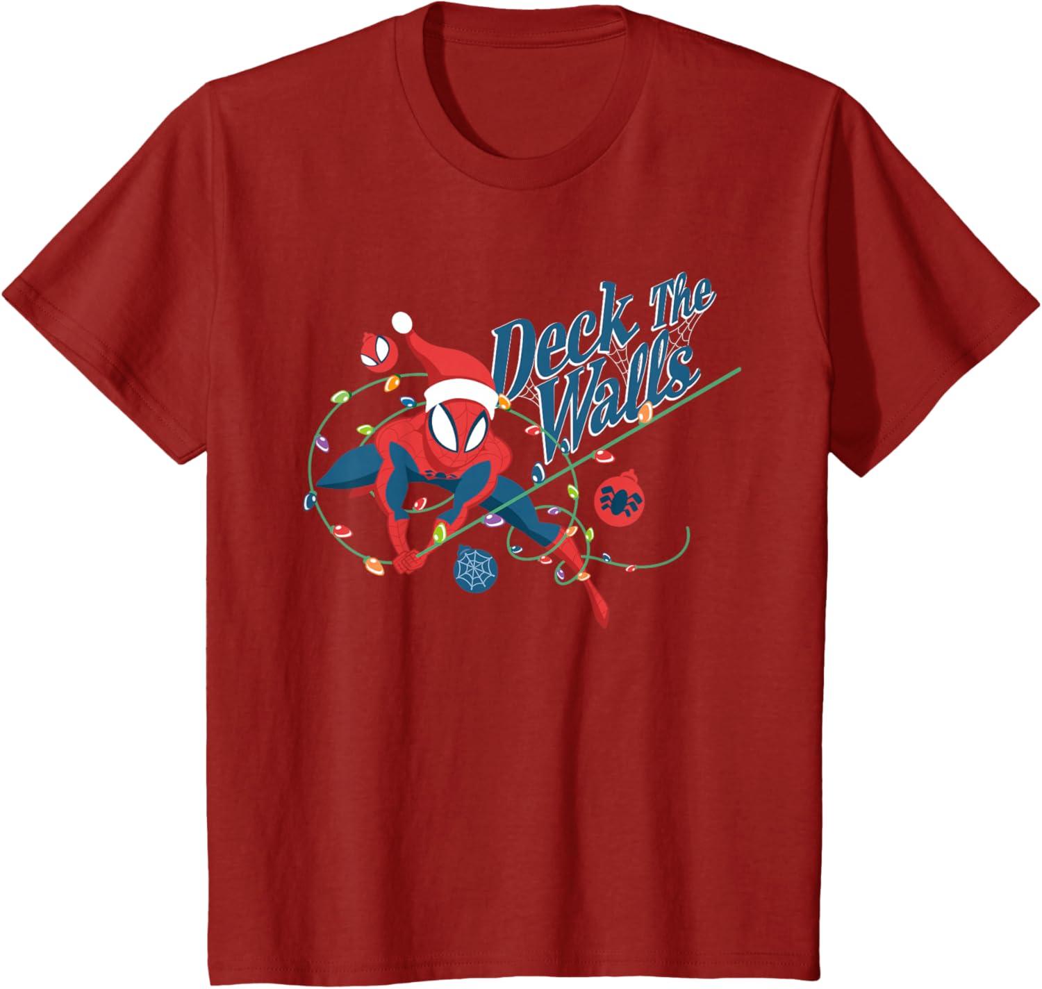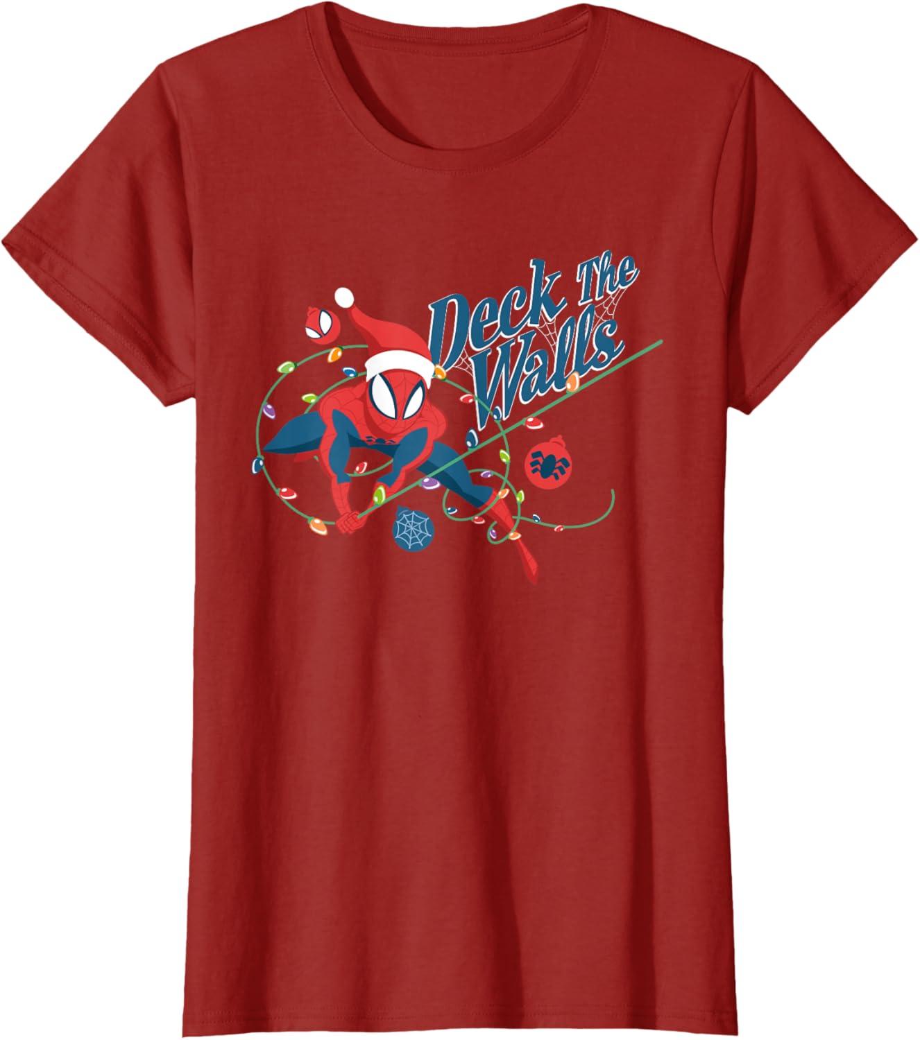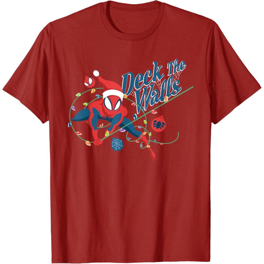 Marvel Spider-Man Deck The Walls Holiday T-Shirt(Cranberry Red)