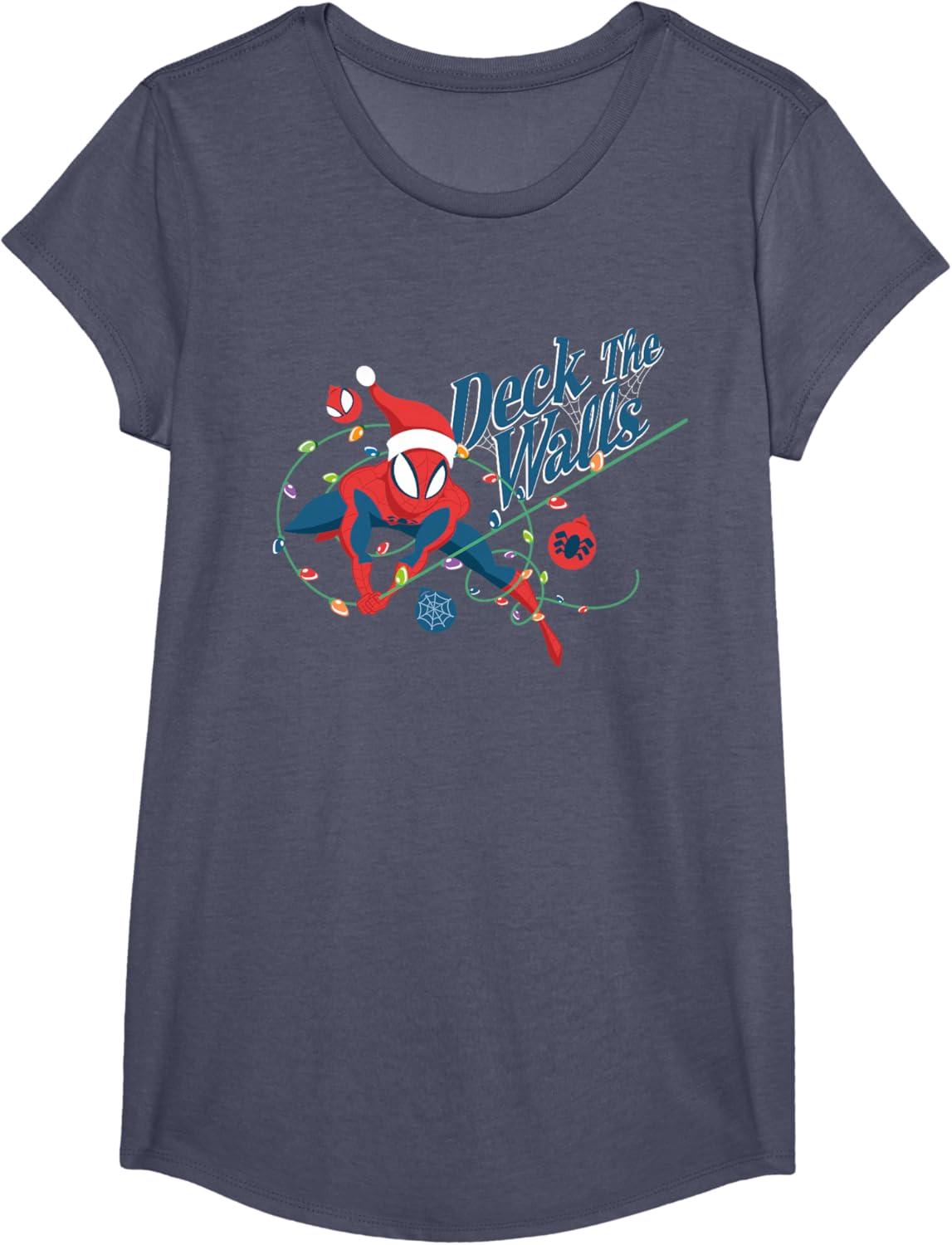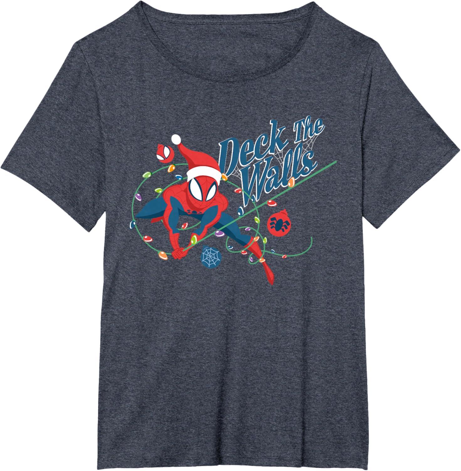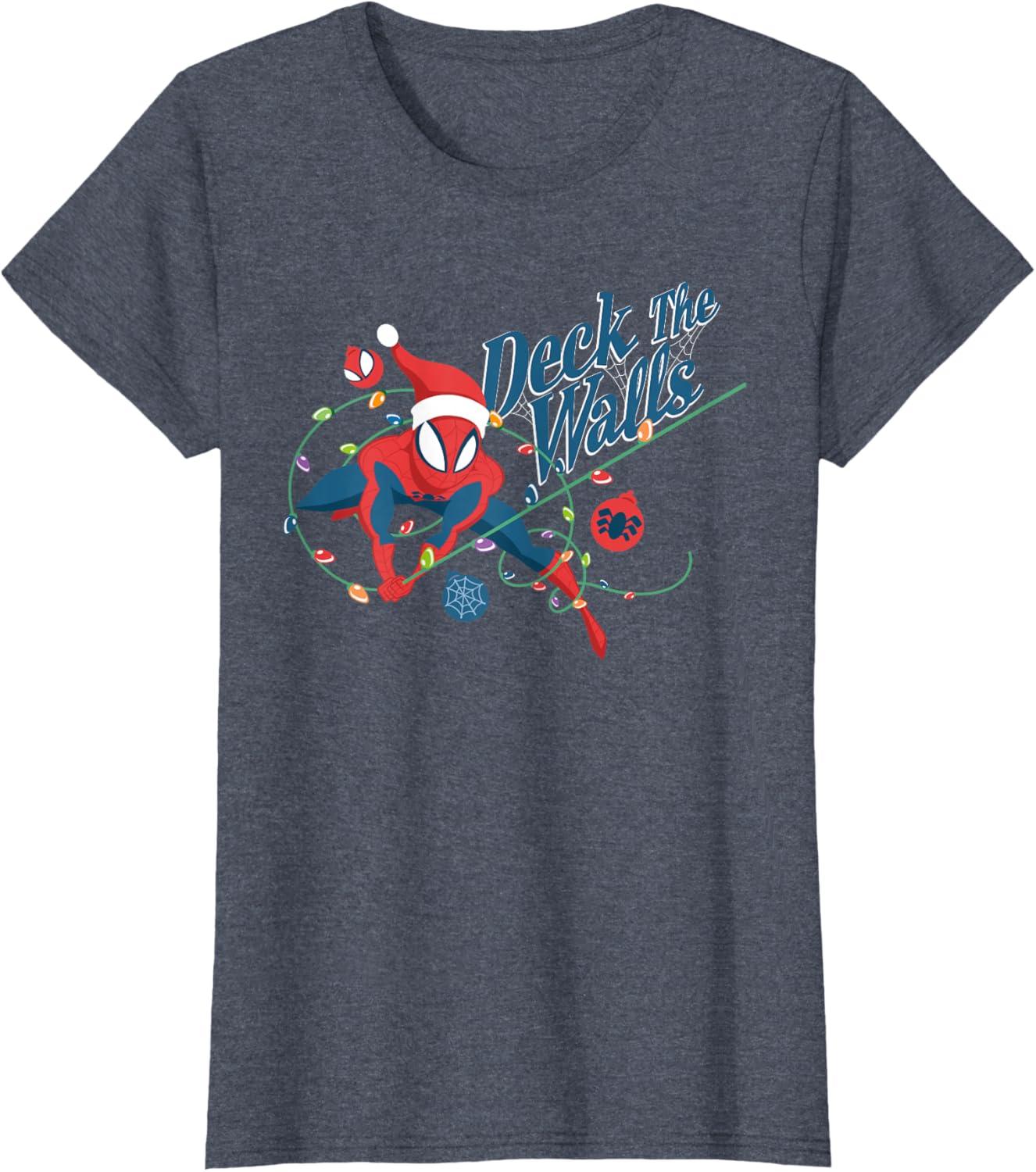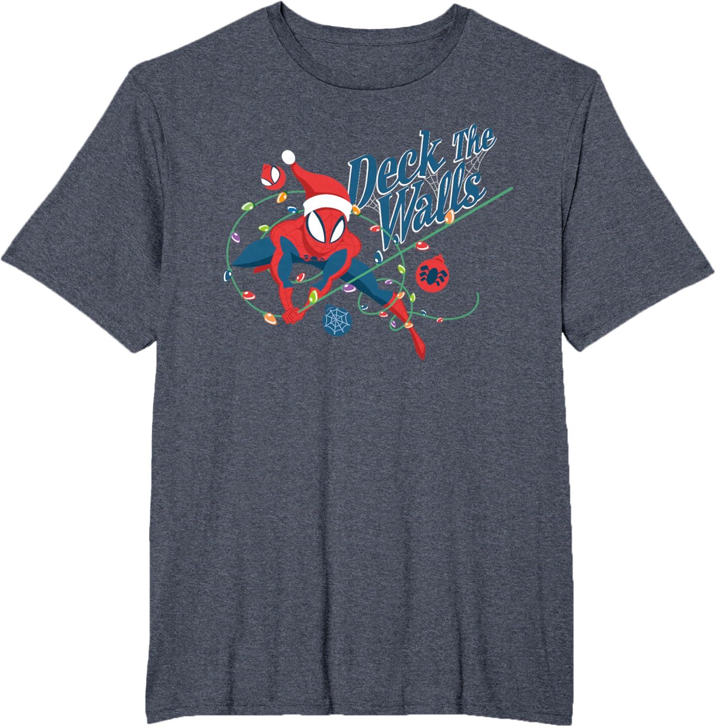 Marvel Spider-Man Deck The Walls Holiday T-Shirt(Heather Blue)