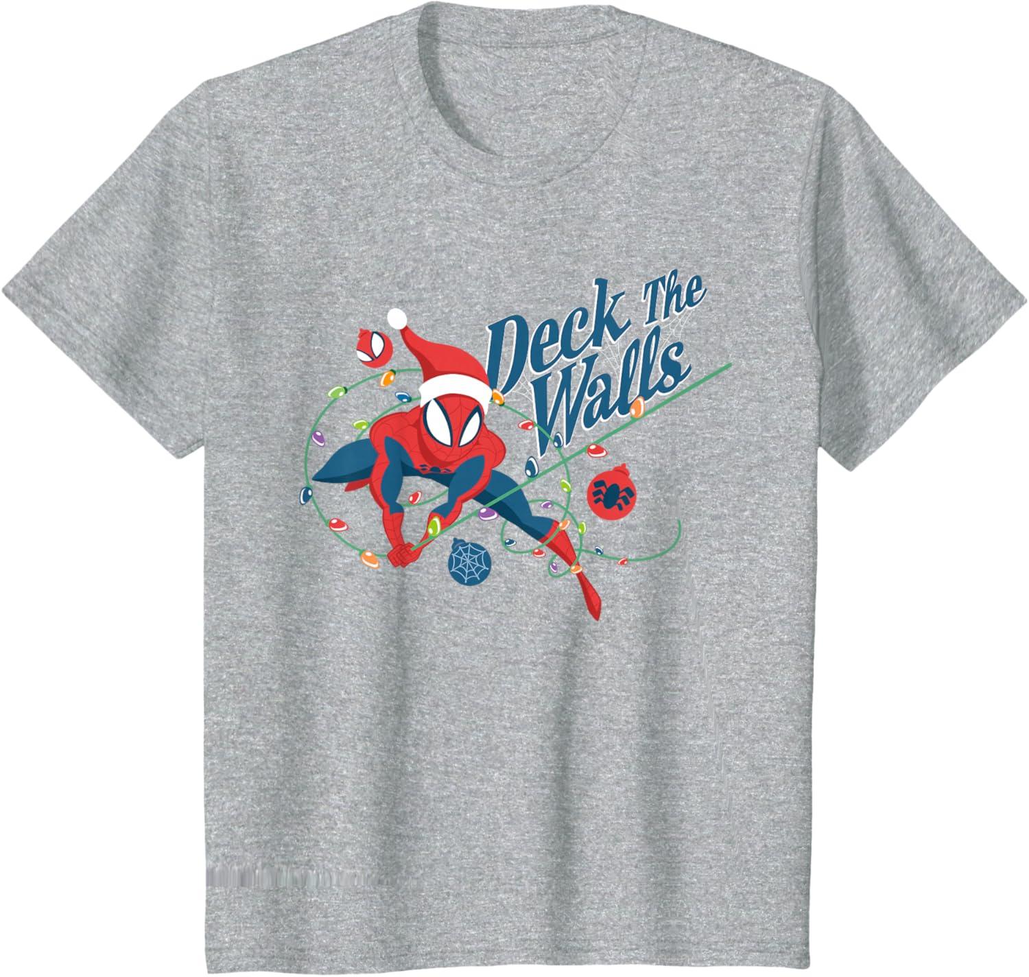 Marvel Spider-Man Deck The Walls Holiday T-Shirt(Heather Grey)