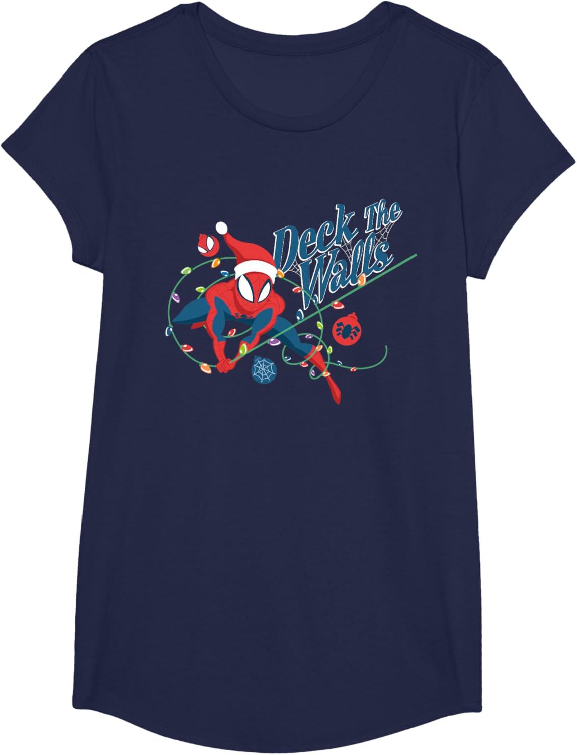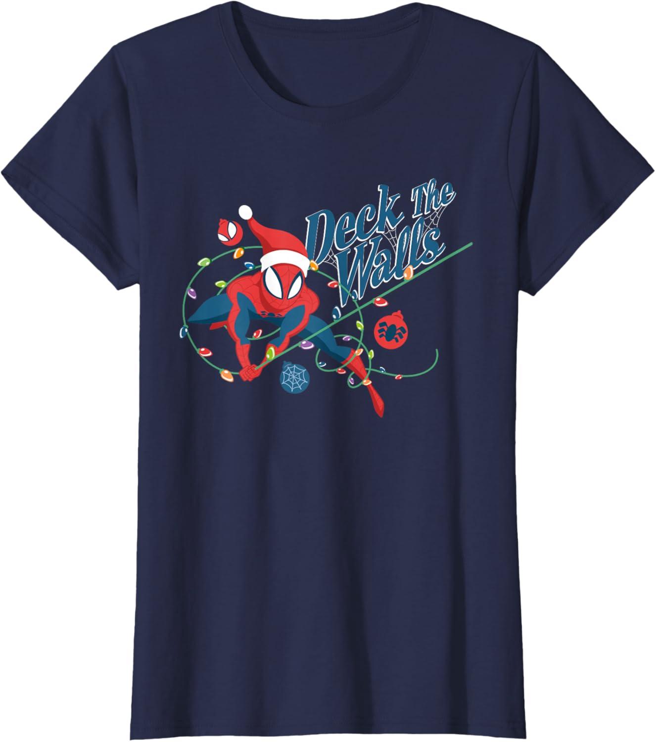 Marvel Spider-Man Deck The Walls Holiday T-Shirt(Navy Blue)