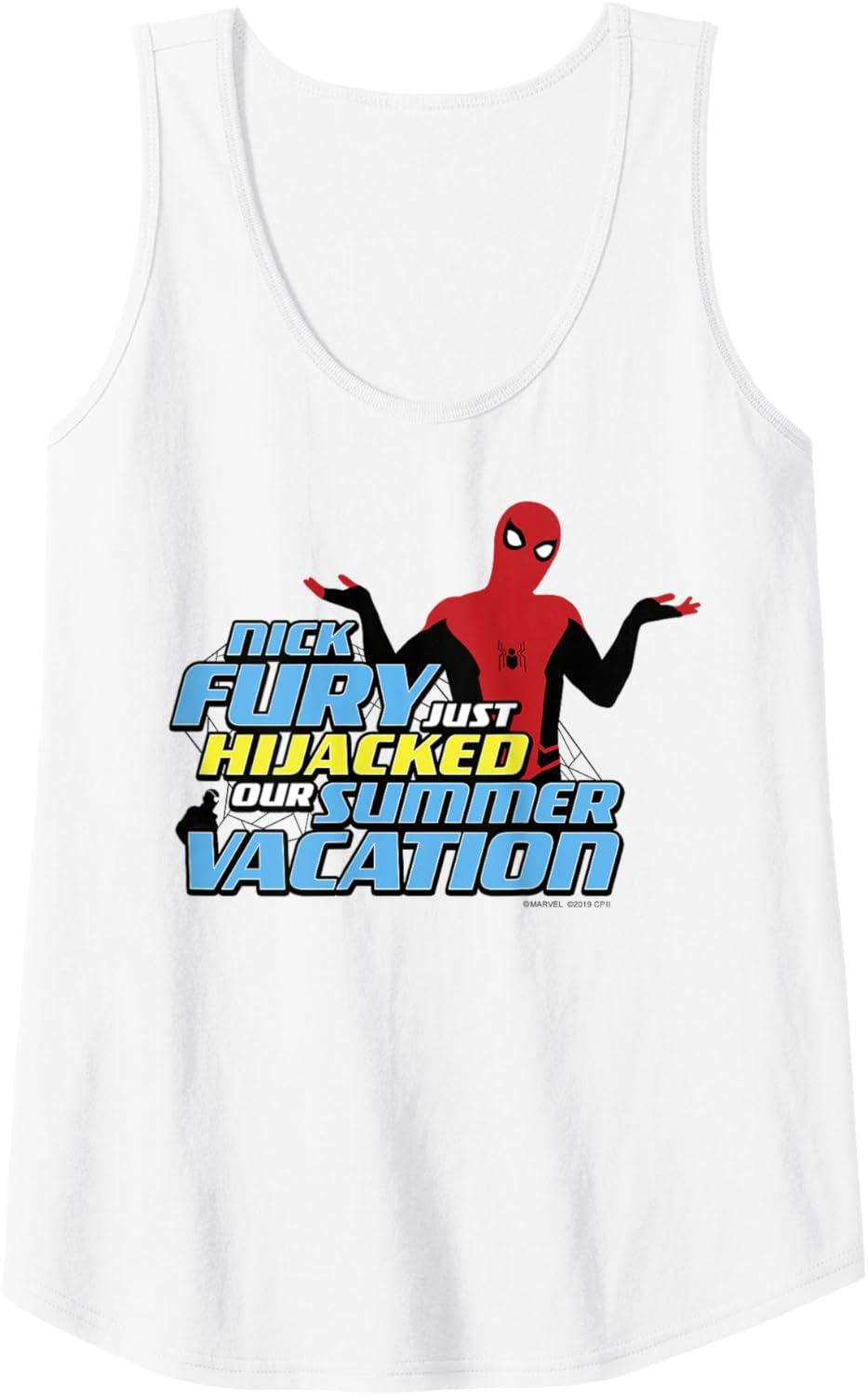 Marvel Spider-Man Far From Home Hijacked Summer Portrait Tank Top(White)