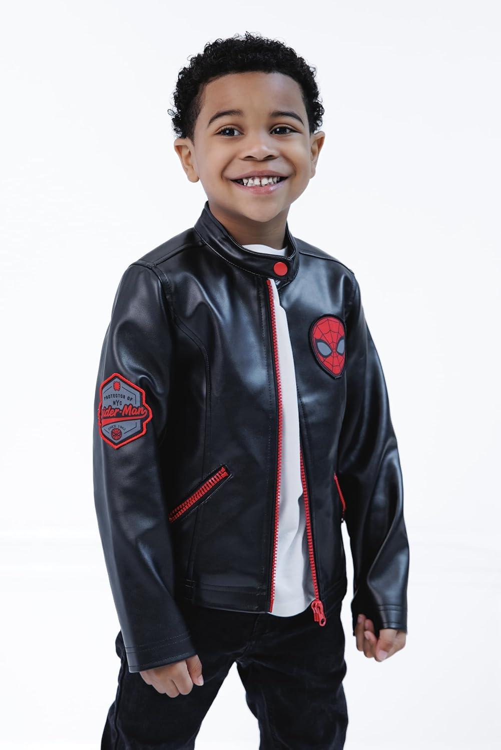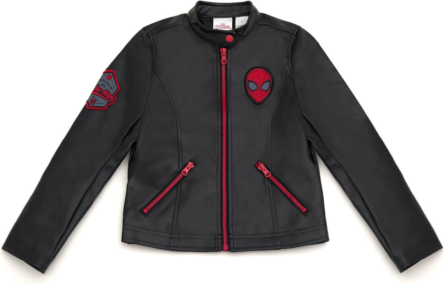 Transform your little one into a superhero with this stylish Marvel Spider-Man faux leather jacket. Crafted with high-quality materials, this jacket is durable and comfortable for all-day wear. The iconic Spider-Man logo is featured on the front and back, making it a must-have for any fan. Available in sizes for both little and big kids, this jacket is perfect for any occasion. Whether they're swinging through the city or just playing with friends, your child will feel like a true hero in this jacket. Order now and watch them save the day in style.